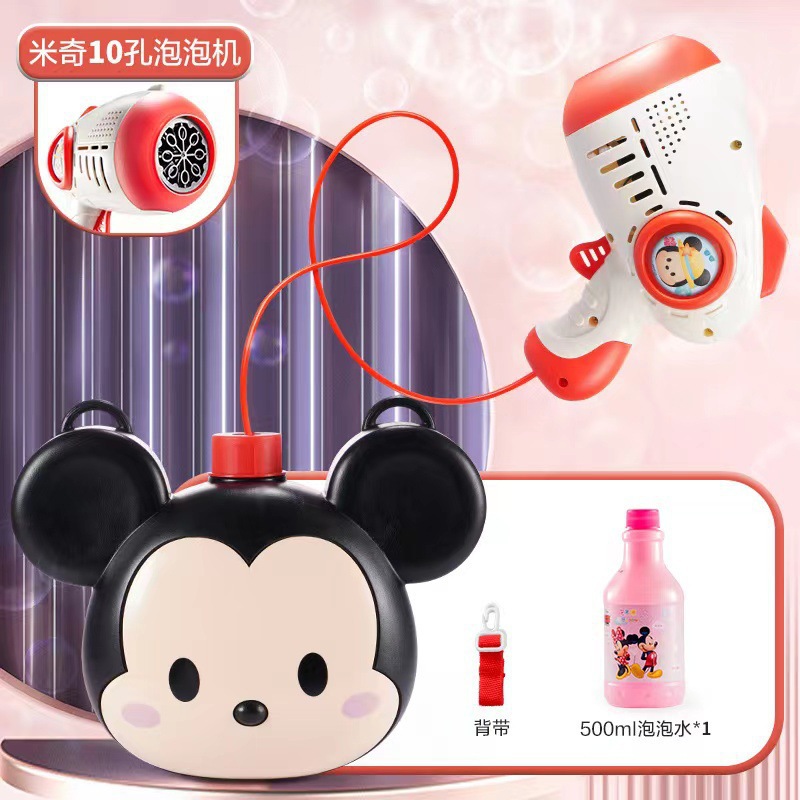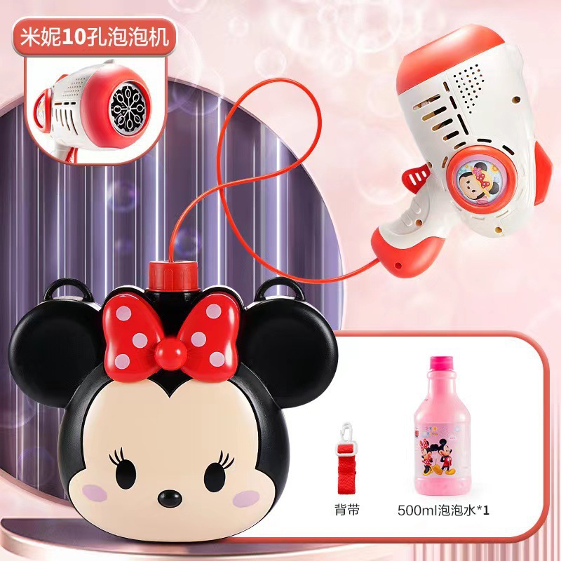 정품 디즈니 미키와 미니 10 홀 버블 건 가방 어린이 완전 자동 휴대용 버블 머신 소녀 장난감스토어 가기