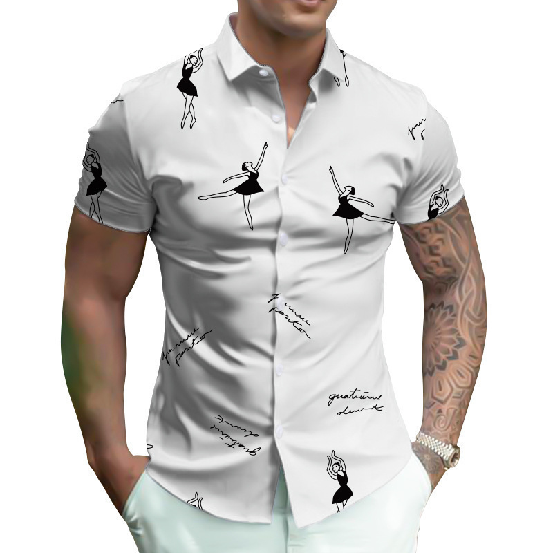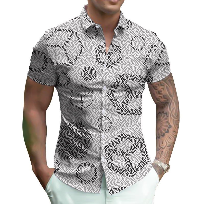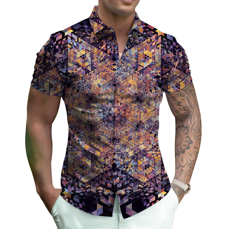 대외 무역 20243D 인쇄 패턴 남성 셔츠 스트리트 캐주얼 남성 3D 디지털 인쇄 셔츠 반팔 셔츠