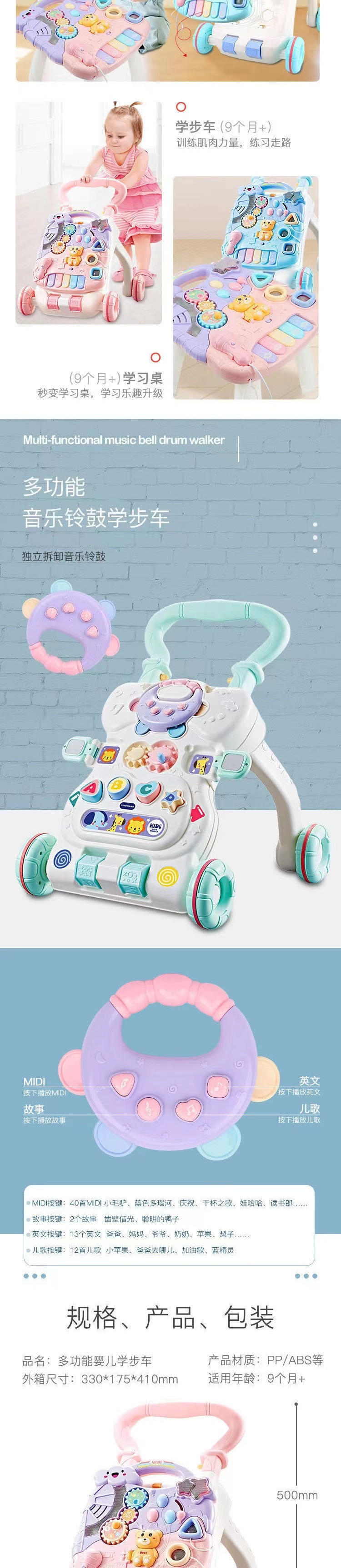 아기 유아용 유모차, 전복 방지 O자형 다리, 다기능 보행 보조기, 걷기 학습 도구 6-8-18개월