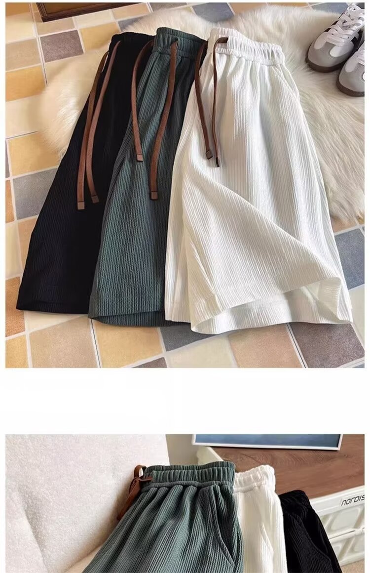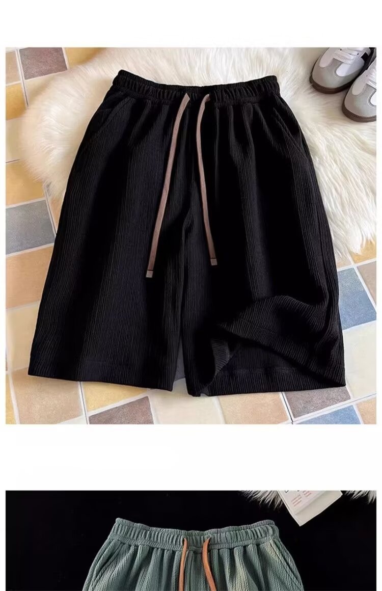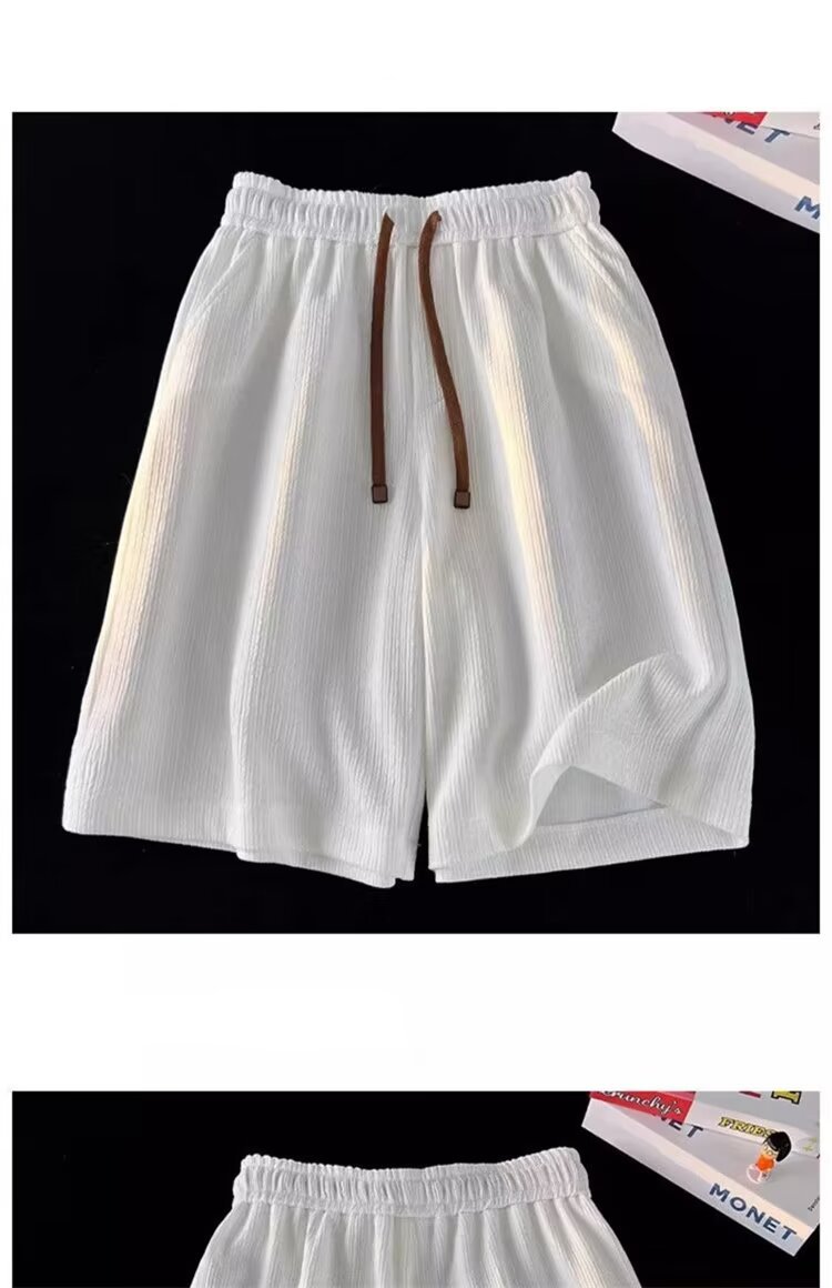 남성용 주름진 아이스 실크 속건 반바지, 루즈한 캐주얼 스포츠 바지, 미국 여름 비치 바지, 얇고 통기성이 좋은 바지스토어 가기