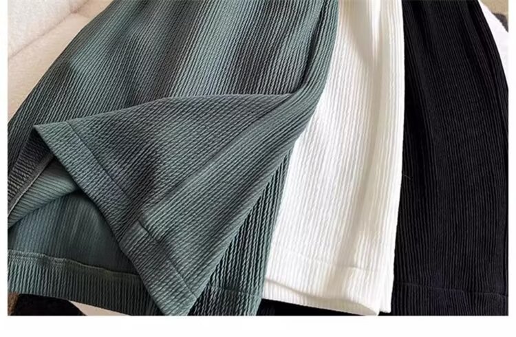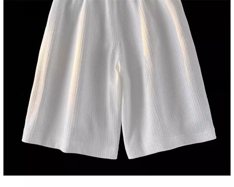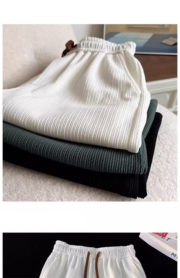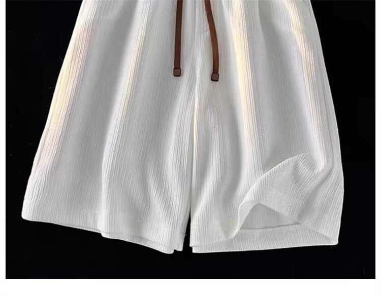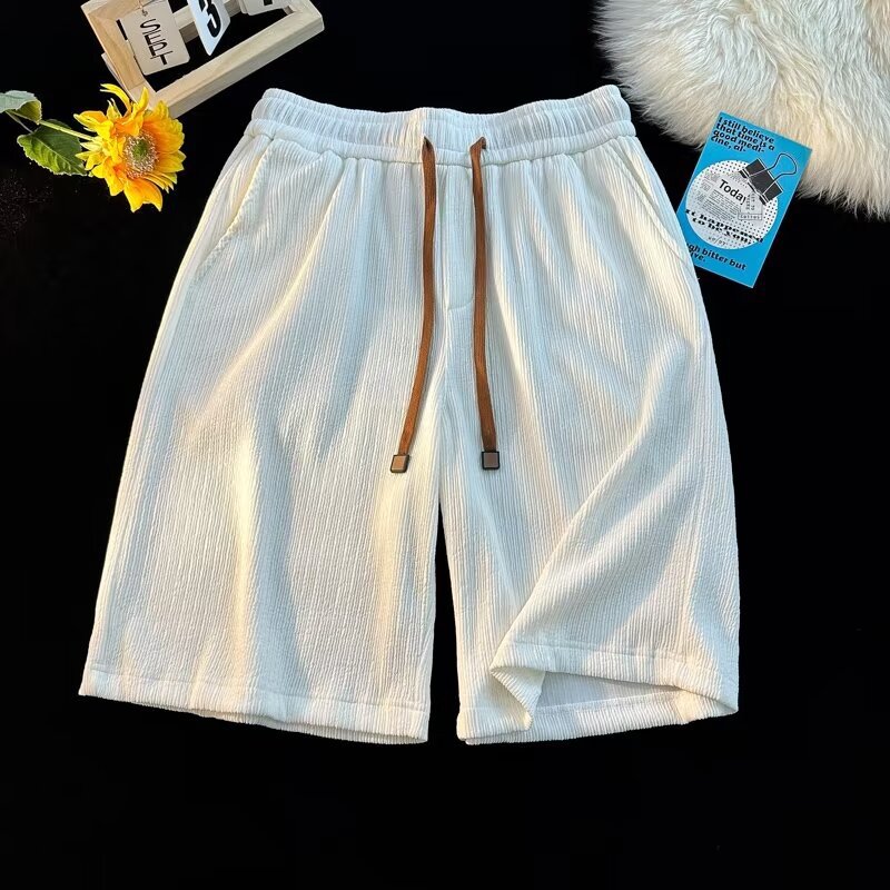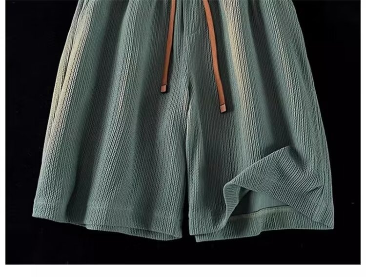 남성용 주름진 아이스 실크 속건 반바지, 루즈한 캐주얼 스포츠 바지, 미국 여름 비치 바지, 얇고 통기성이 좋은 바지