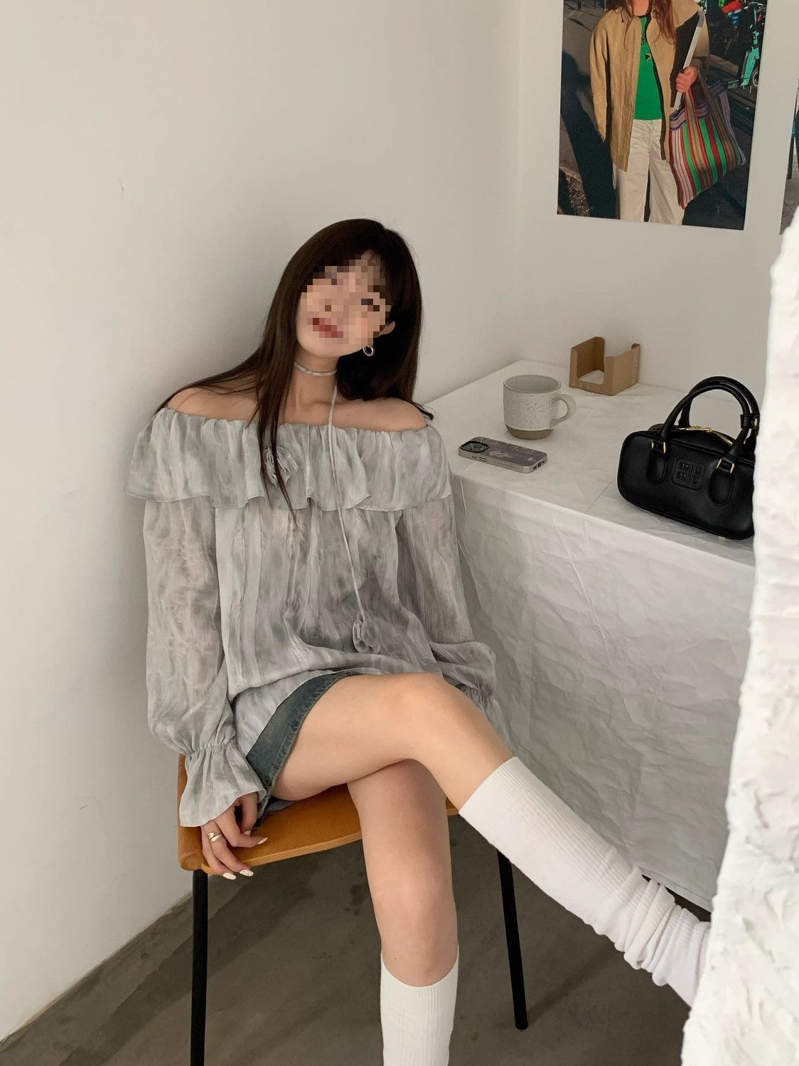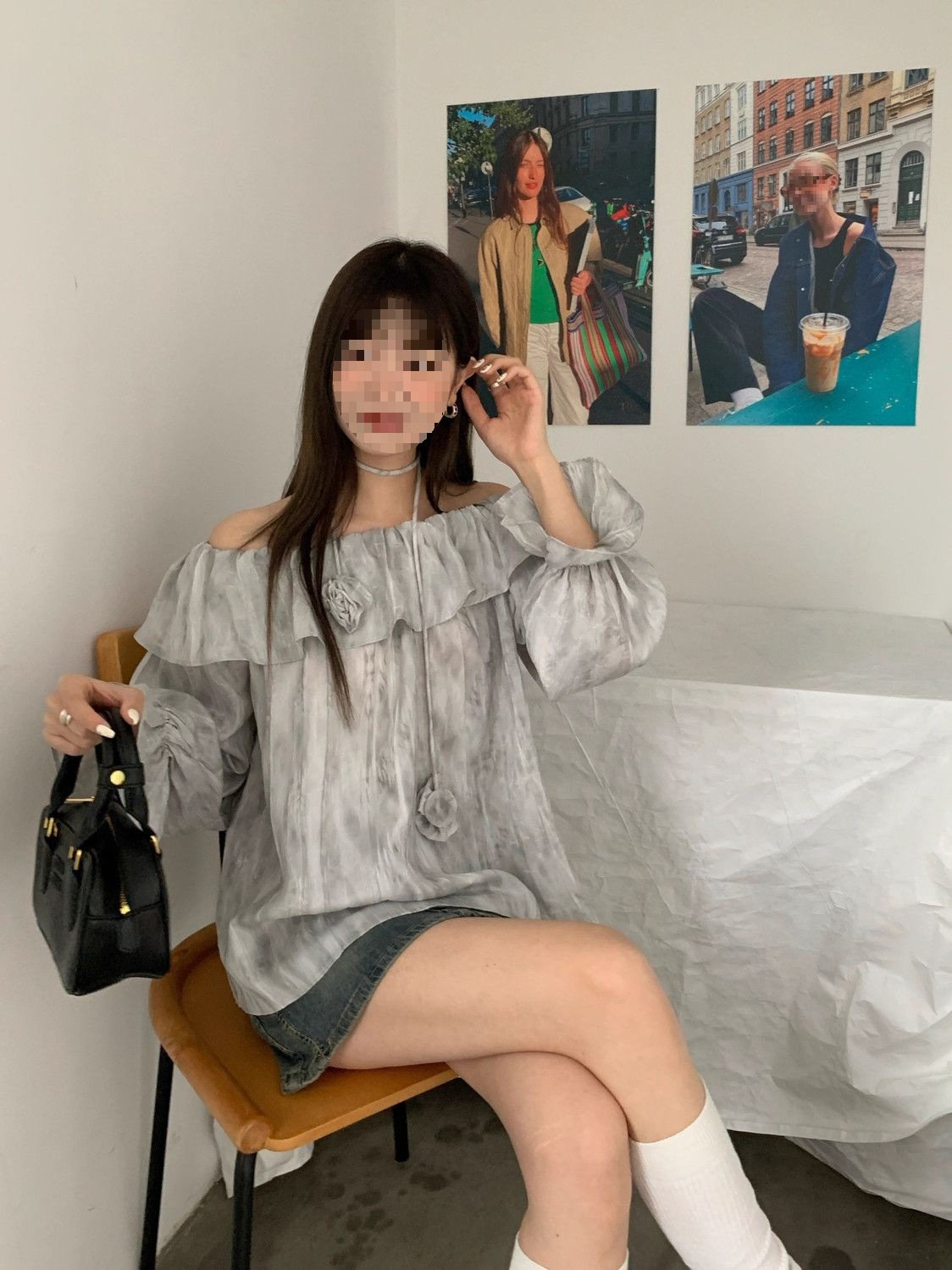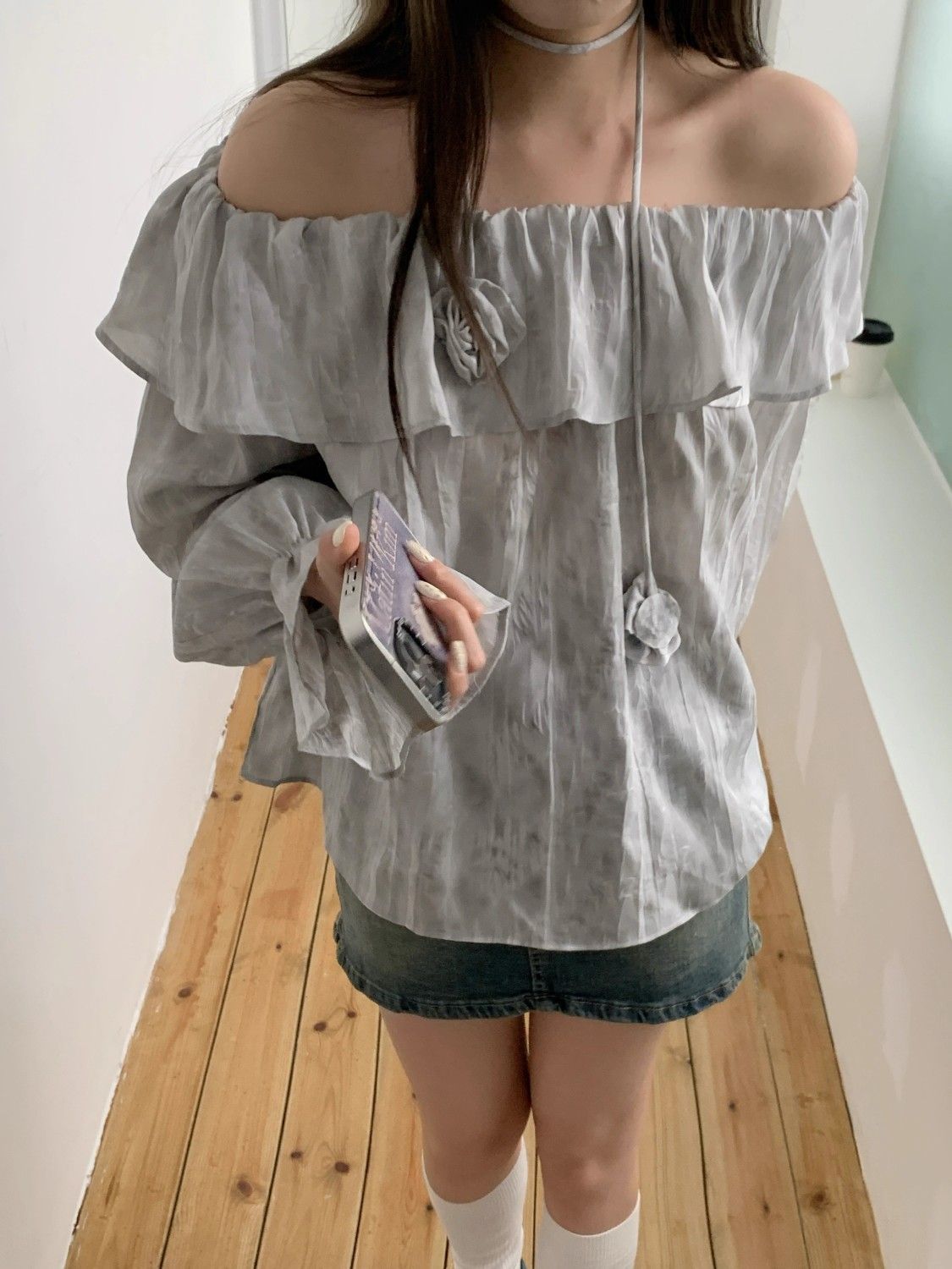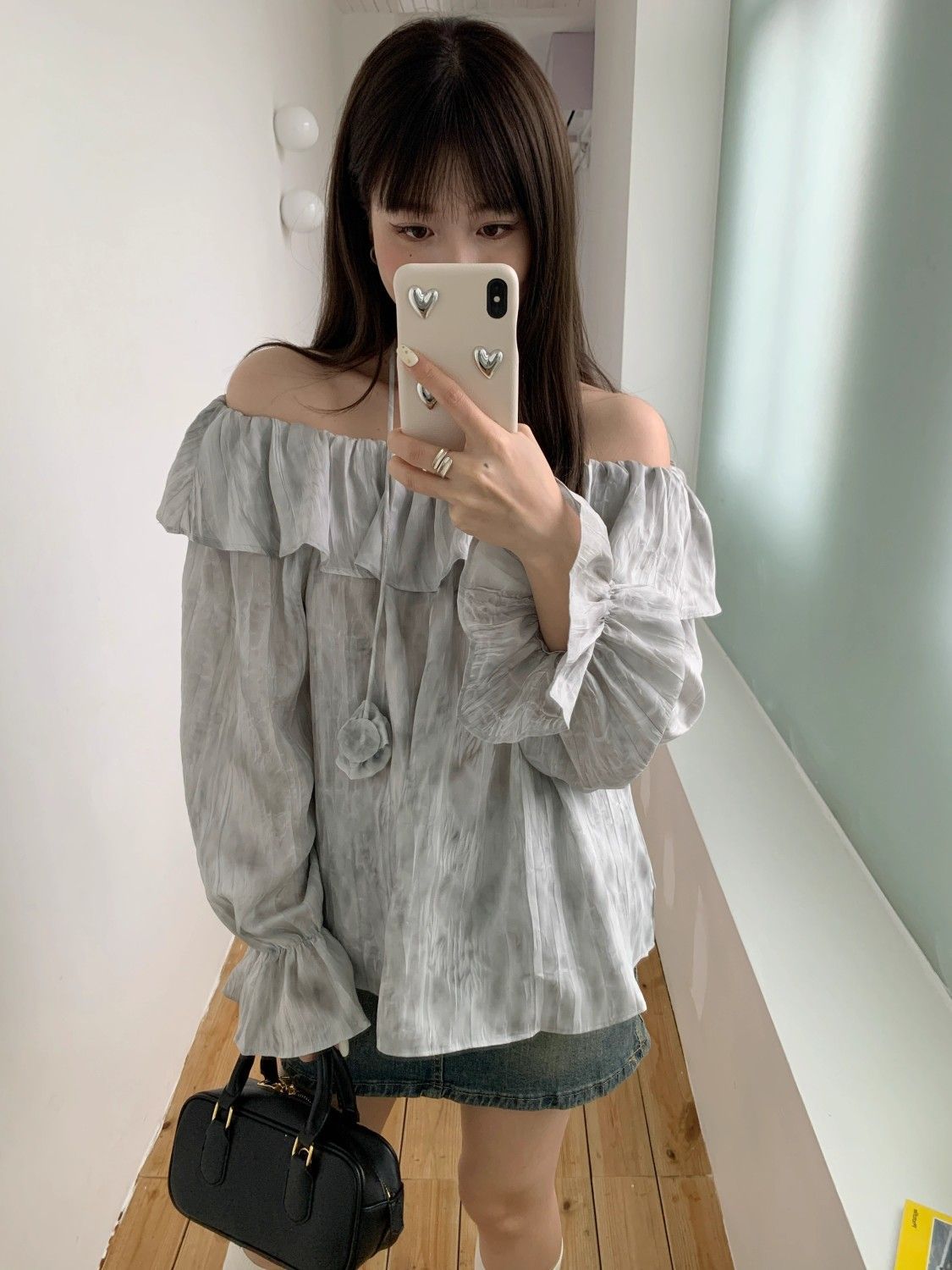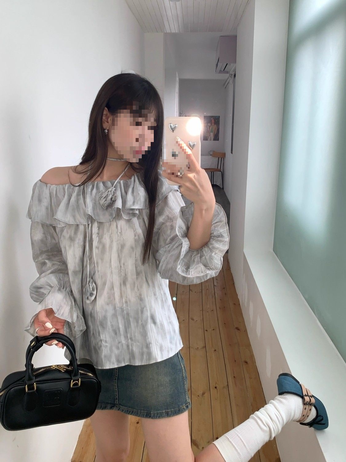 2025 신상 한국 원숄더 쉬폰 러플 스위트 프렌치 레트로 셔츠 타이다이 작은 꽃무늬 탑스토어 가기