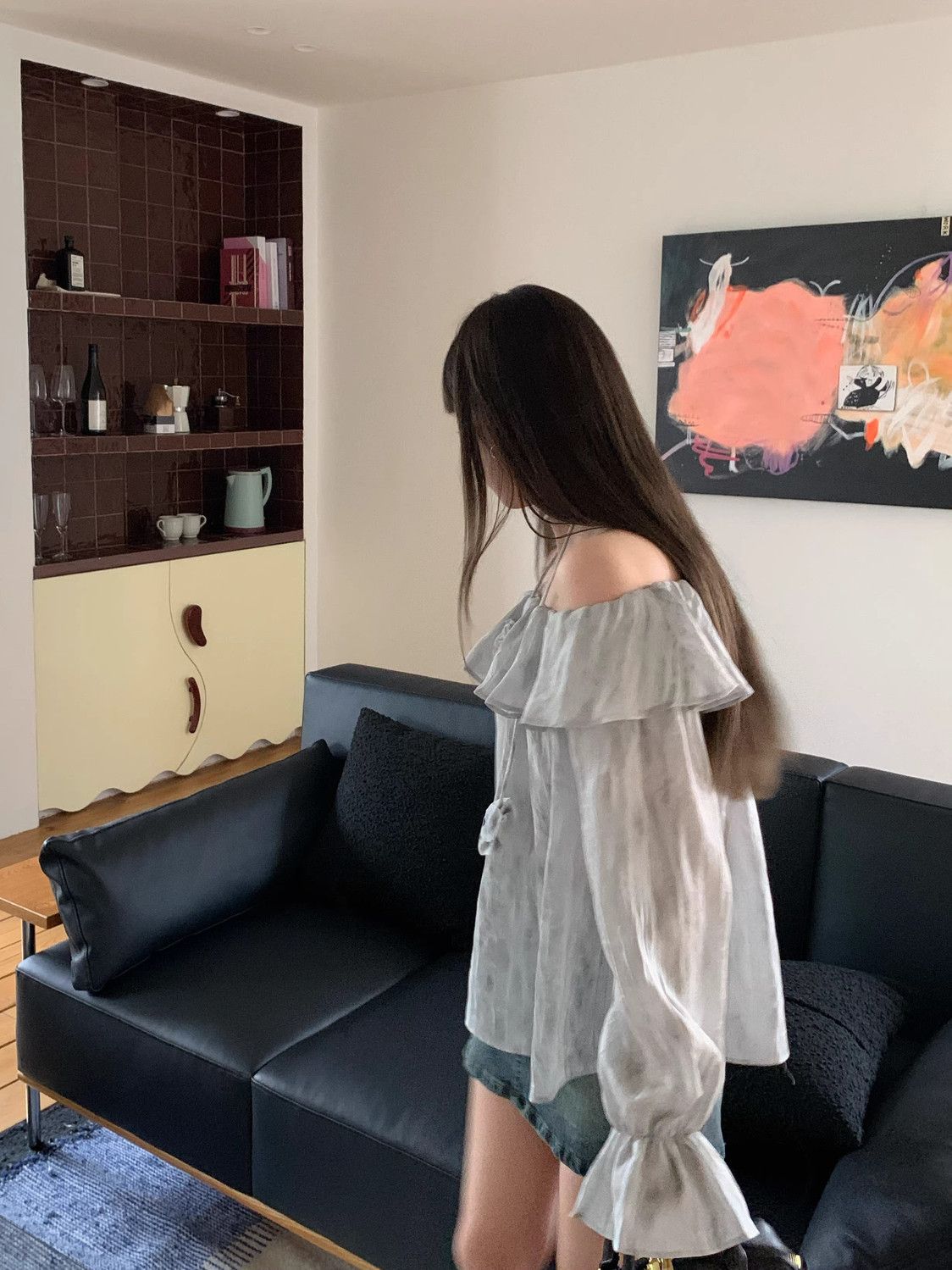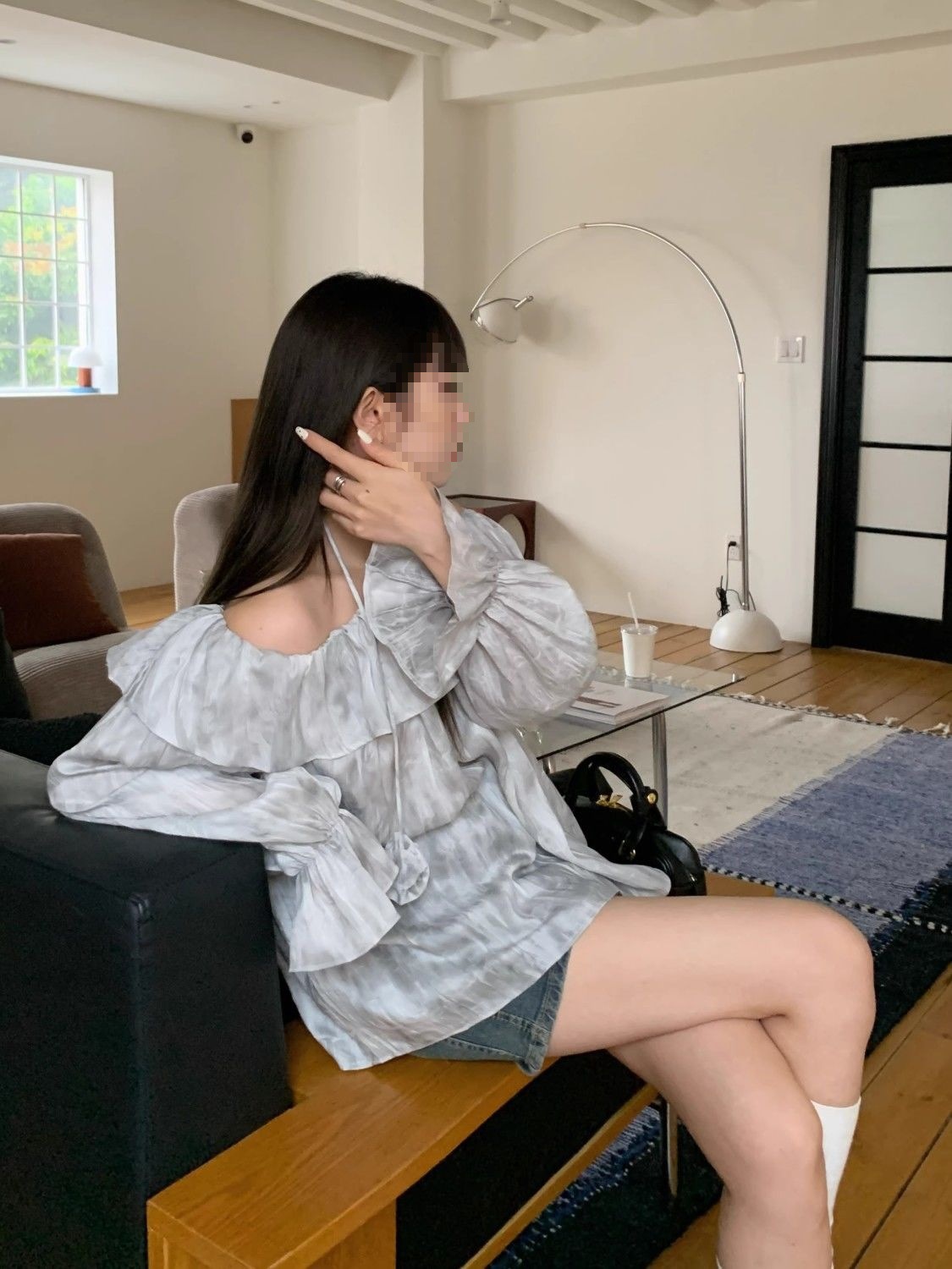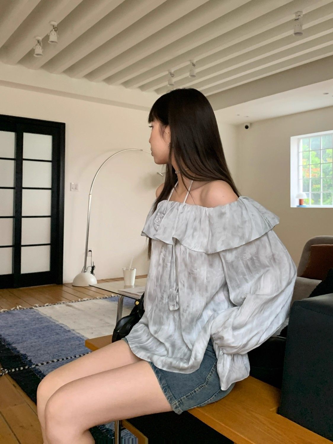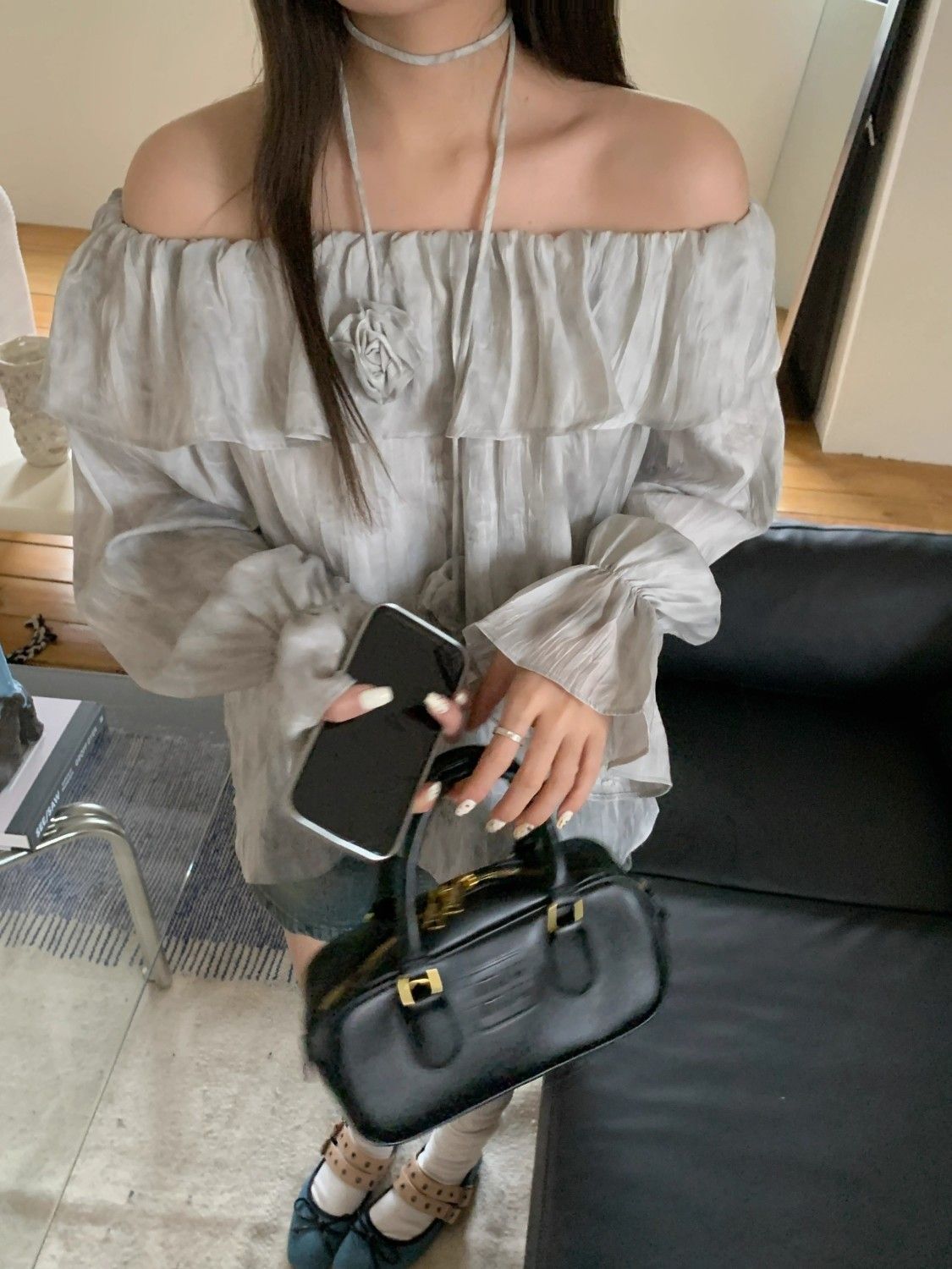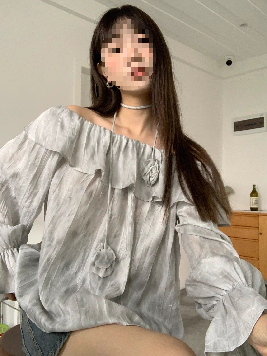 2025 신상 한국 원숄더 쉬폰 러플 스위트 프렌치 레트로 셔츠 타이다이 작은 꽃무늬 탑스토어 가기