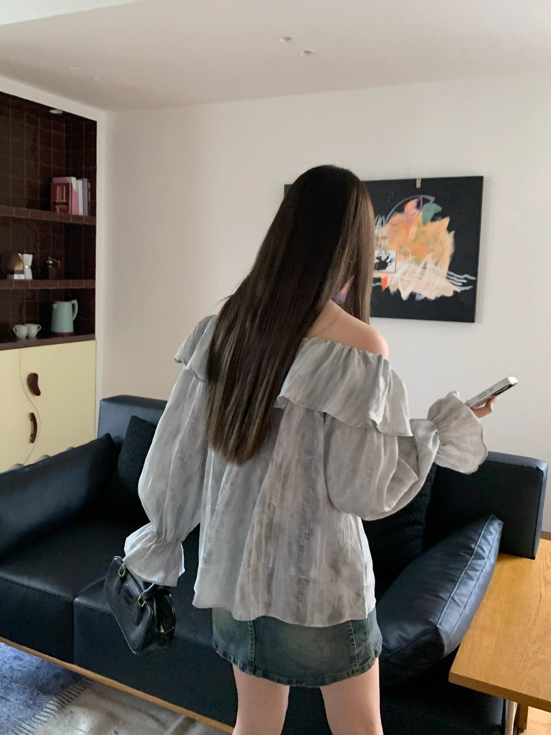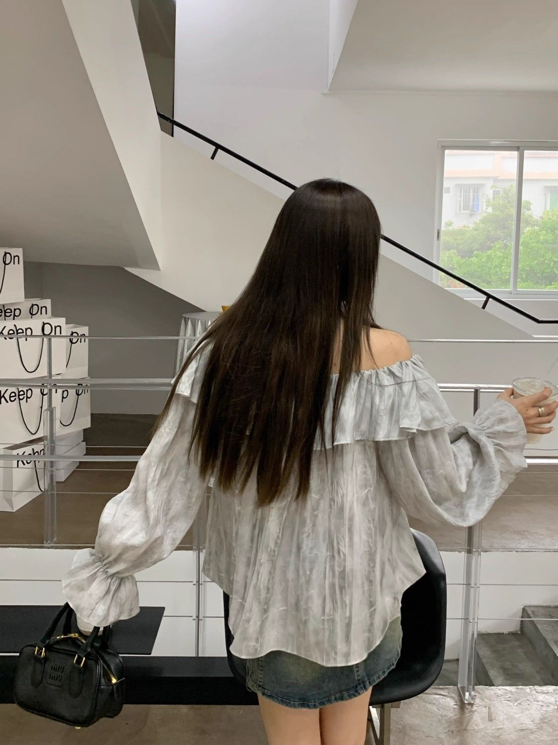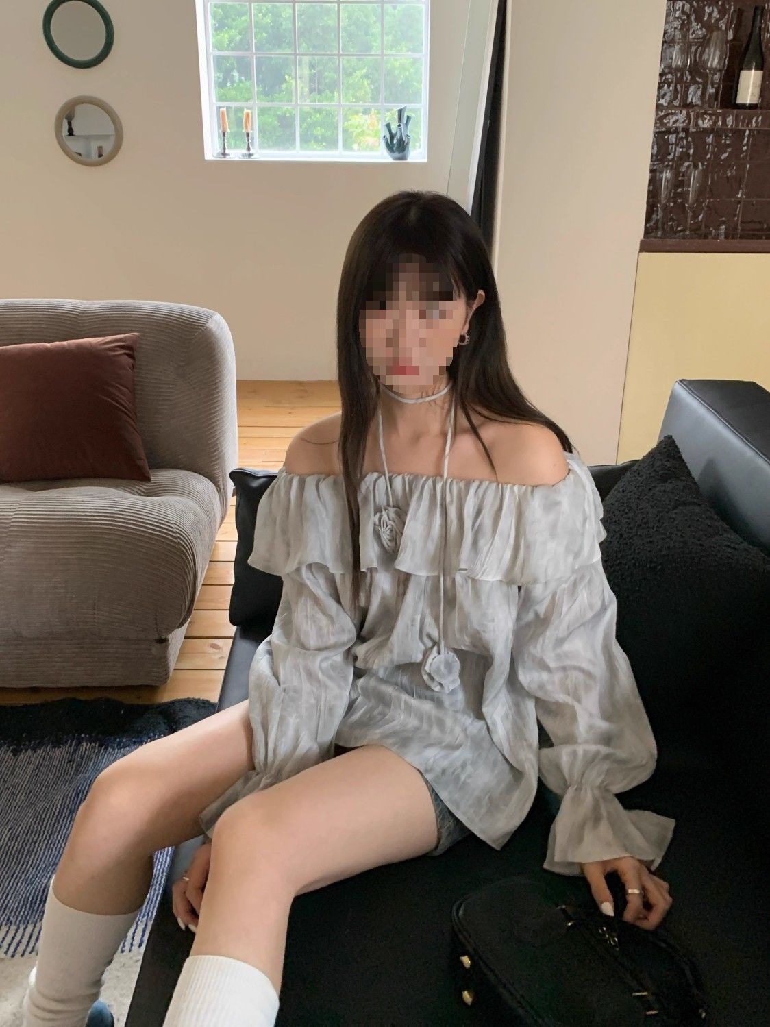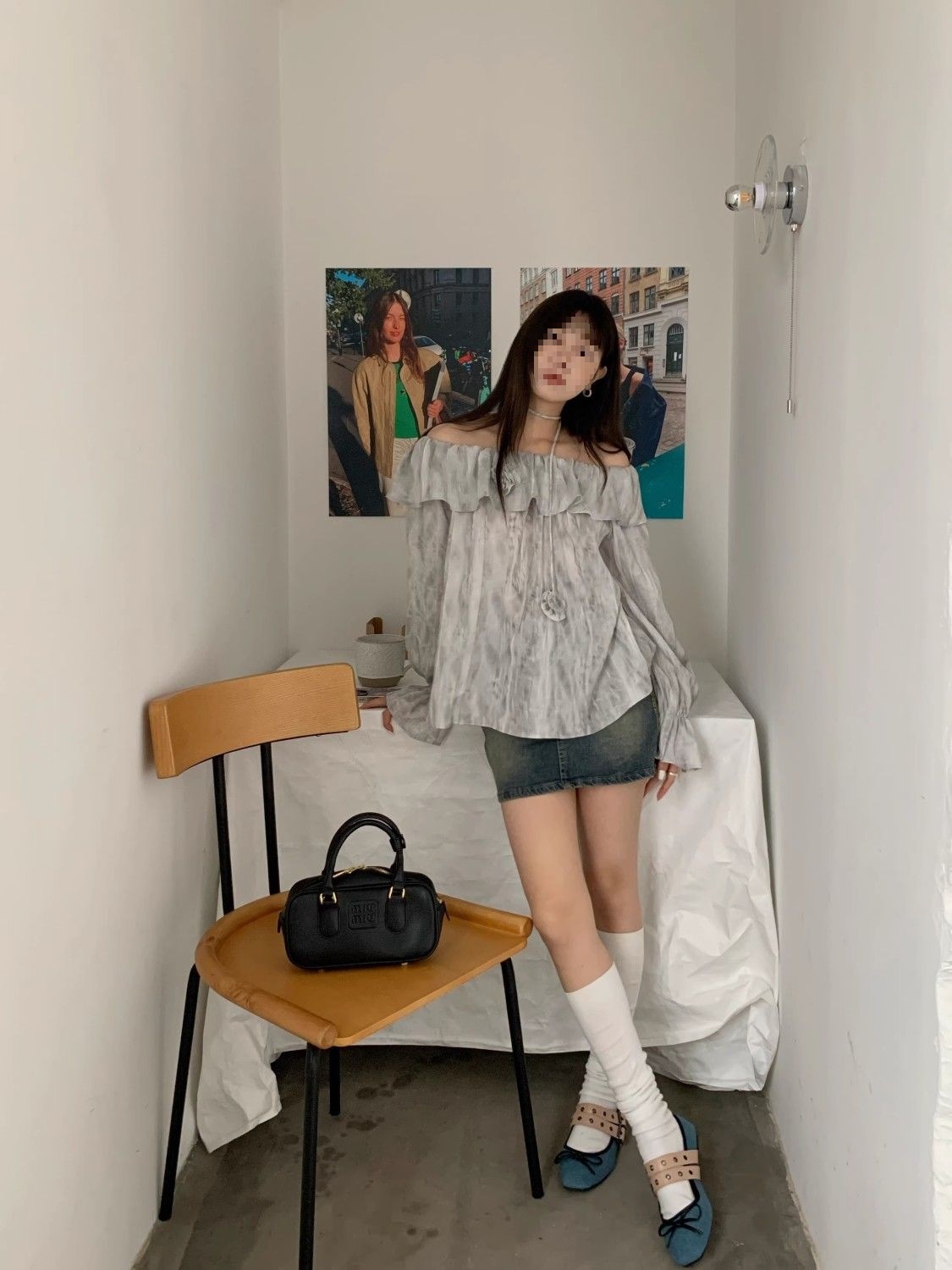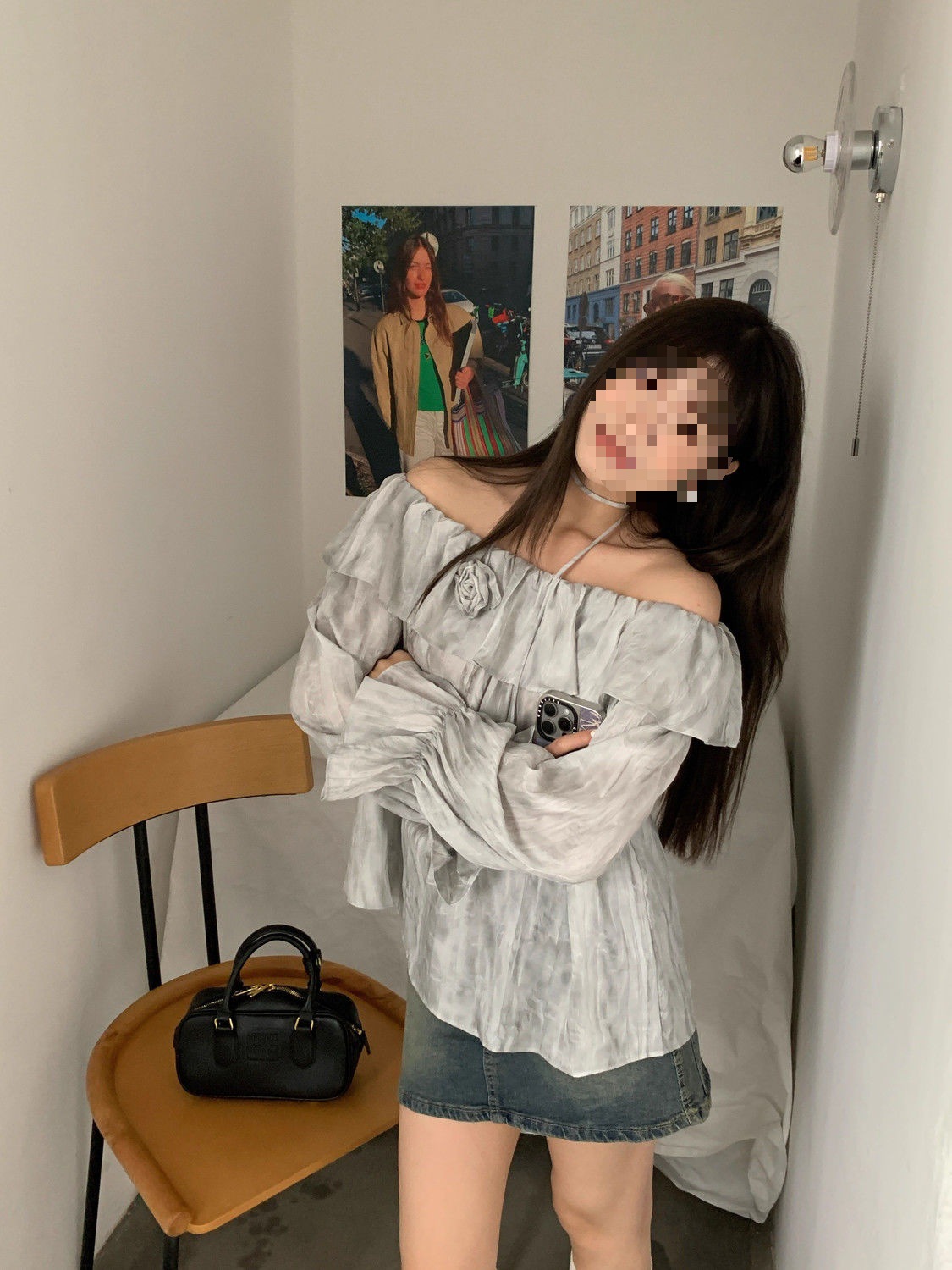 2025 신상 한국 원숄더 쉬폰 러플 스위트 프렌치 레트로 셔츠 타이다이 작은 꽃무늬 탑스토어 가기