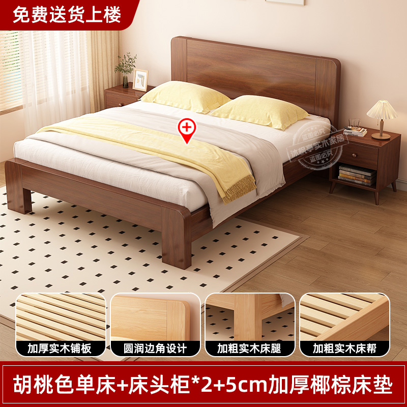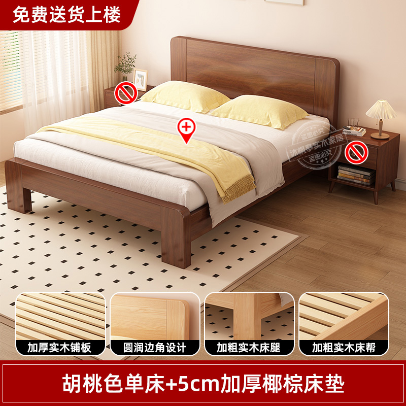 • 두꺼운 원목 호두 침대 + 두꺼운 5cm 코코넛 야자 매트리스 [위층 배송]