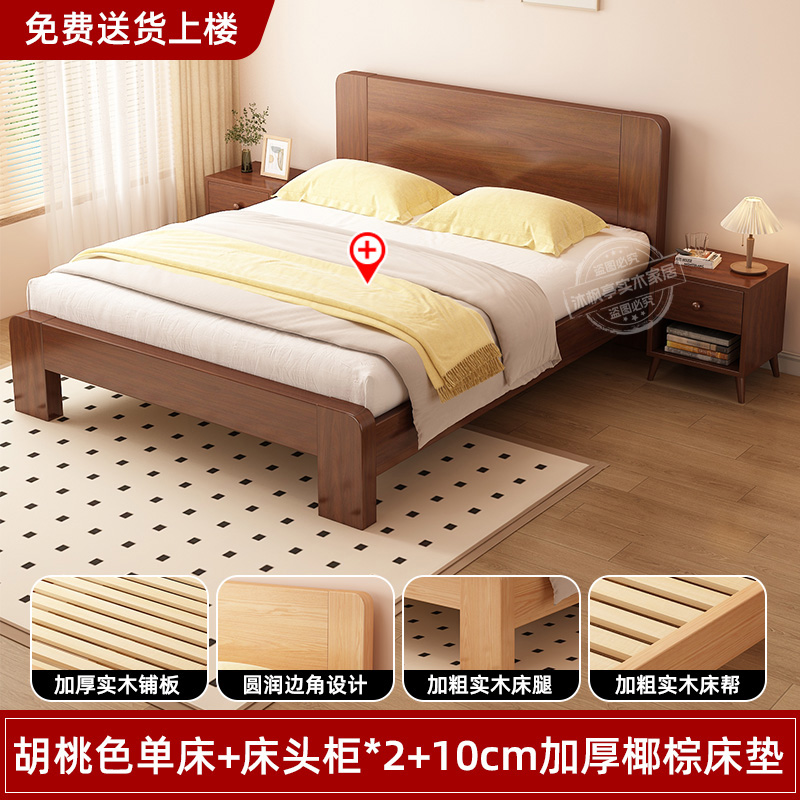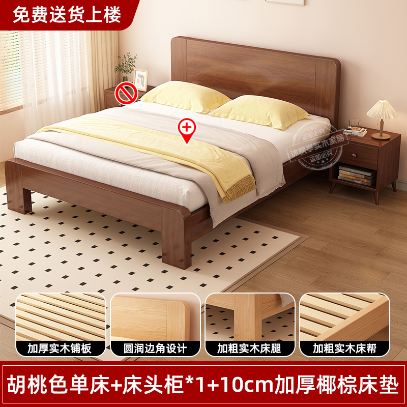 • 두꺼운 원목 호두 침대 + 침대 옆 탁자 1개 + 두꺼운 10CM 코코넛 야자 매트리스 [위층 배송]