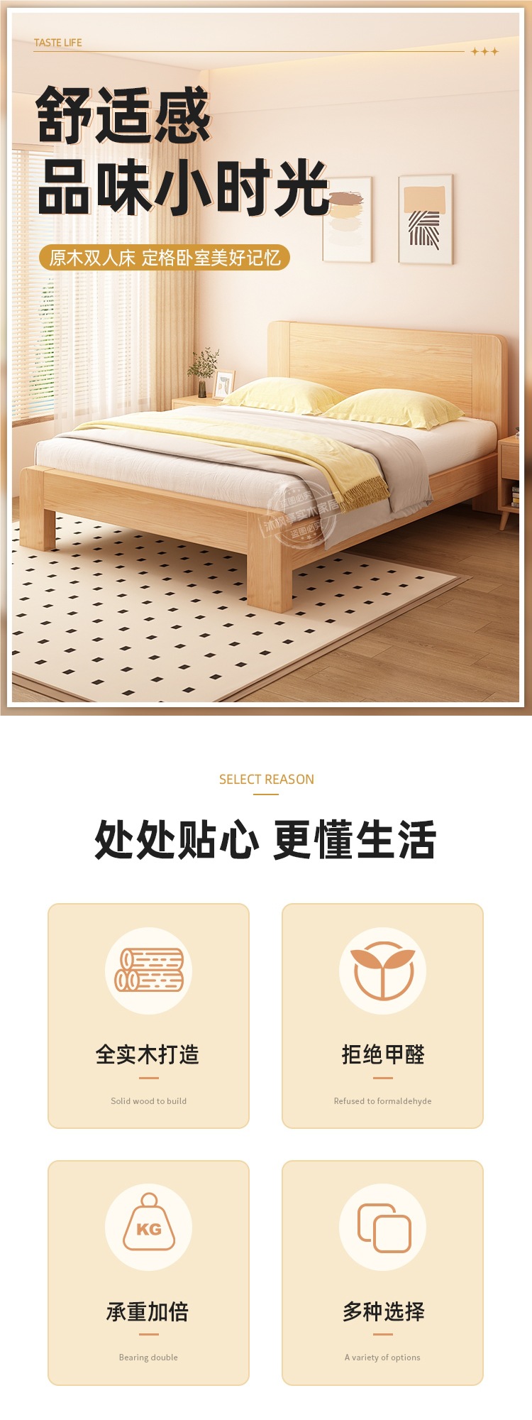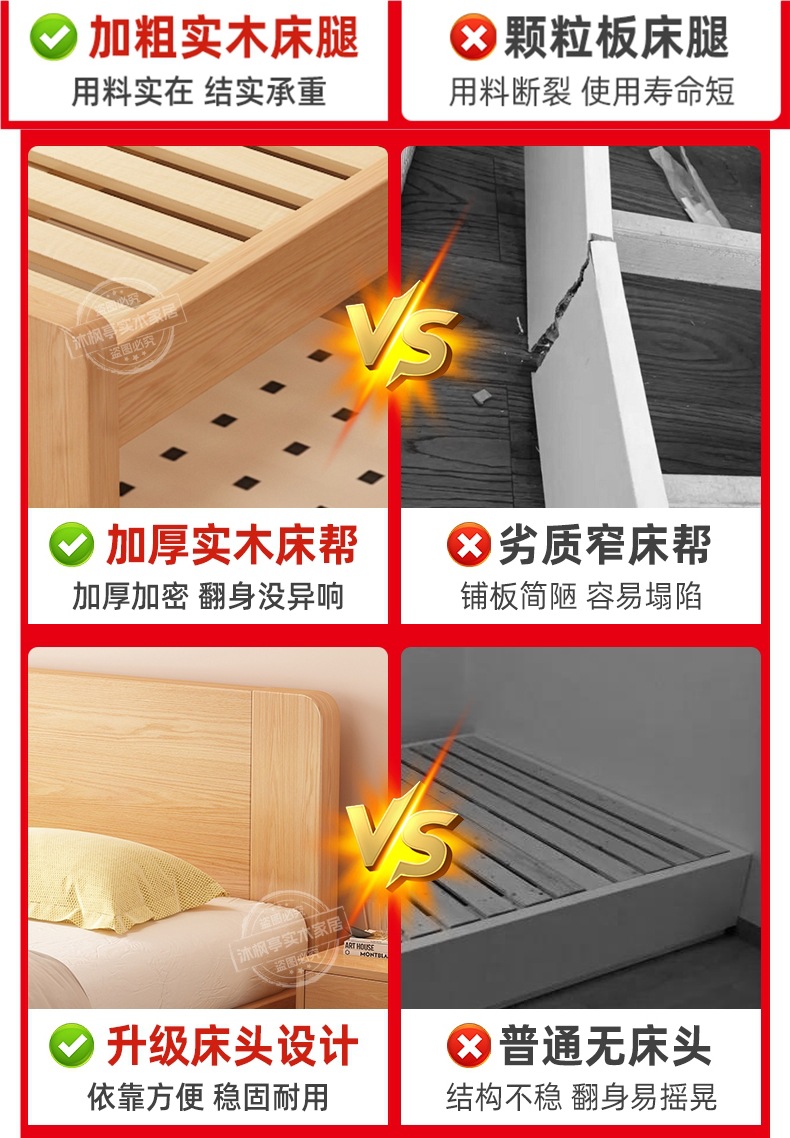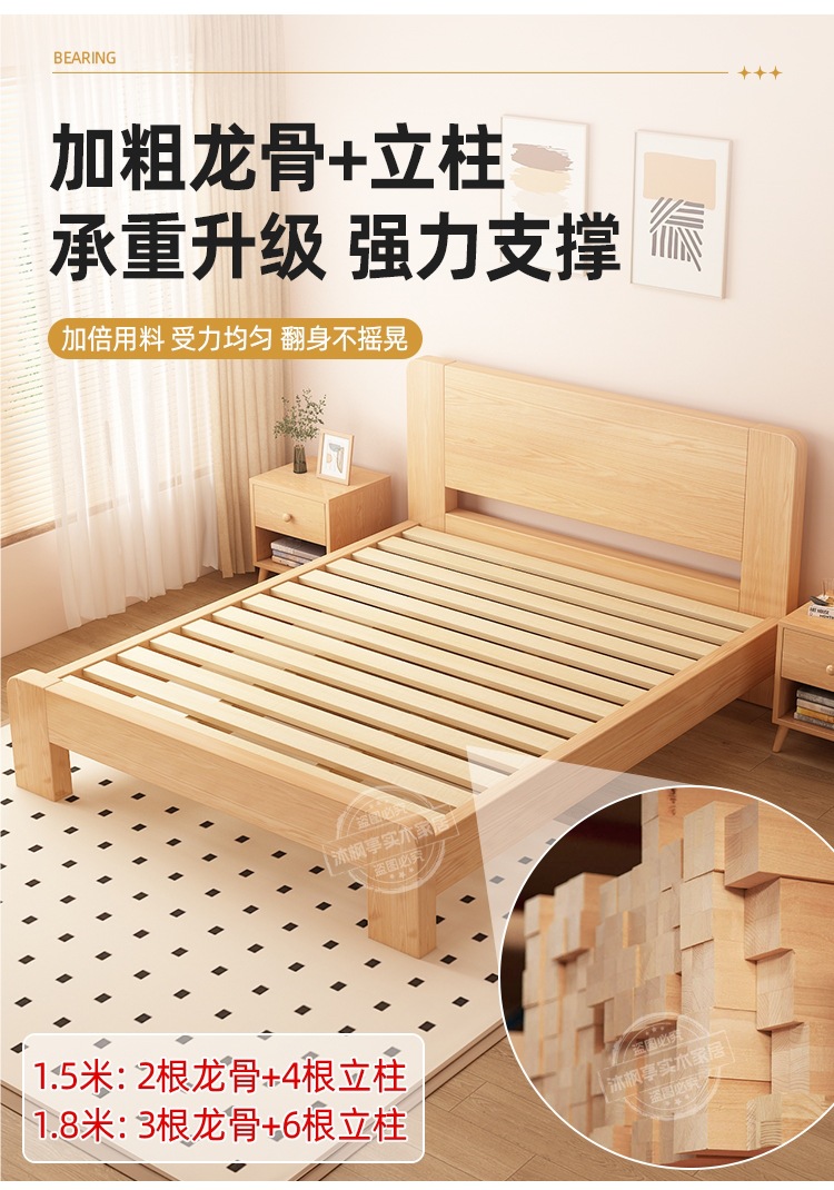 • 두꺼운 원목 침대 + 침대 옆 탁자 1개 [위층 배송]