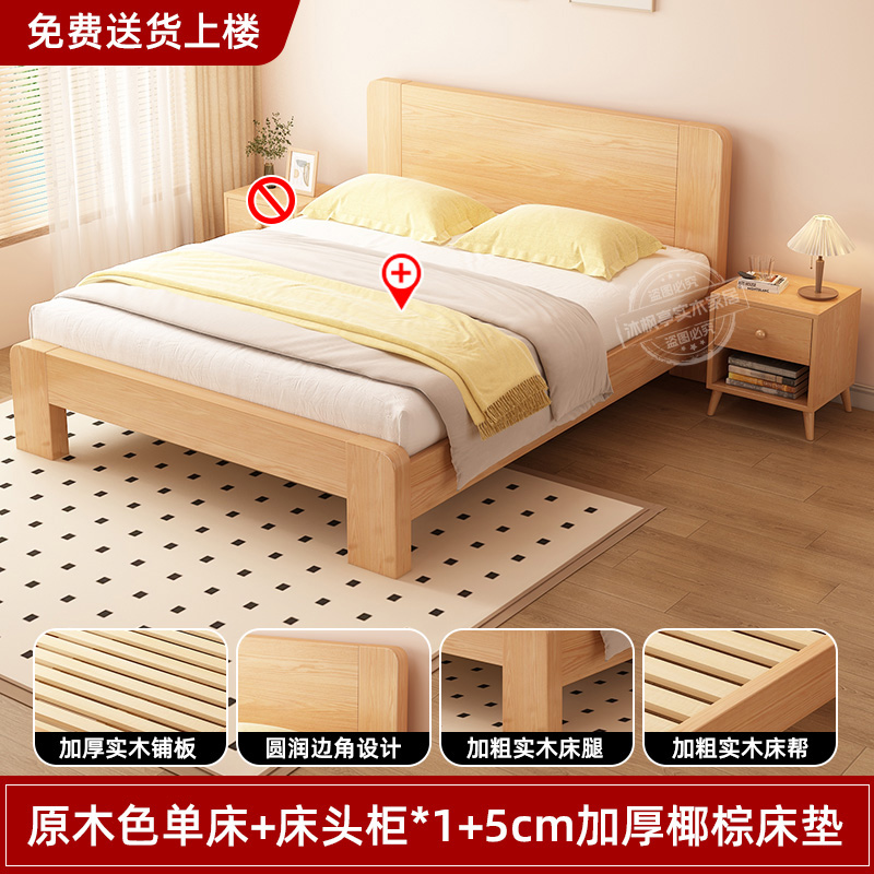 • 두꺼운 원목 침대 + 침대 옆 탁자 2개 + 두꺼운 5cm 코코넛 야자 매트리스 [위층 배송]