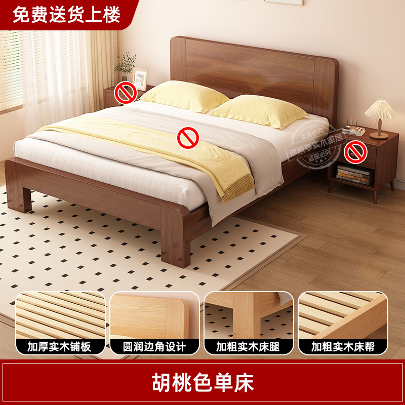 • 두꺼운 원목 호두색 침대 + 침대 옆 탁자 1개 [위층 배송]