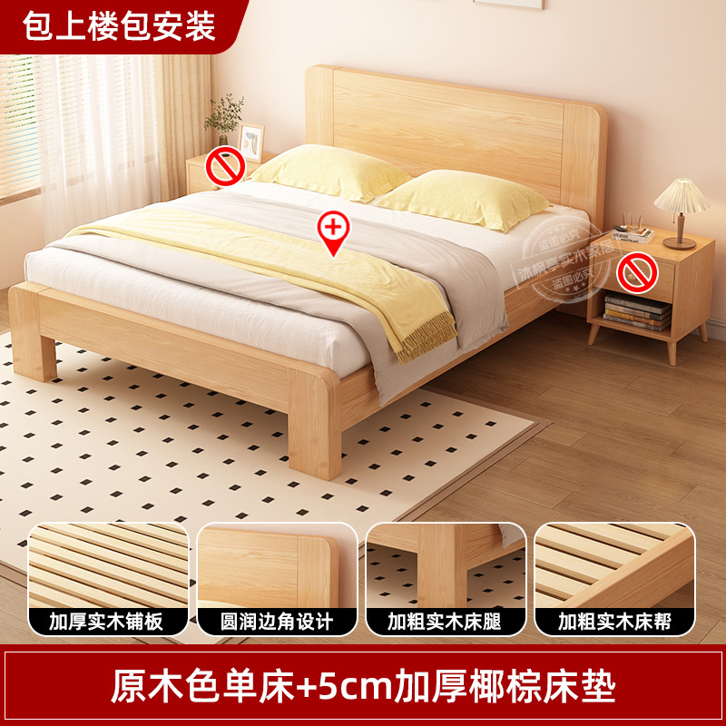 • 두꺼운 원목 침대 + 두꺼운 5cm 코코넛 야자 매트리스 [위층 배송]