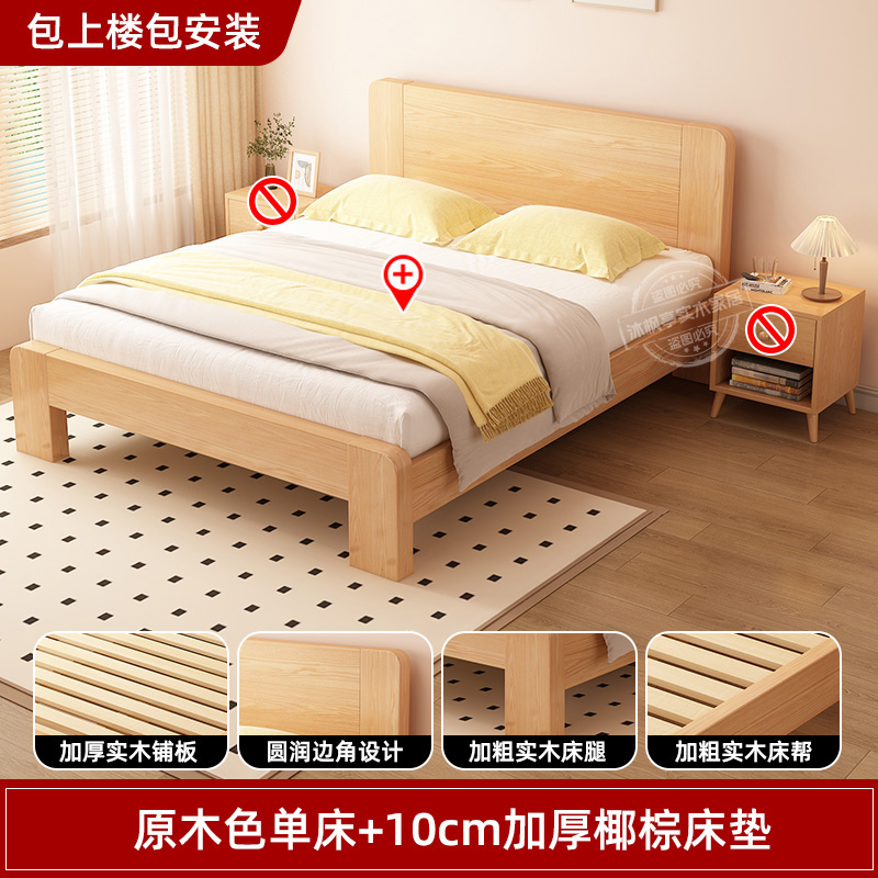 • 두꺼운 원목 침대 + 침대 옆 탁자 1개 + 두꺼운 10CM 코코넛 야자 매트리스 [위층 배송]