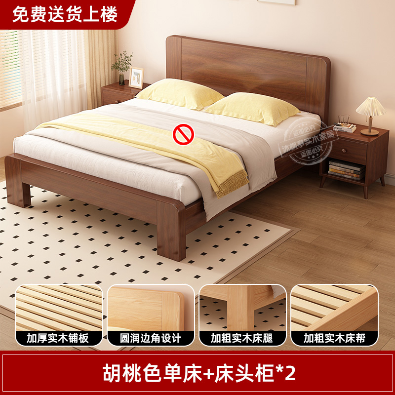 • 두꺼운 원목 호두색 침대 + 침대 옆 탁자 2개 [위층 배송]
