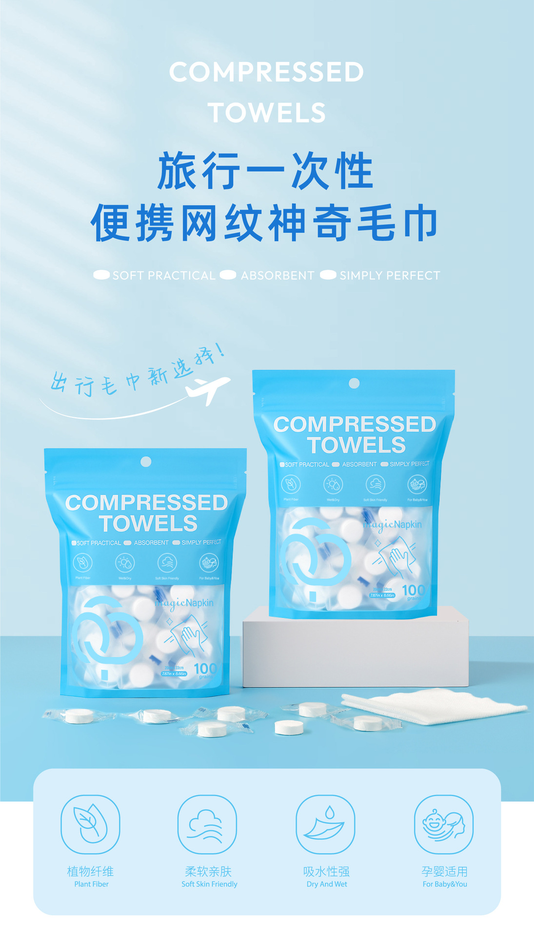 국경 간 Amazon 100개 봉지형 일회용 마법의 메쉬 압축 수건 압축 수건