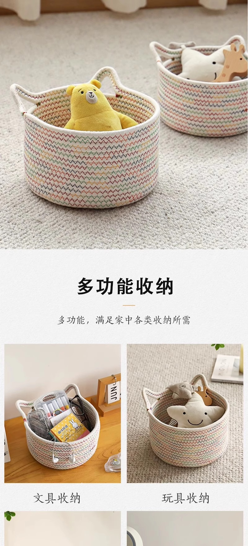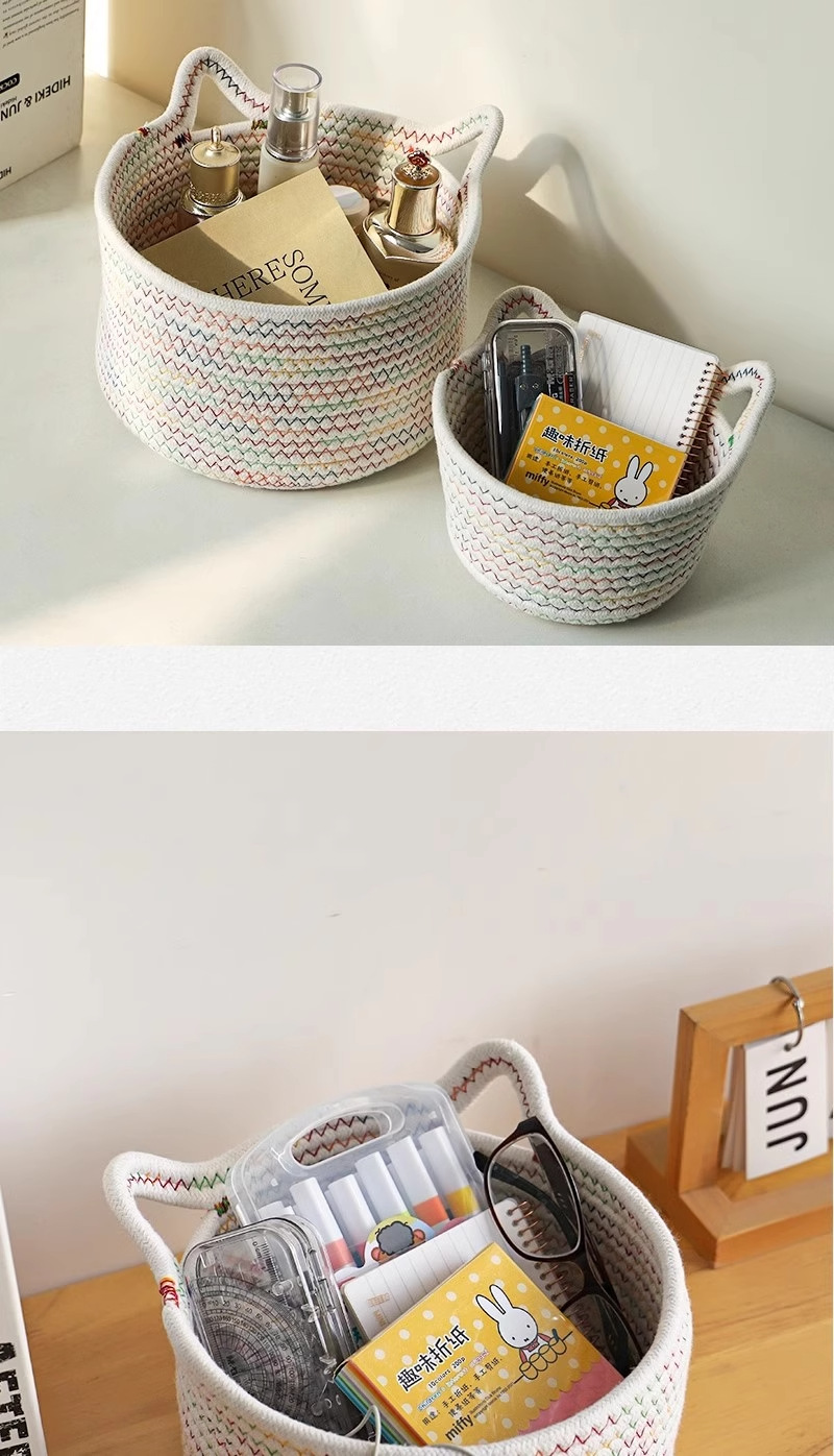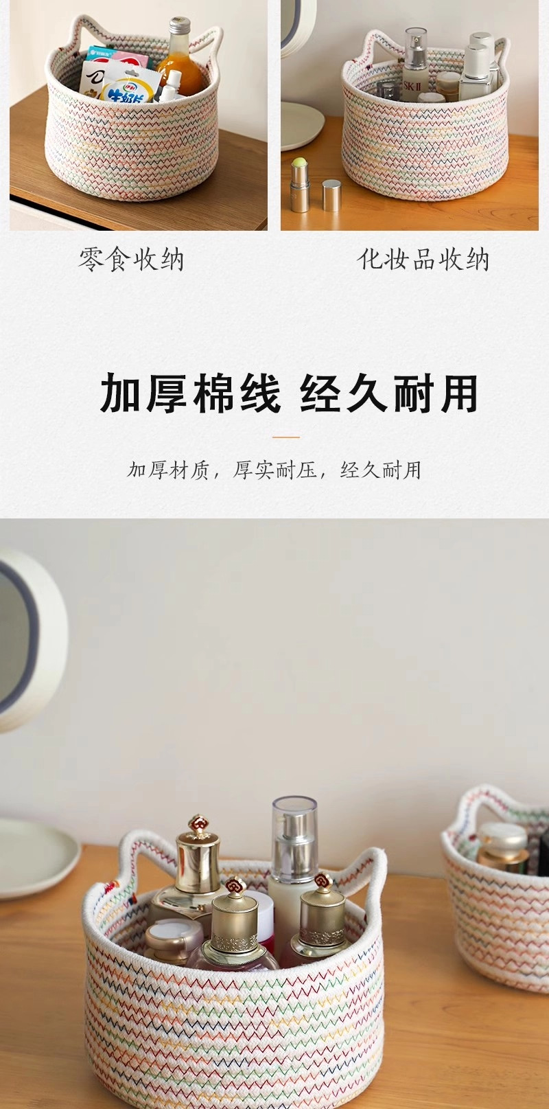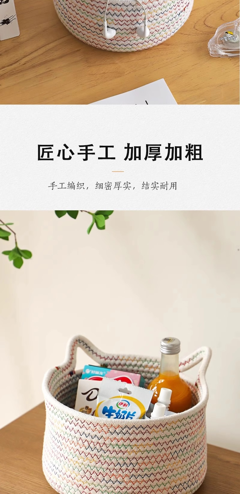 화장품 데스크탑 보관 상자 손으로 짠 면사 보관 바구니 대용량 장난감 스낵 잡다한 보관 바구니스토어 가기