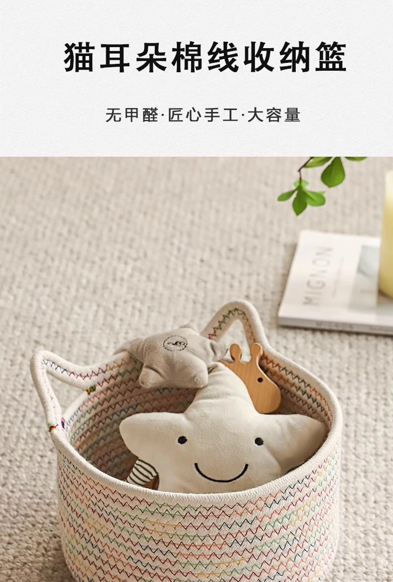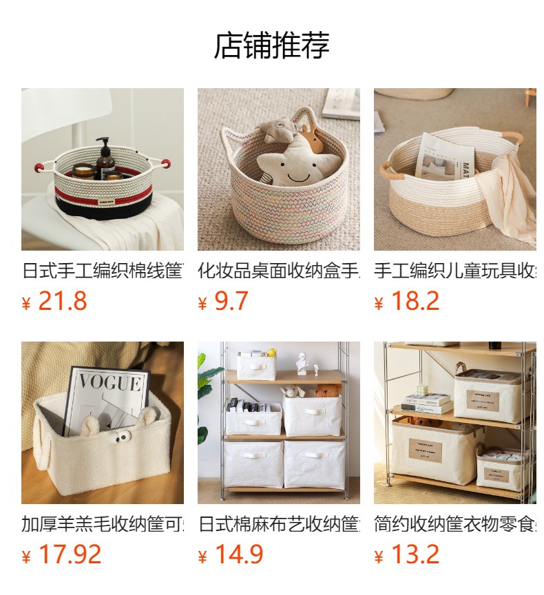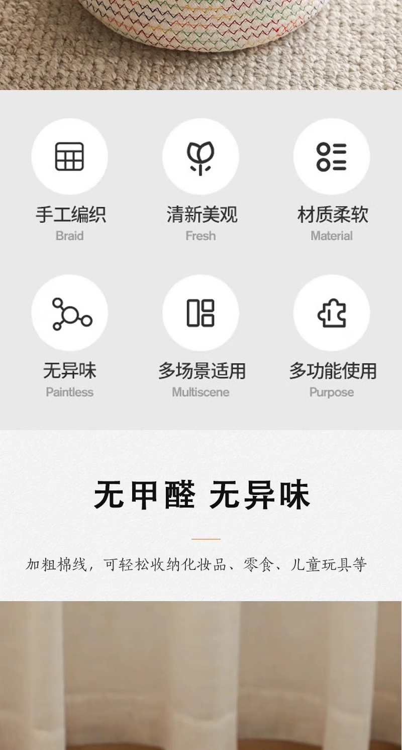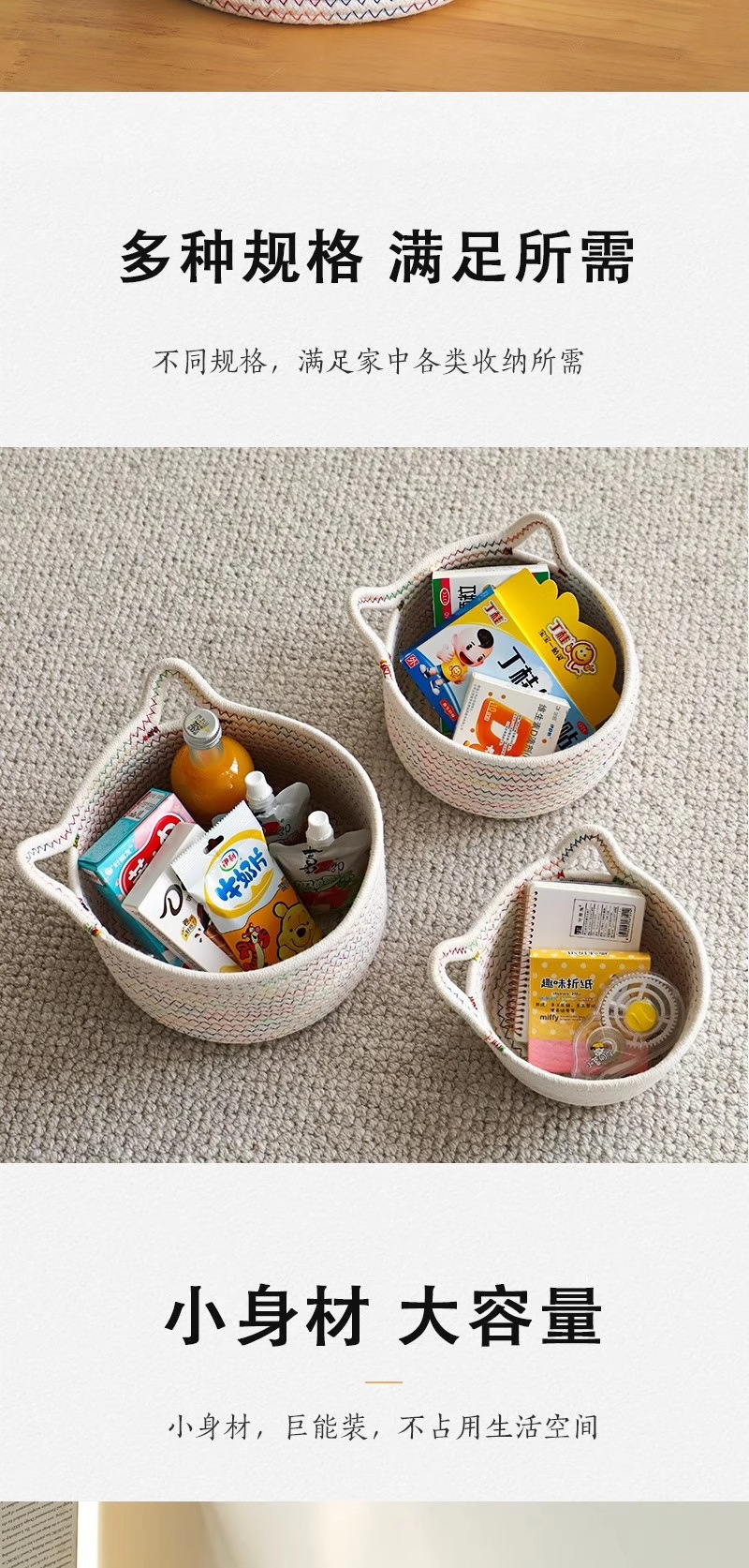 화장품 데스크탑 보관 상자 손으로 짠 면사 보관 바구니 대용량 장난감 스낵 잡다한 보관 바구니스토어 가기