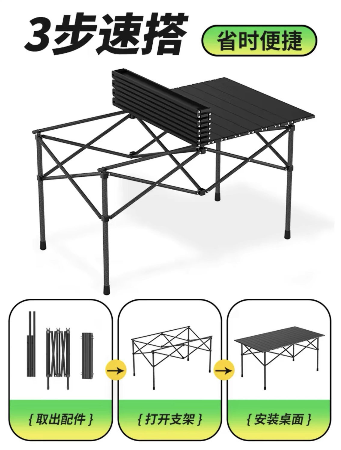 • 120cm 노란색 테이블 + 6* 초대형 흰색 의자 + 수납 가방