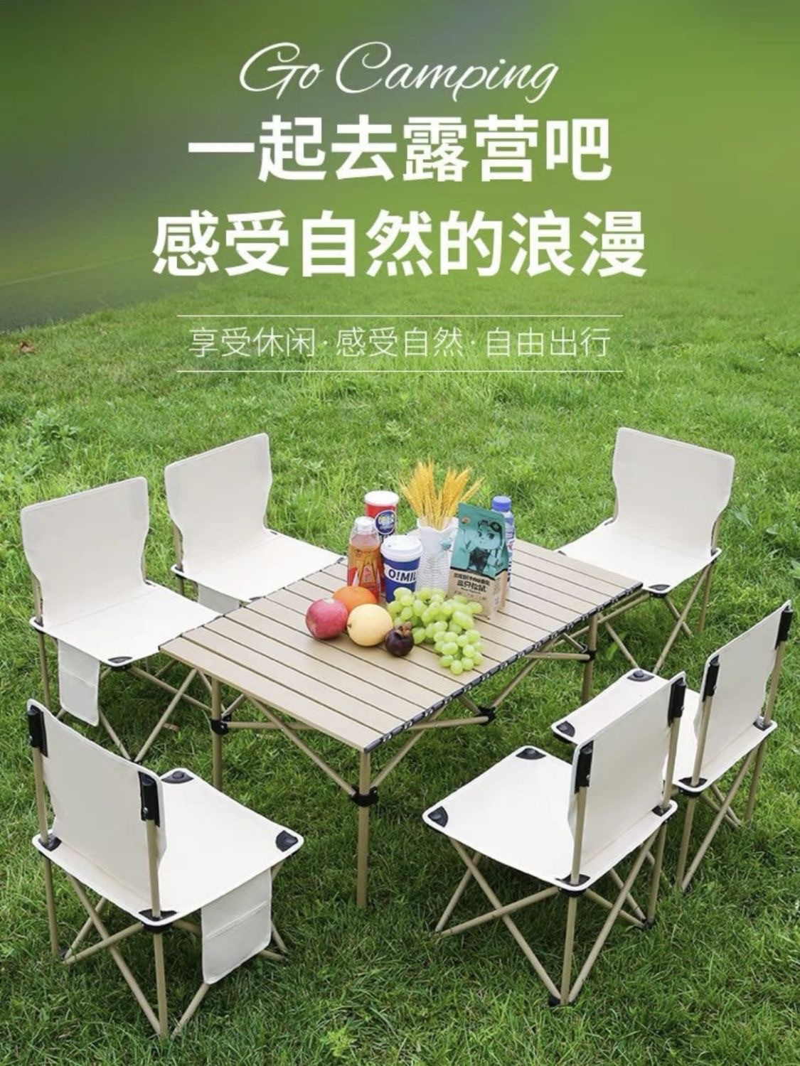 • 95cm 노란색 테이블 + 6* 초대형 흰색 의자 + 수납 가방