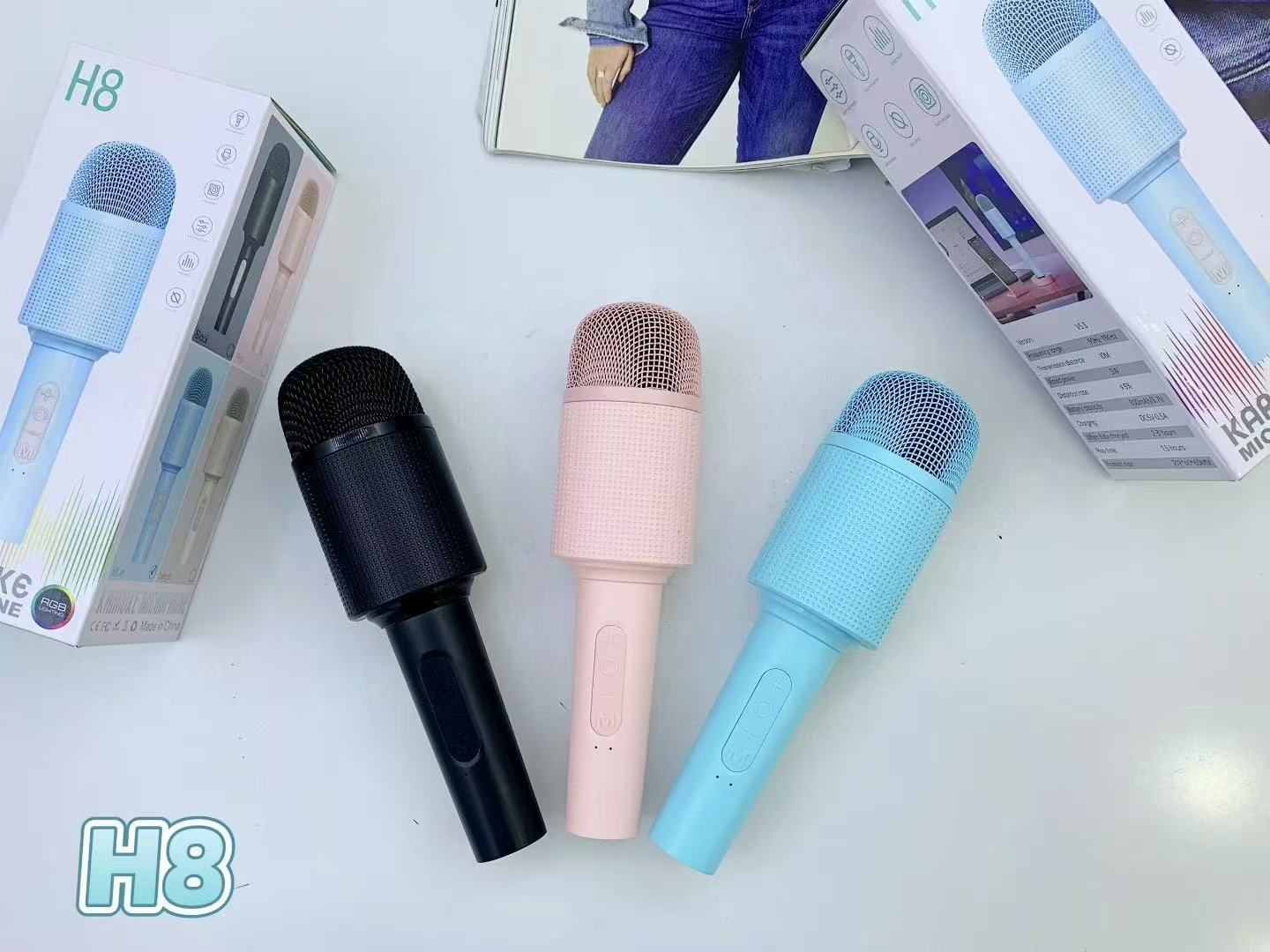 대외 무역 신제품 H8 핸드 헬드 마이크 블루투스 스피커 올인원 어린이 가족 노래 무선 노래방 마이크스토어 가기