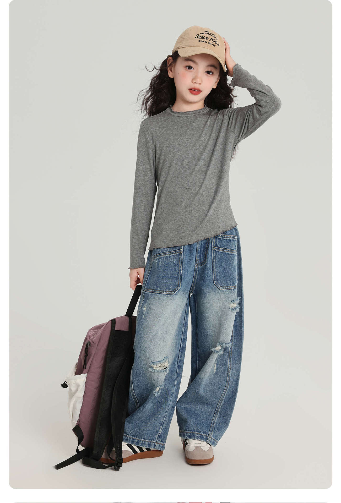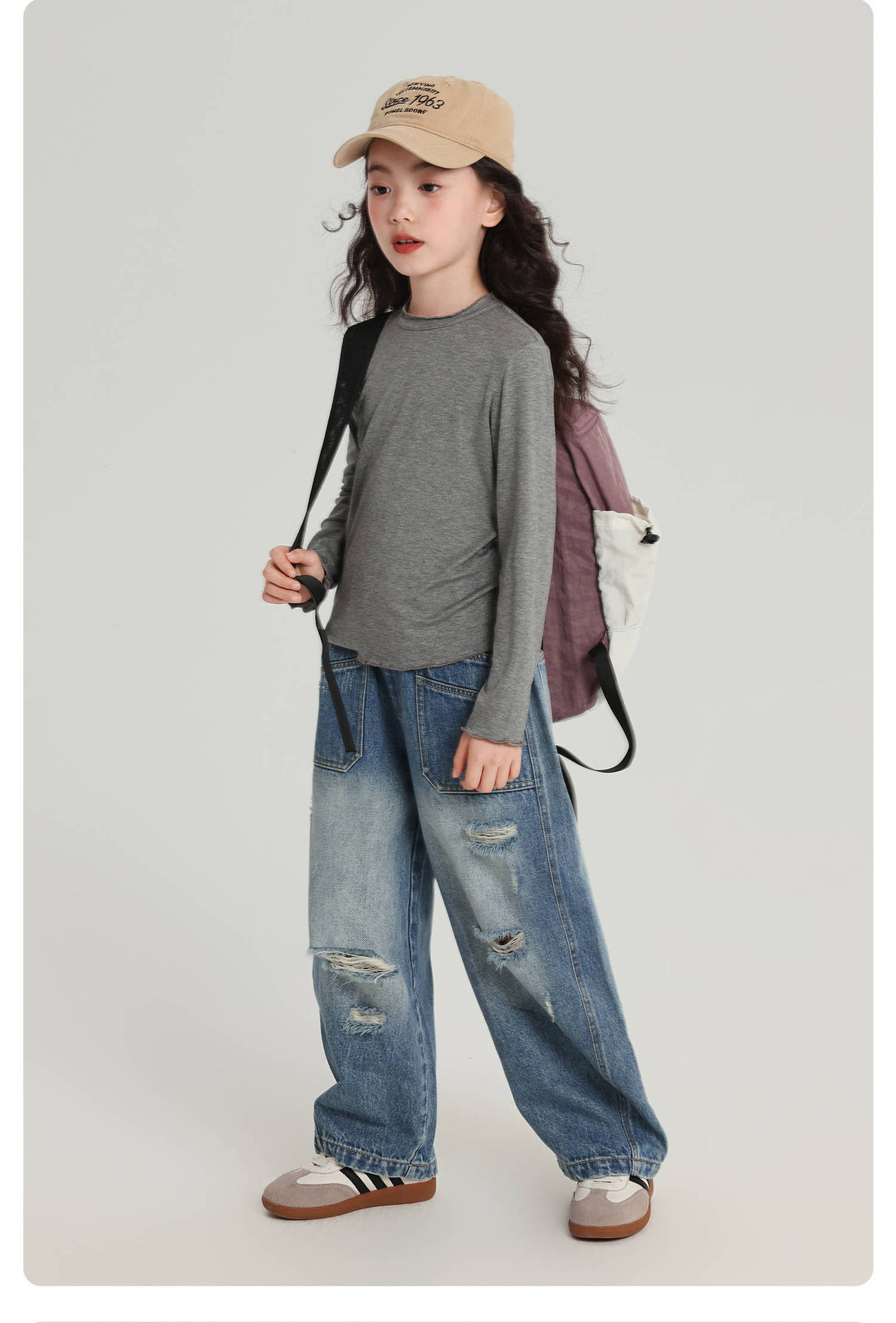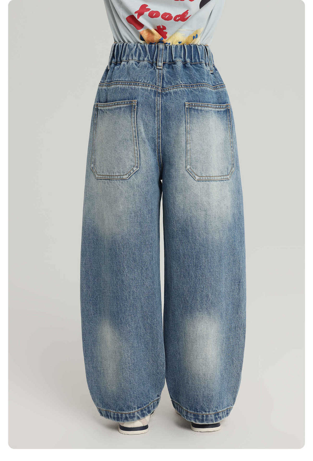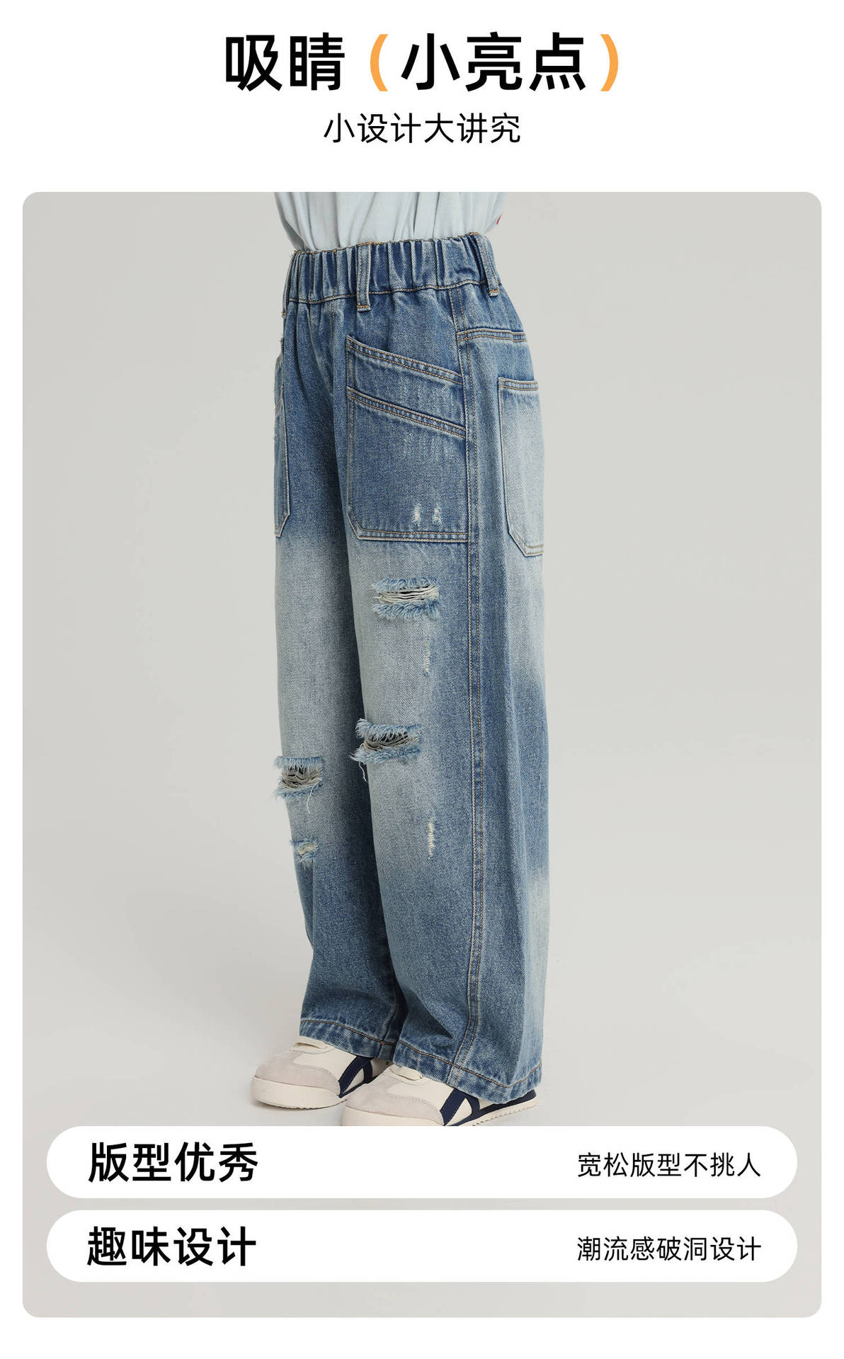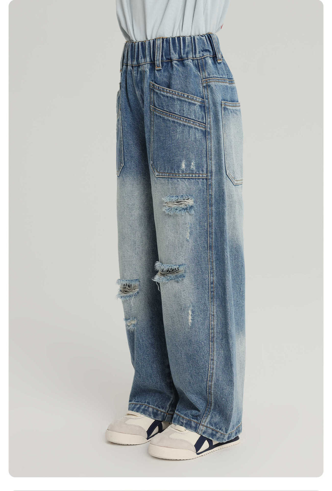 푸딩 하루 아동 청바지 2025 가을 신작 여아 찢어진 청바지 루즈한 와이드 레그 바지스토어 가기
