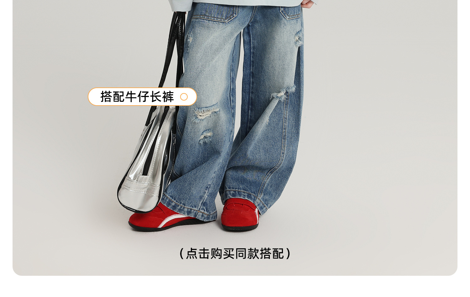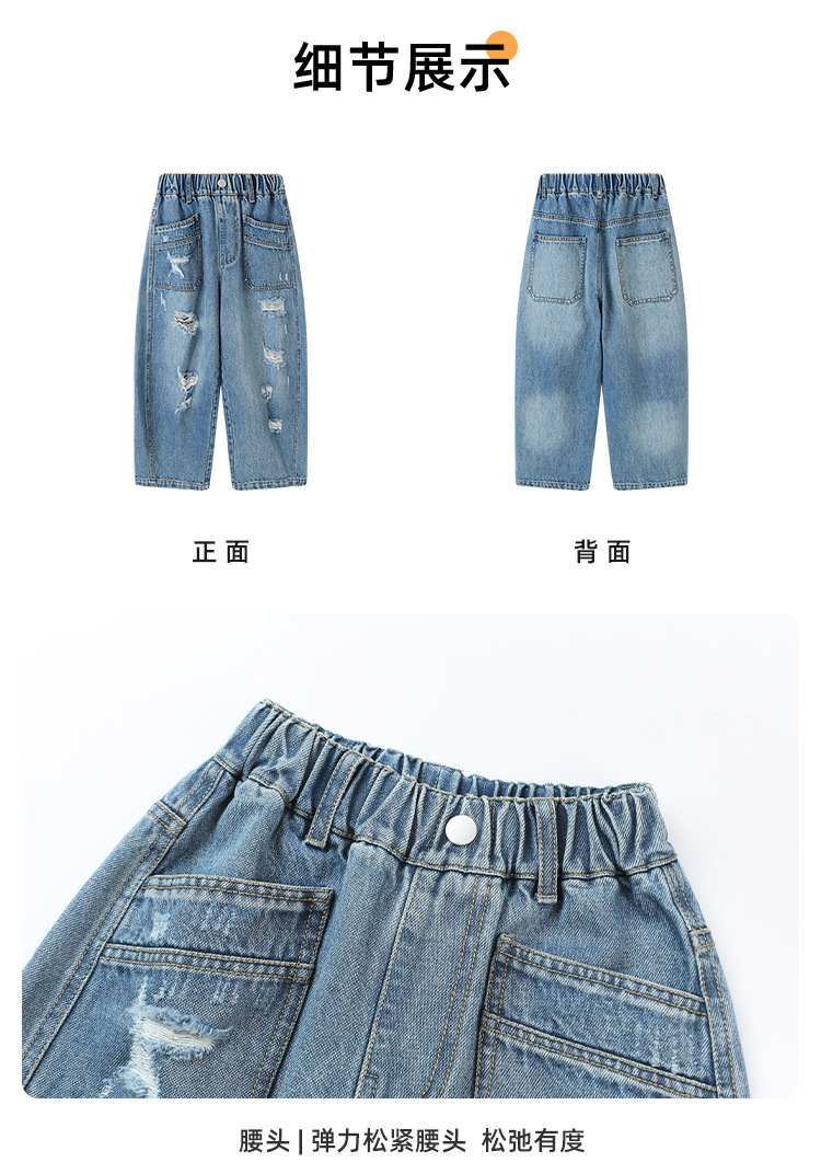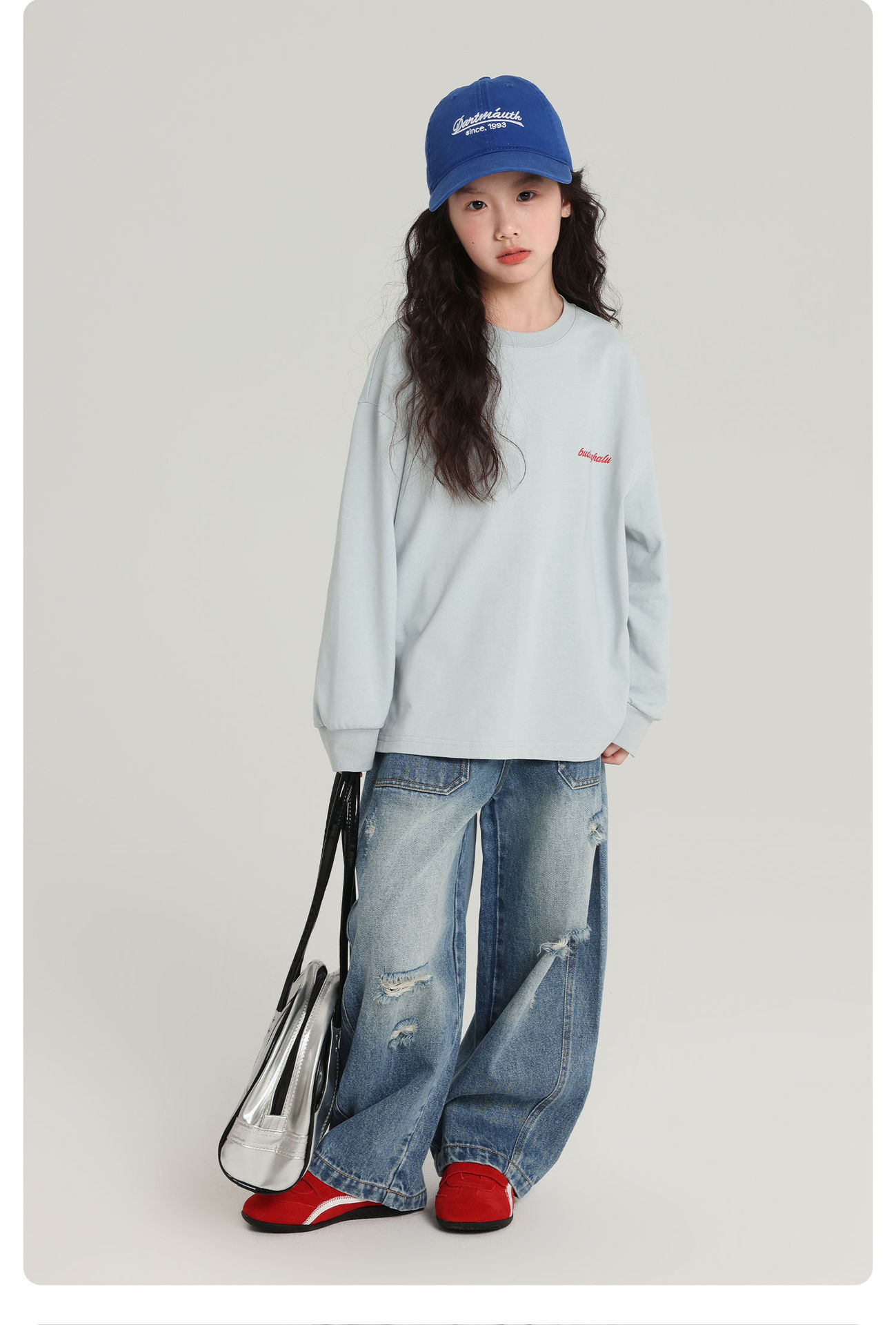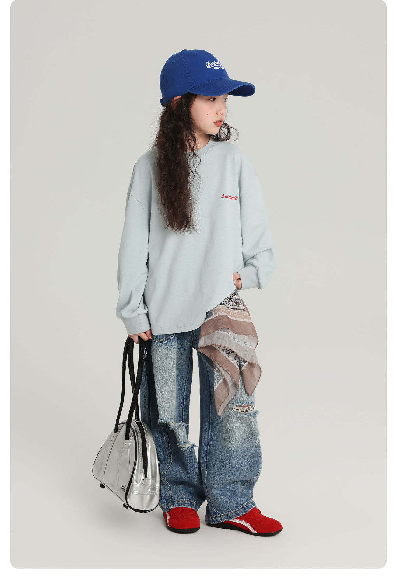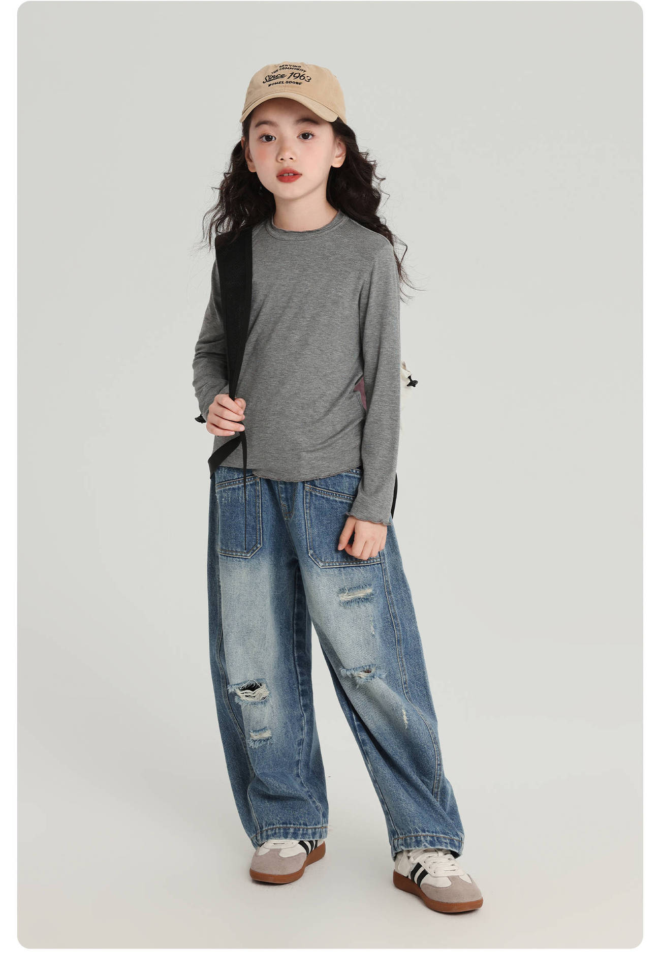 푸딩 하루 아동 청바지 2025 가을 신작 여아 찢어진 청바지 루즈한 와이드 레그 바지스토어 가기