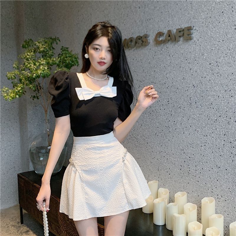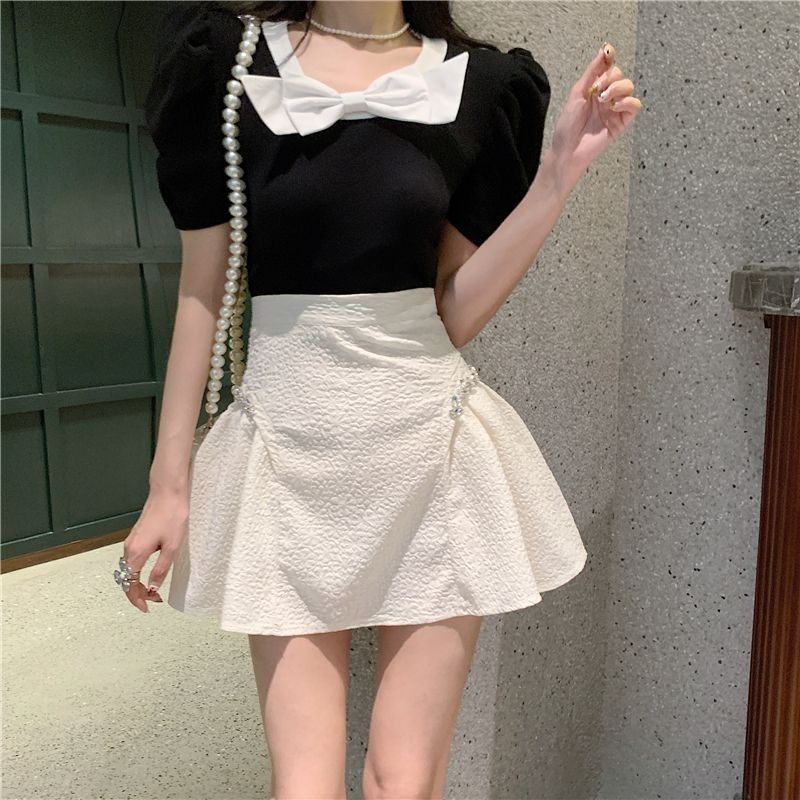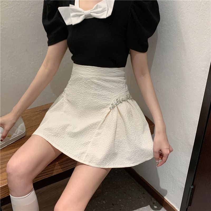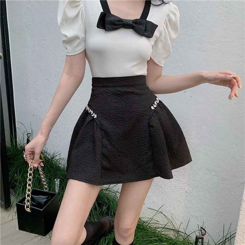 블랙 숏 스커트 니치 불규칙 다이아몬드 스커트 2025년 여름 신상 하이웨이스트 슬림 퍼프 스커트스토어 가기