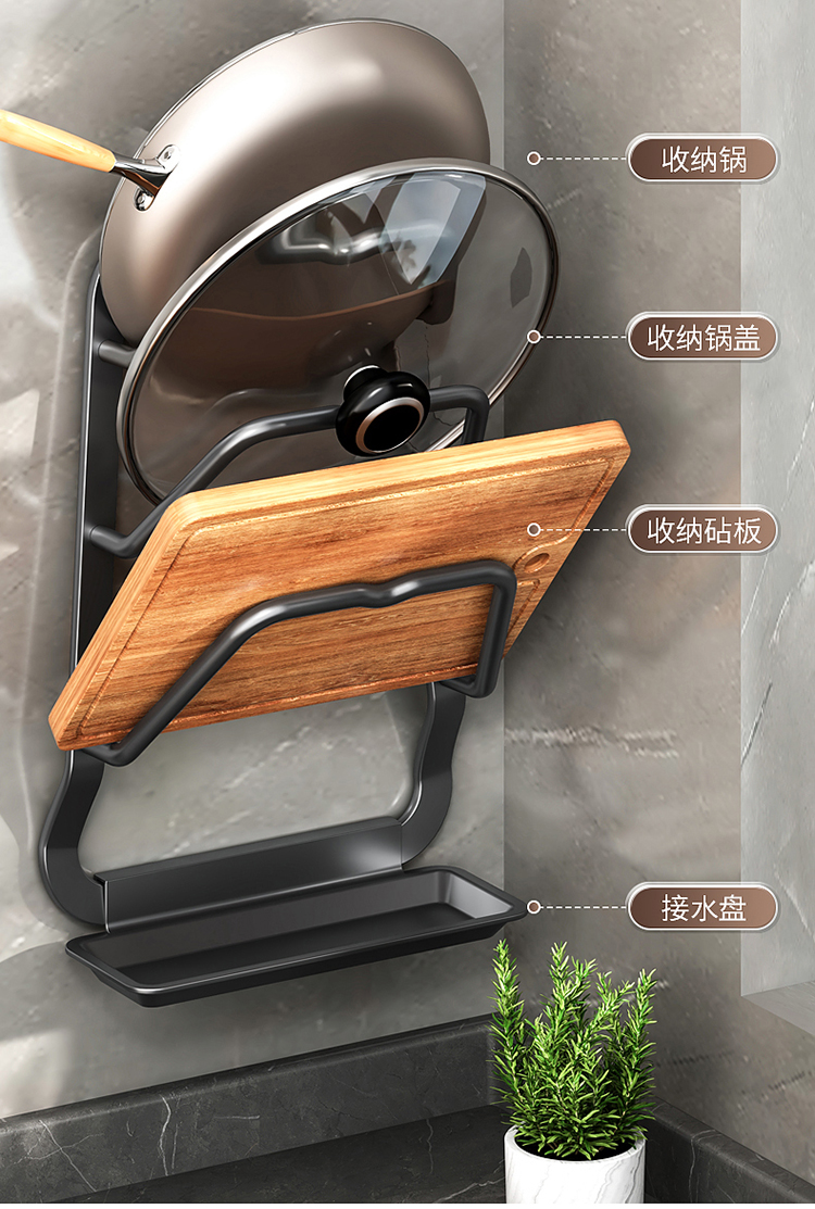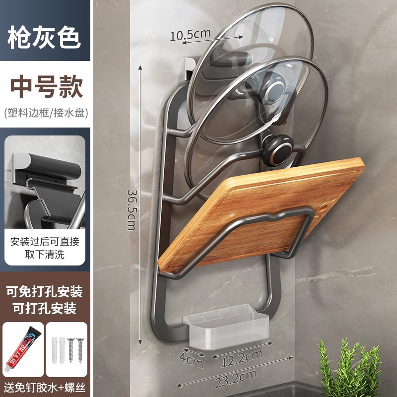 벽걸이형 주방선반, 펀치 없는 냄비뚜껑걸이, 용품보관함, 도마걸이, 도마