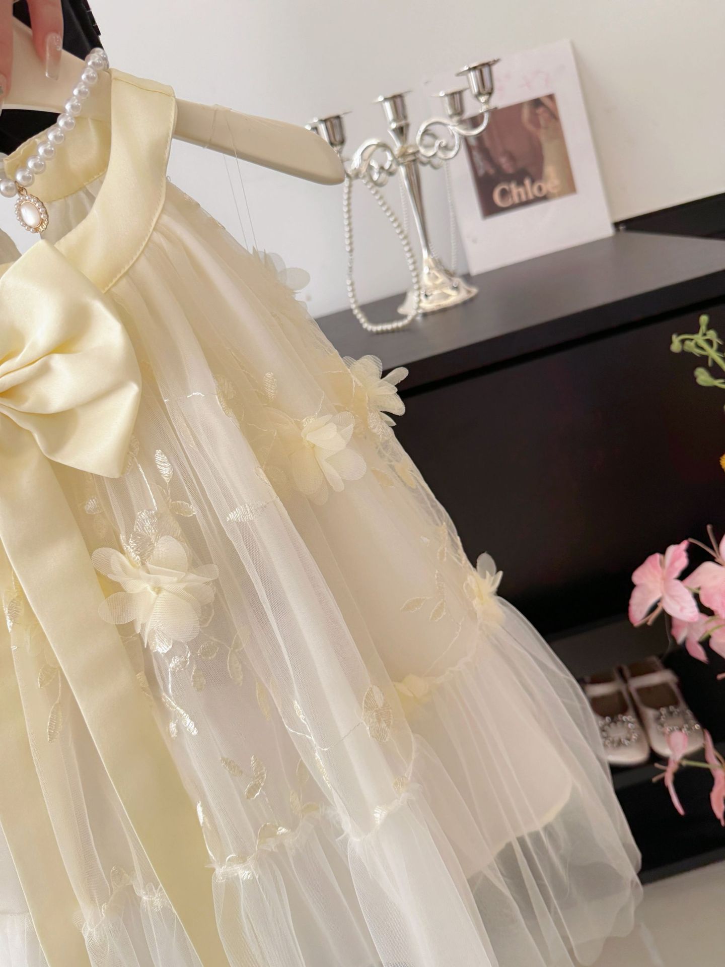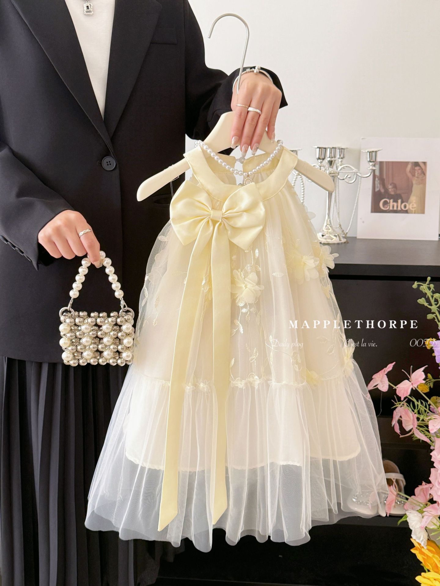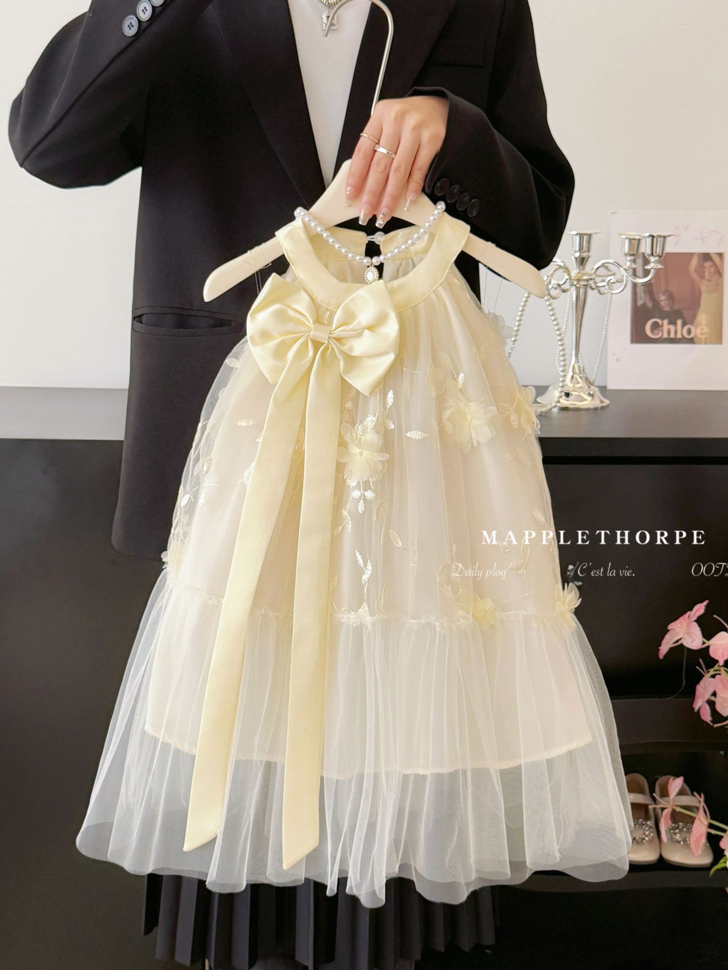 여자 나비 넥 홀터넥 공주 거즈 드레스 여름 새로운 스타일 어린이 스타일 드레스 작은 향기 스타일 서스펜더 드레스 유행