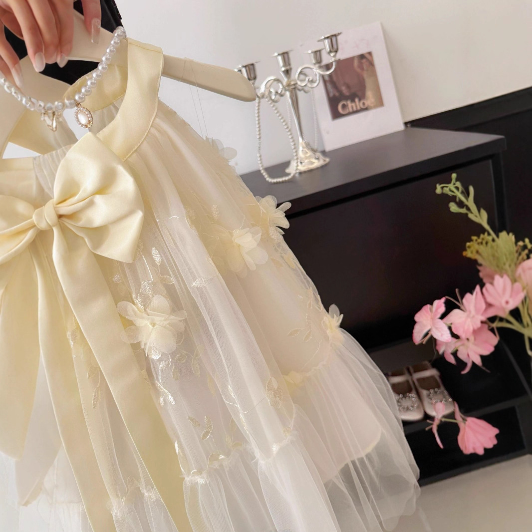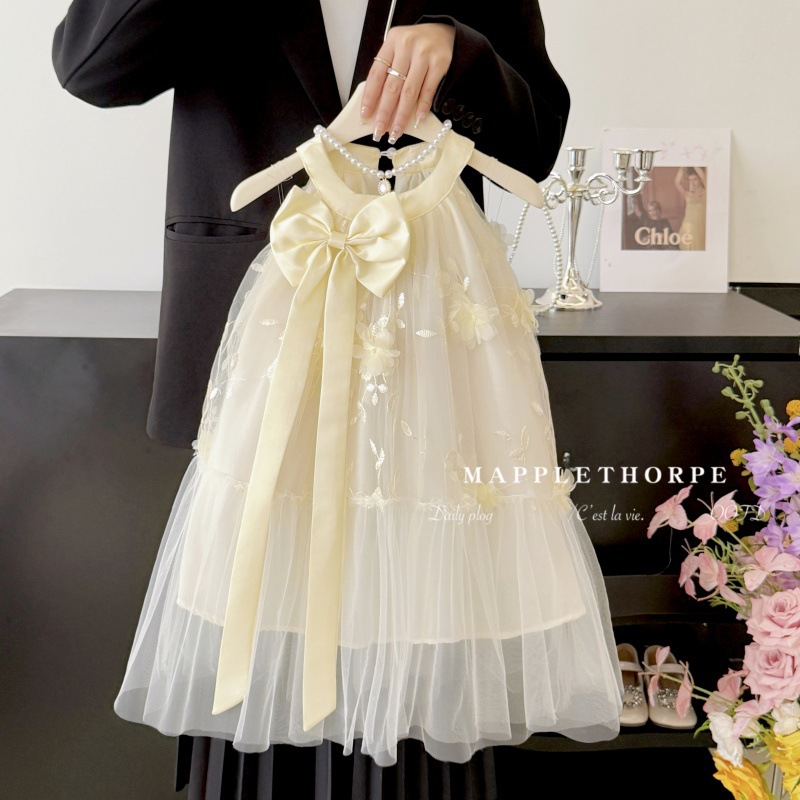 여자 나비 넥 홀터넥 공주 거즈 드레스 여름 새로운 스타일 어린이 스타일 드레스 작은 향기 스타일 서스펜더 드레스 유행스토어 가기