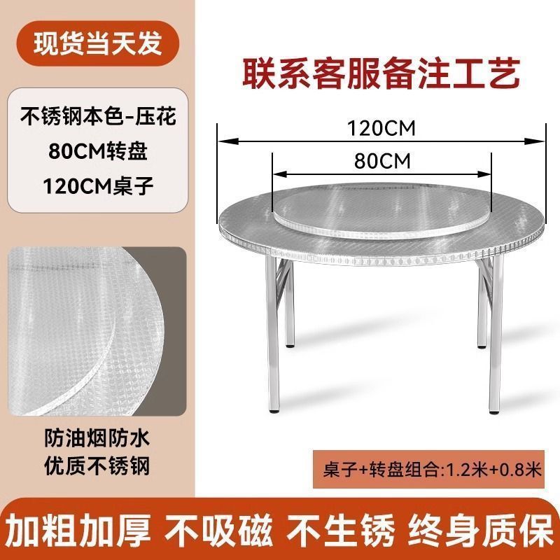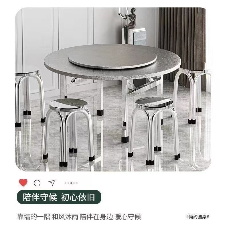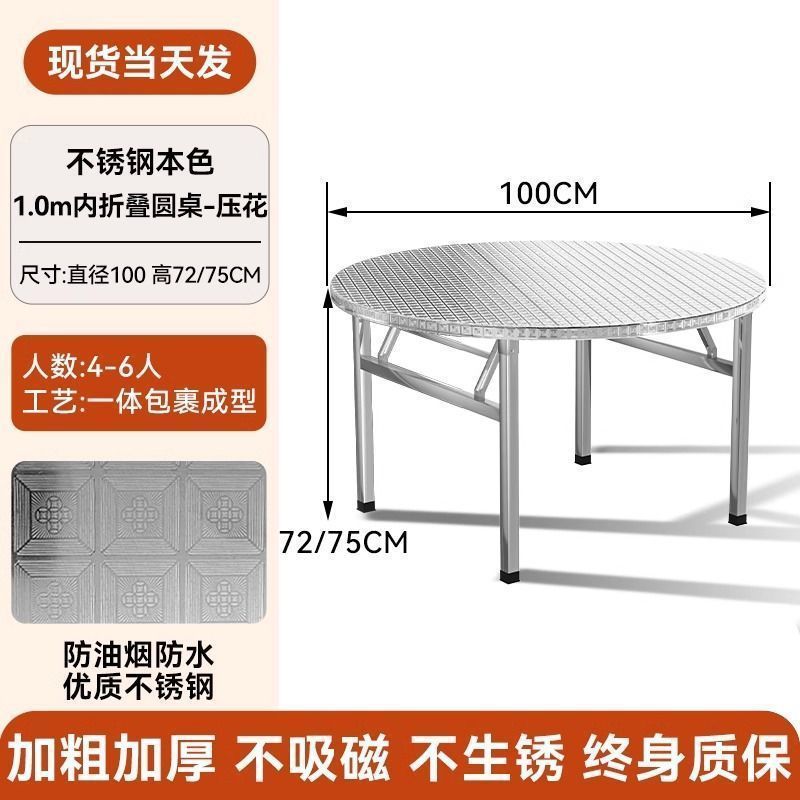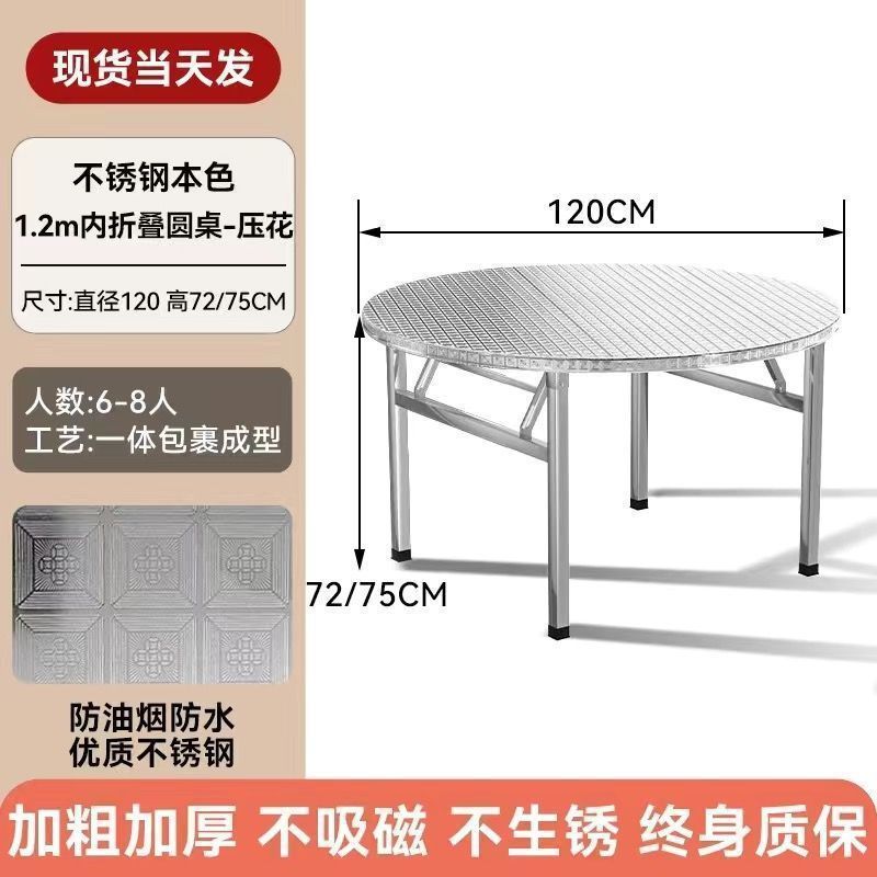 304 두꺼운 스테인레스 스틸 접이식 원형 테이블 흐르는 물 연회 야외 식사 홈 식탁 스낵 바베큐 테이블스토어 가기