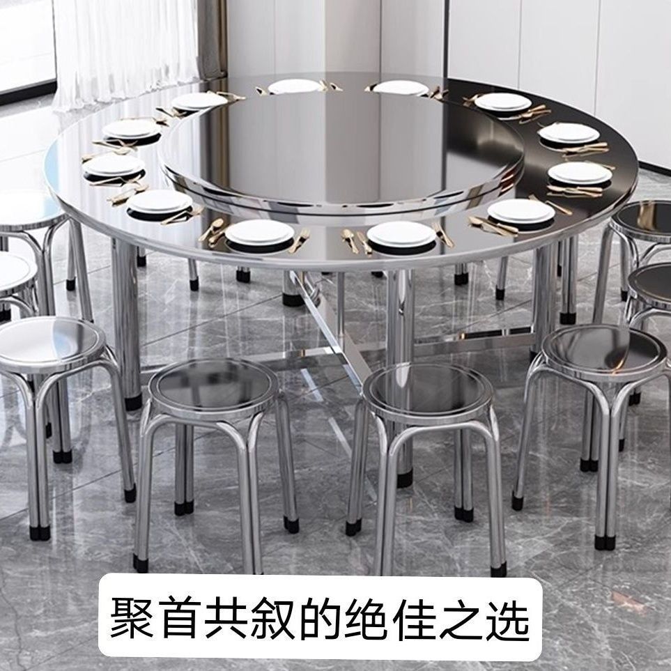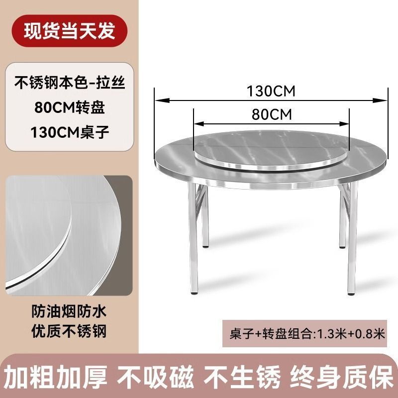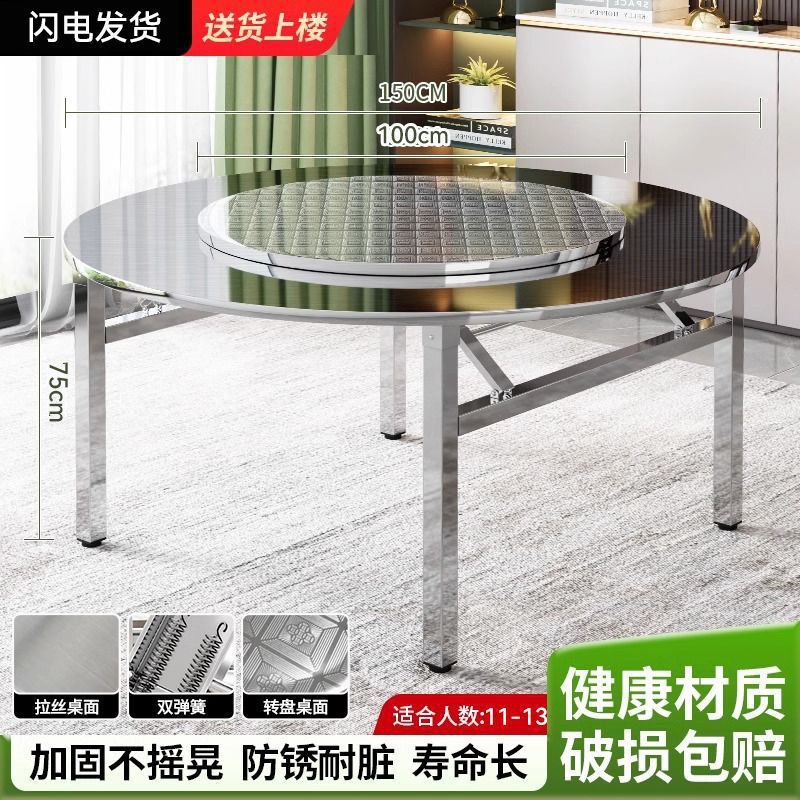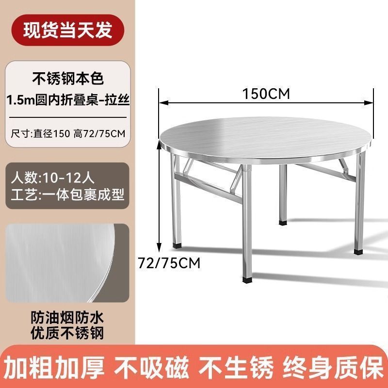 304 두꺼운 스테인레스 스틸 접이식 원형 테이블 흐르는 물 연회 야외 식사 홈 식탁 스낵 바베큐 테이블