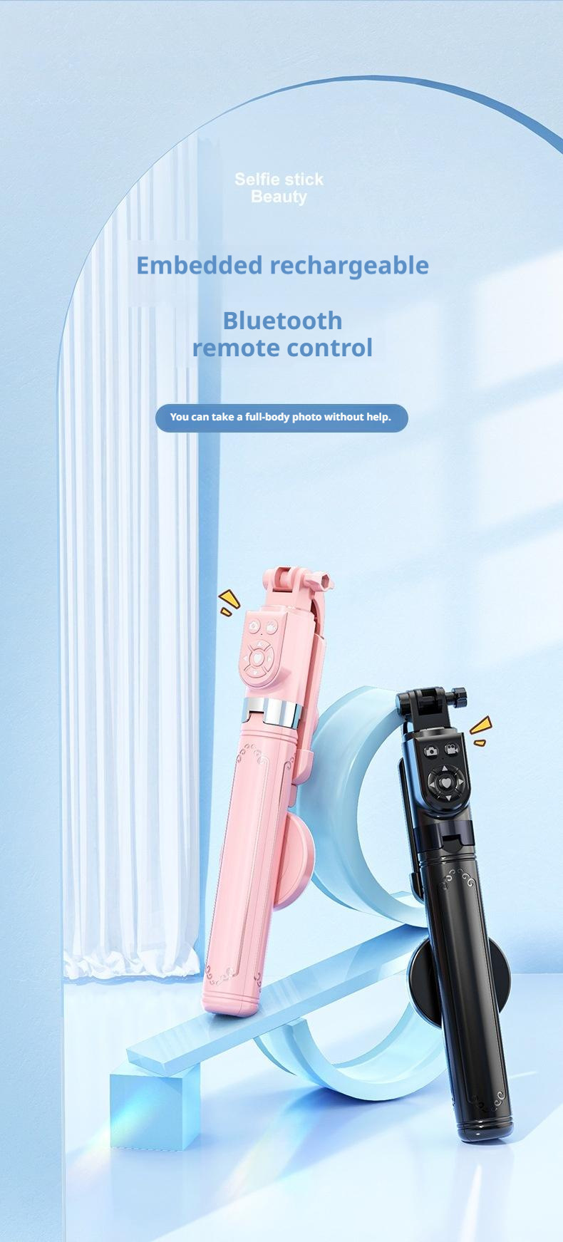 • Z14 화이트 [ 1.4m 셀카봉 + 충전식 Douyin 리모컨 + 안정적인 삼각대 ]