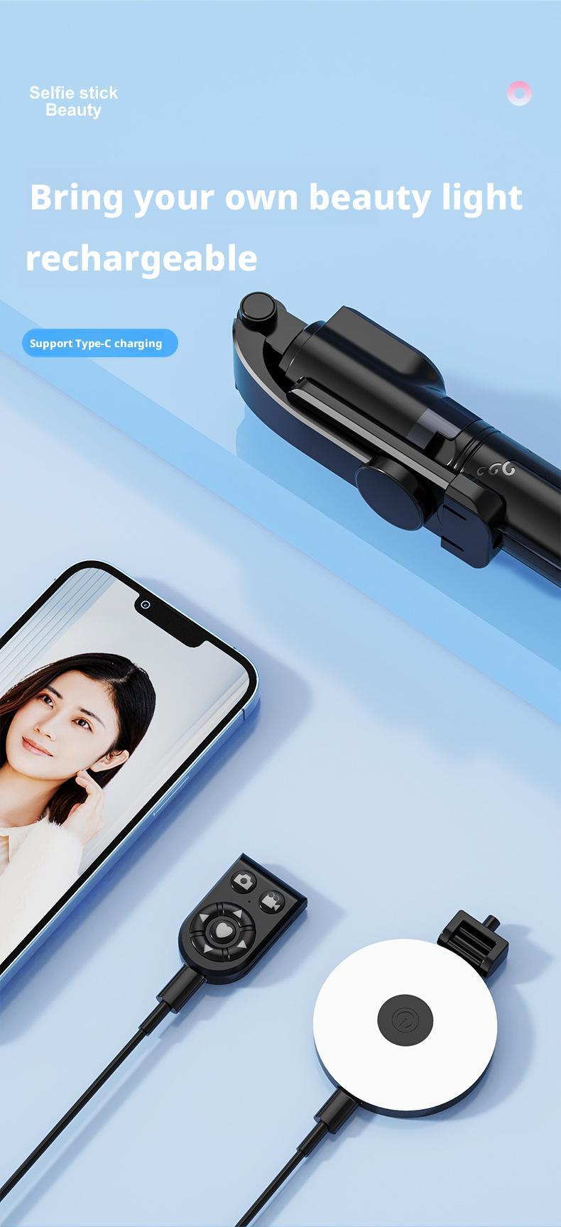 • Z14Pro 블랙 [셀카봉 1.4m 개 + 충전식 Douyin 리모컨 + 안정적인 삼각대 + 원형 조명 1 개]