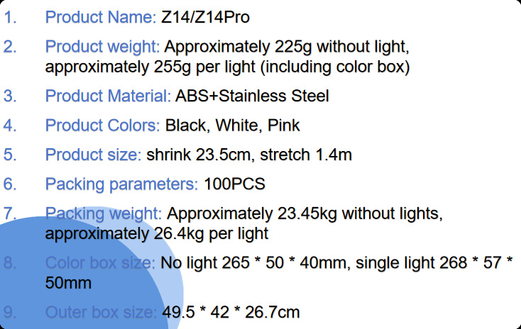 • Z14Pro 화이트 [셀카봉 1.4m 개 + 충전식 Douyin 리모컨 + 안정적인 삼각대 + 원형 조명 1 개]