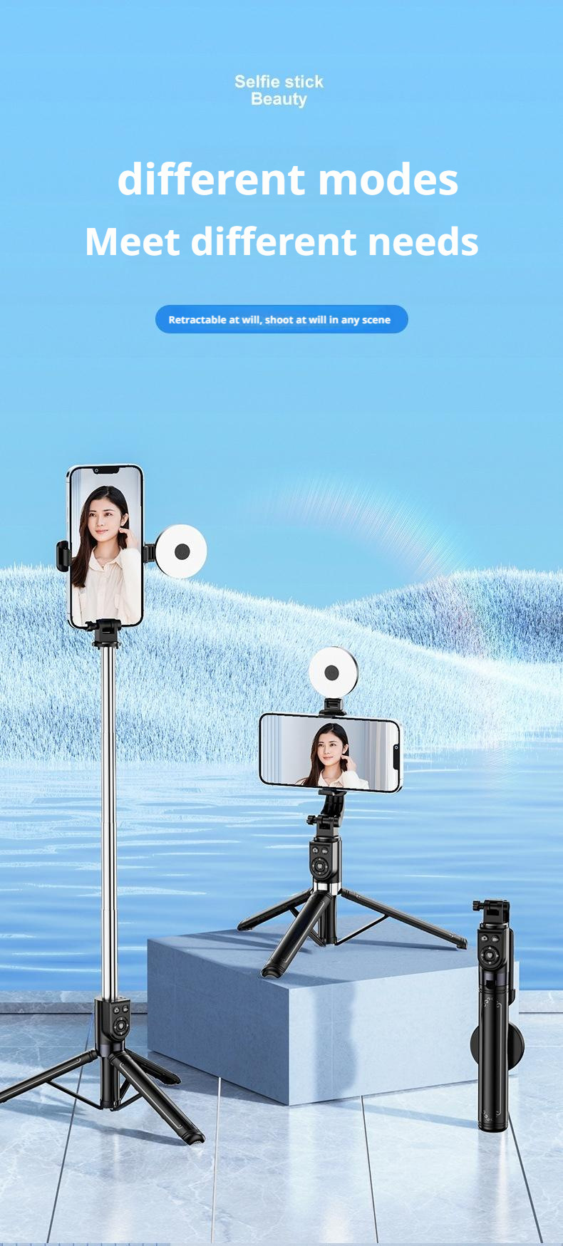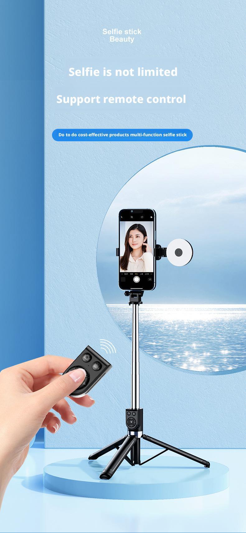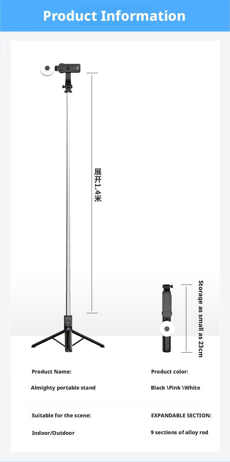 새로운 1.4m 휴대 전화 셀카 스틱 사진 및 비디오 촬영 도구 Douyin 데스크탑 라이브 방송 스탠드 개폐식 및 휴대용스토어 가기