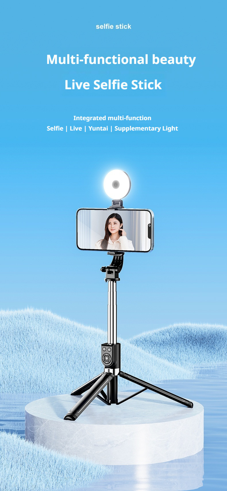 새로운 1.4m 휴대 전화 셀카 스틱 사진 및 비디오 촬영 도구 Douyin 데스크탑 라이브 방송 스탠드 개폐식 및 휴대용