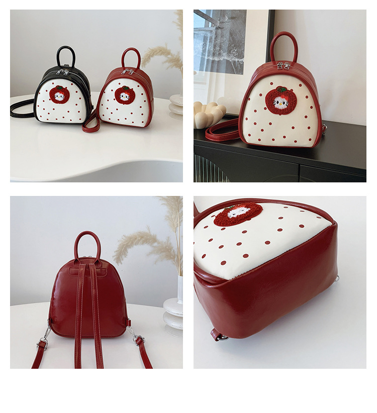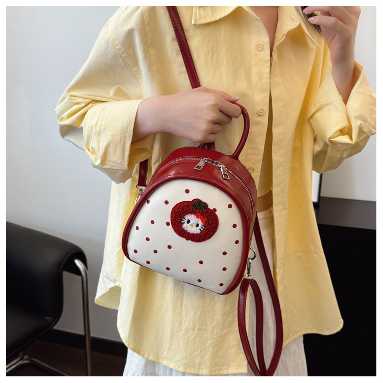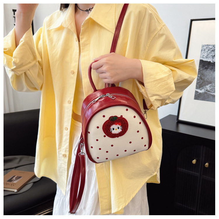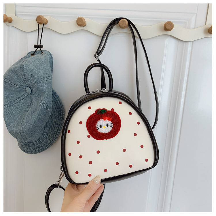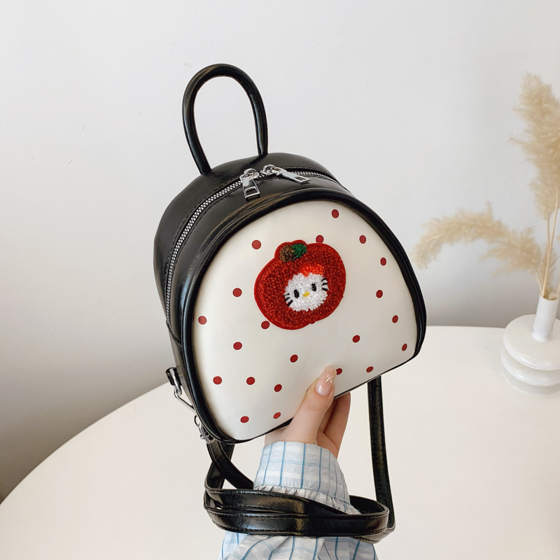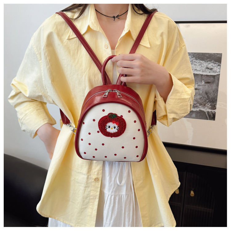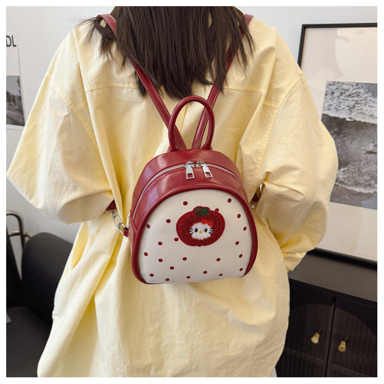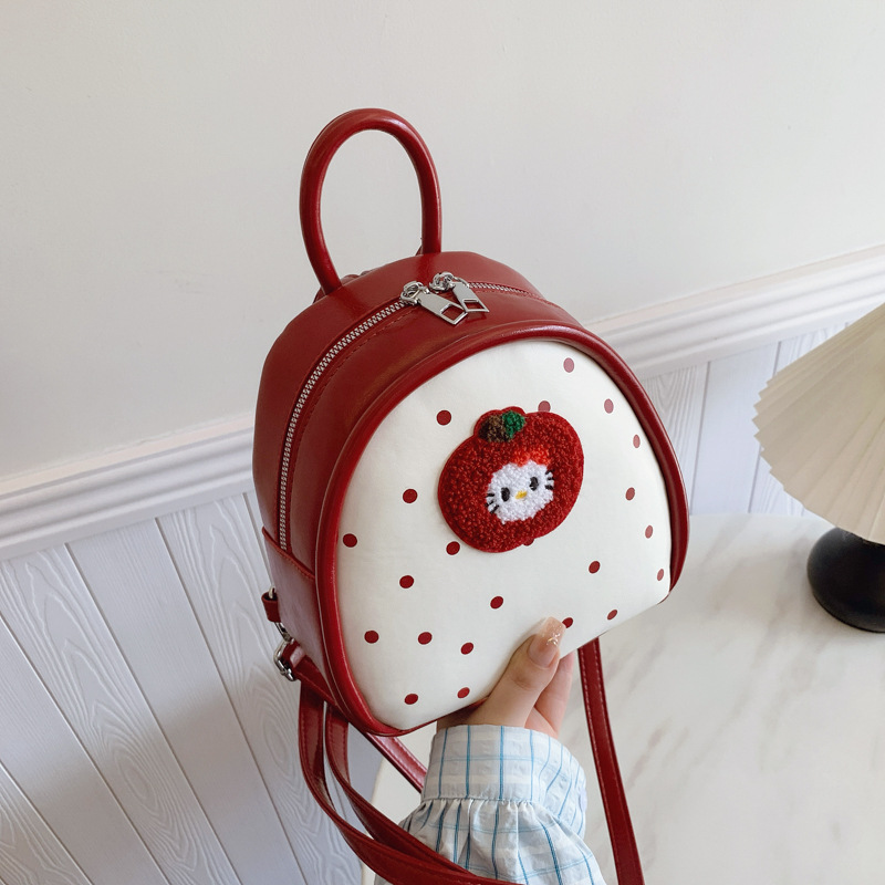 어린이 사과 폴카 도트 고양이 배낭 어린 소녀 다재다능하고 귀여운 틈새 빨간색 핸드백 아기 여행 배낭
