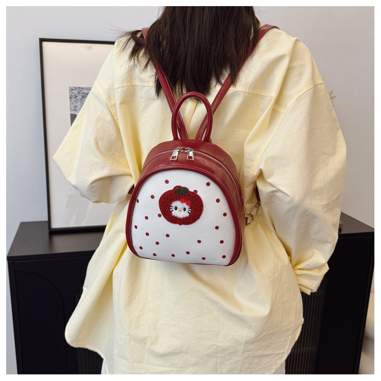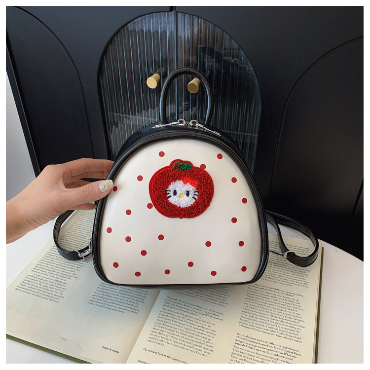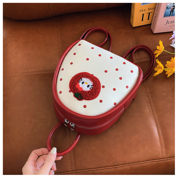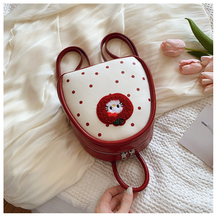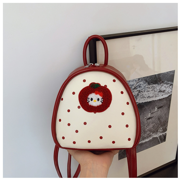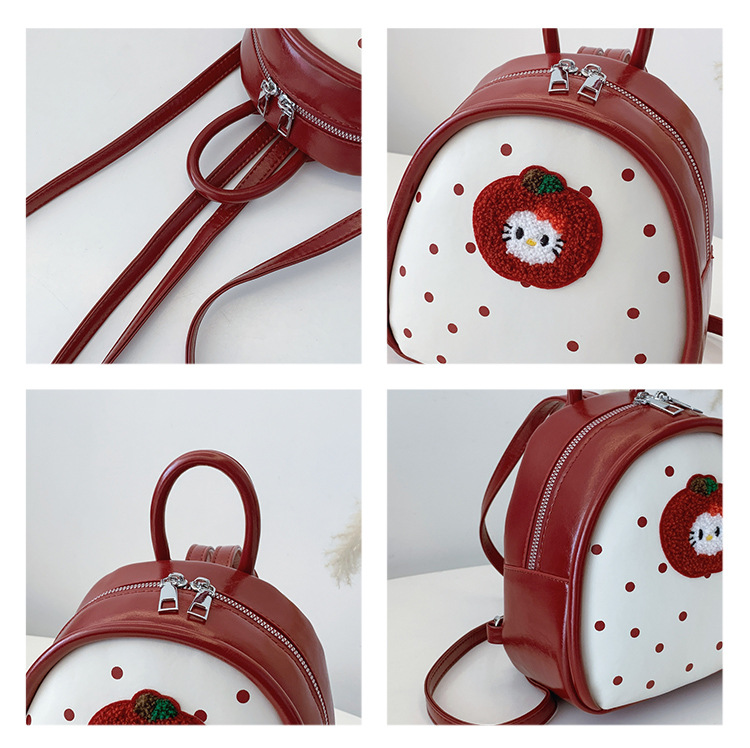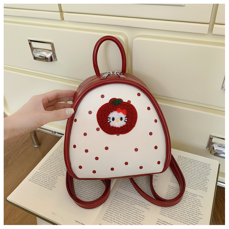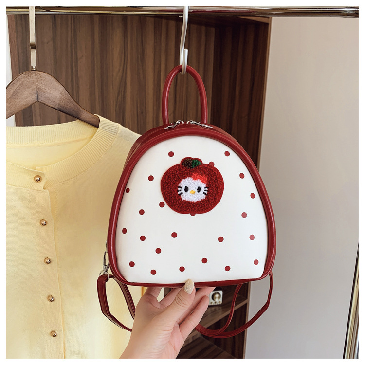 어린이 사과 폴카 도트 고양이 배낭 어린 소녀 다재다능하고 귀여운 틈새 빨간색 핸드백 아기 여행 배낭스토어 가기