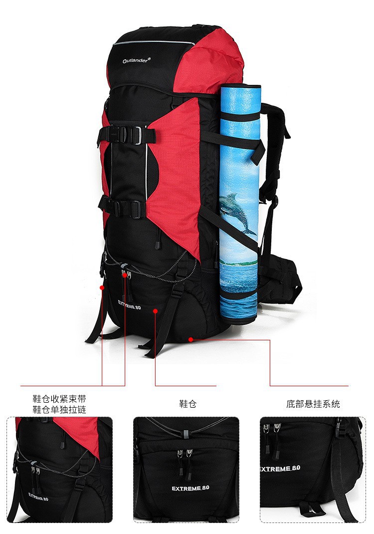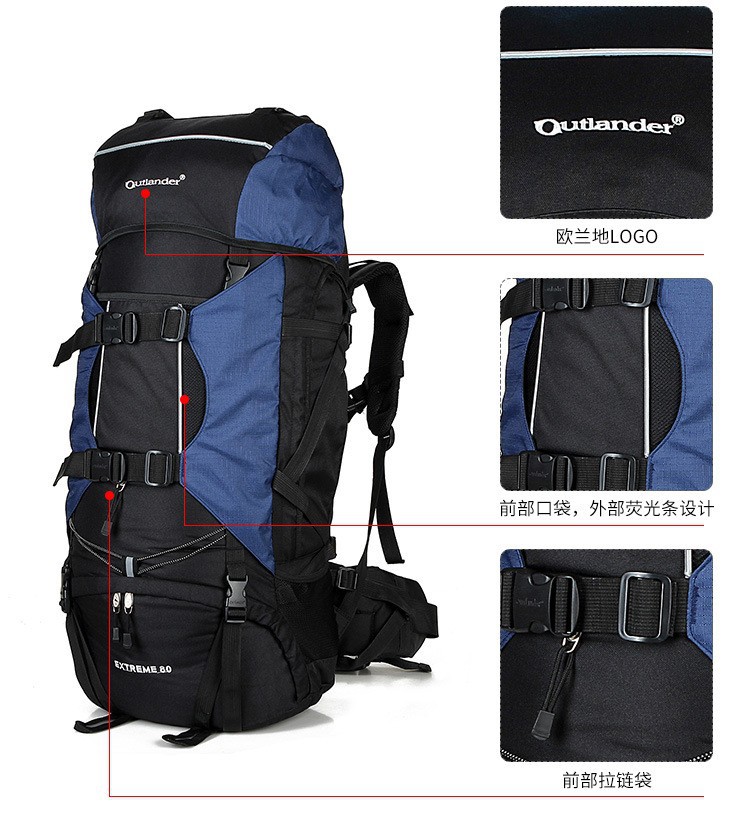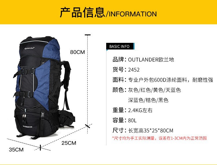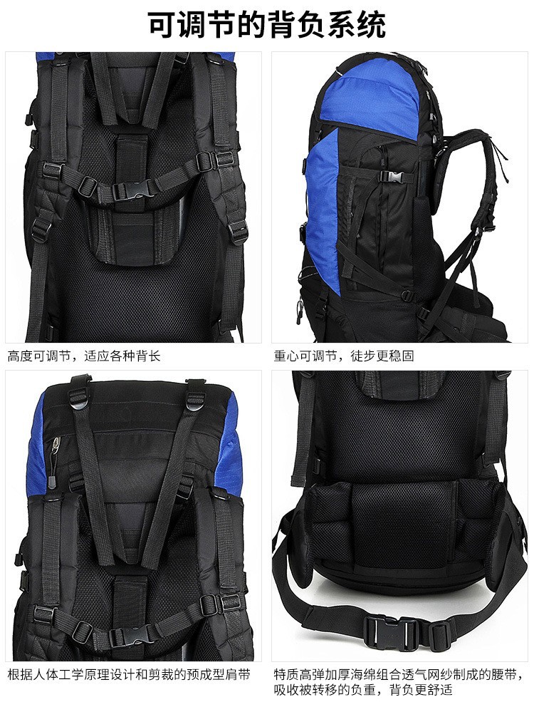 此款产品后背带有铝合金支架的大容量登山包,使用者背起来更舒服,区别于普通的户外背包,另外此款登山包赠送防雨罩