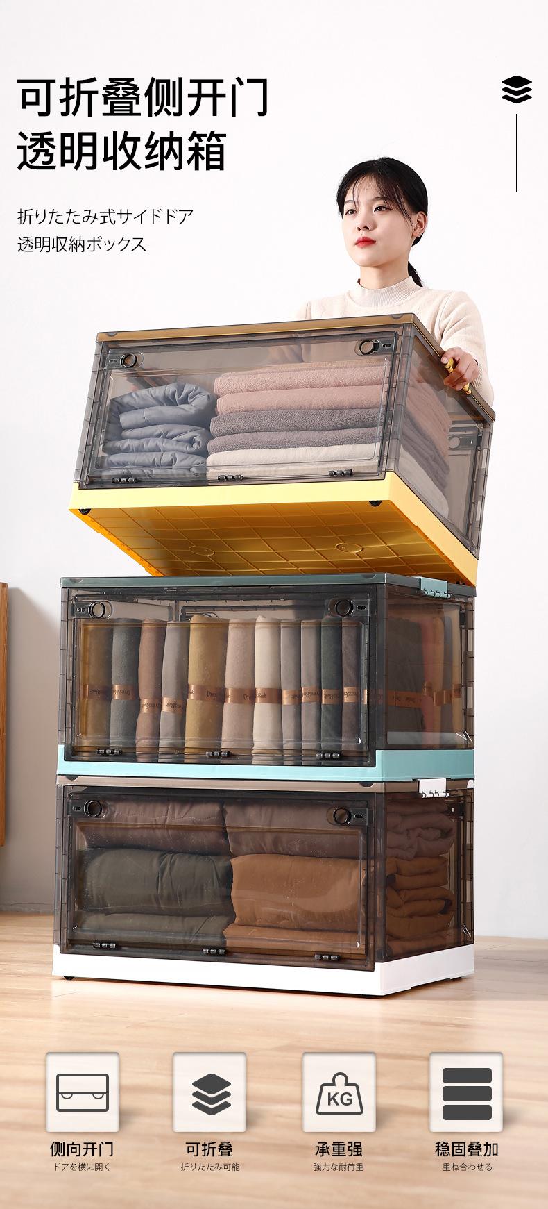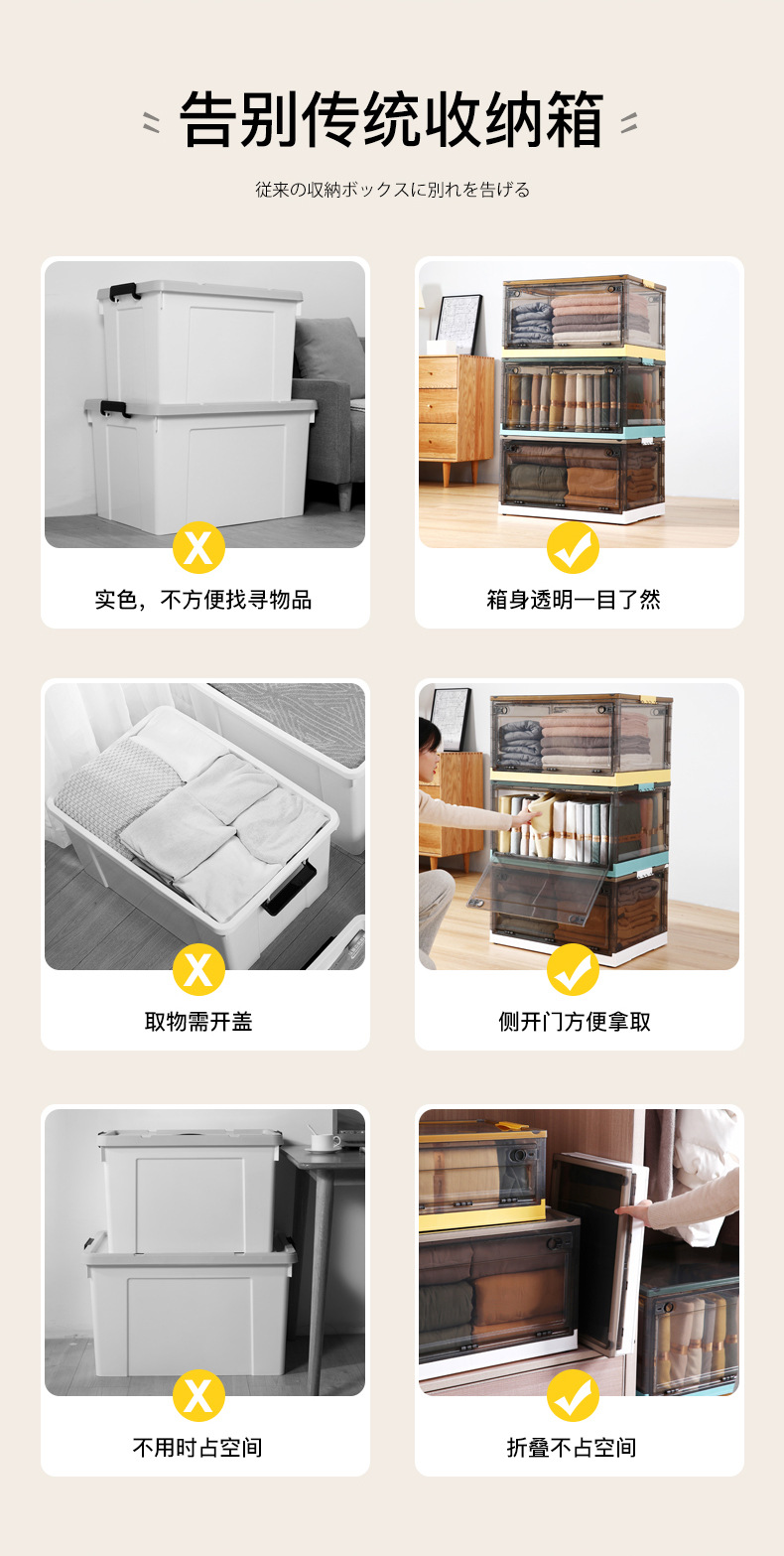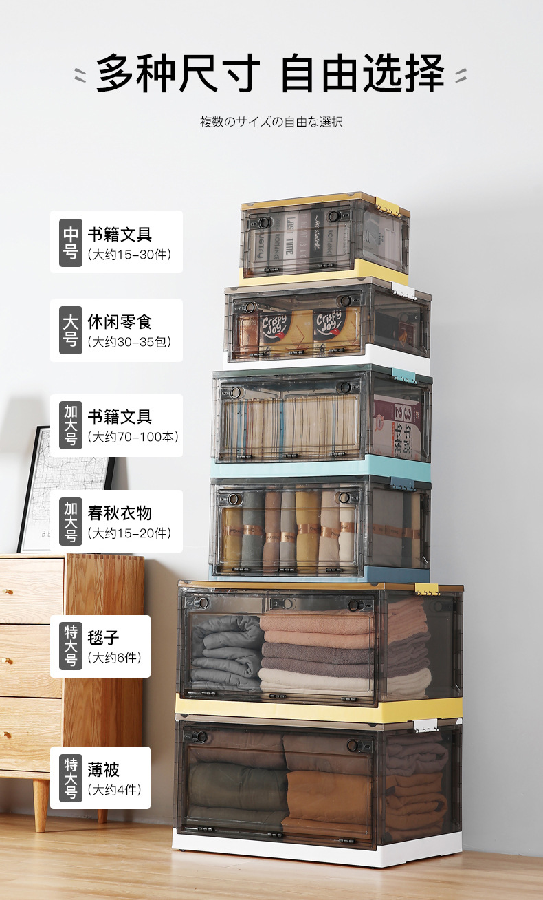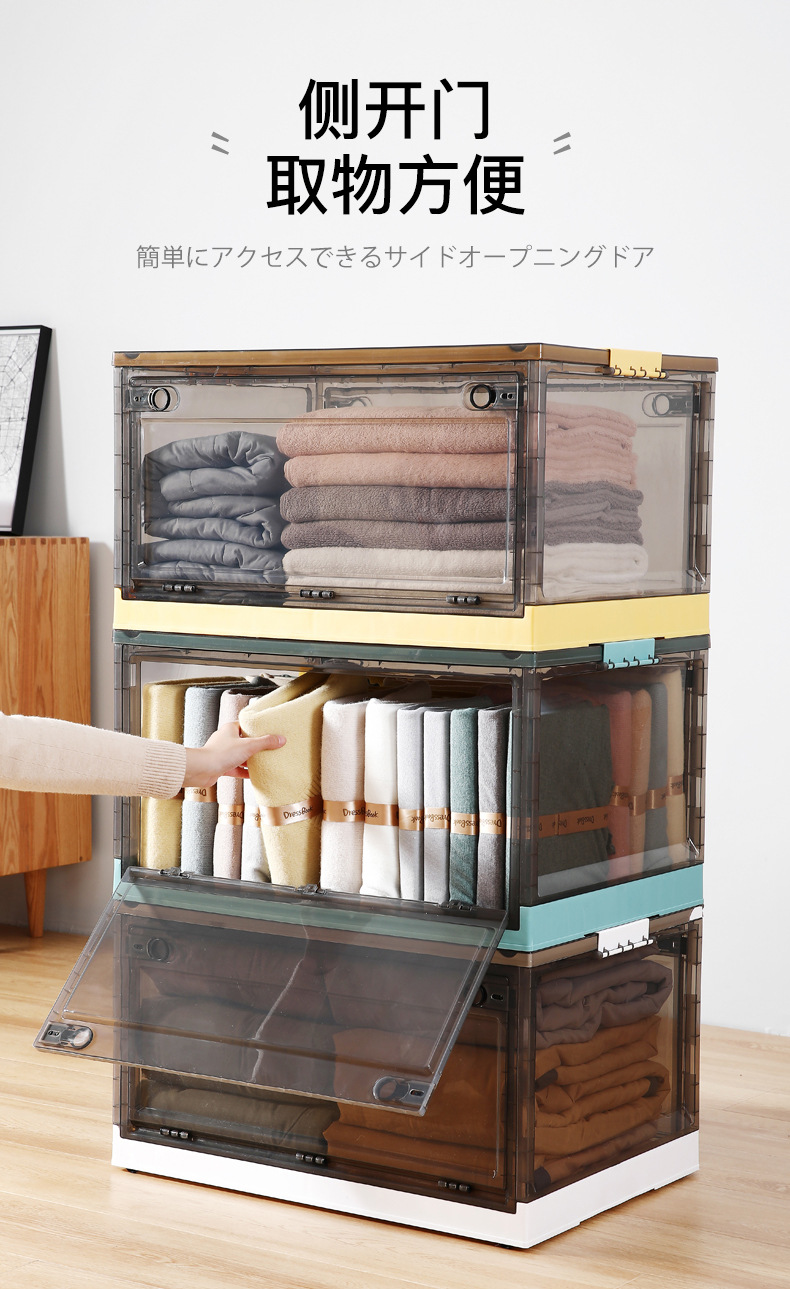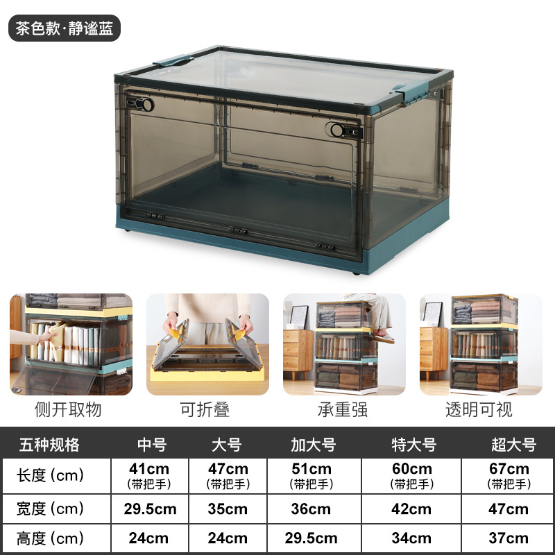 옷 보관 상자 가정용 투명 대형 접이식 플라스틱 장난감 책 보관 캐비닛 보관 상자 의류 정리 상자