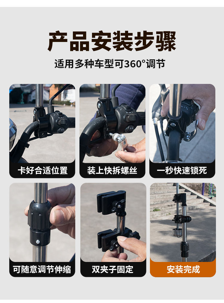 • 자전거 전기 자동차 우산 꽂이-2 클립 텔레스코픽 접이식 360 퀵 릴리스 스타일