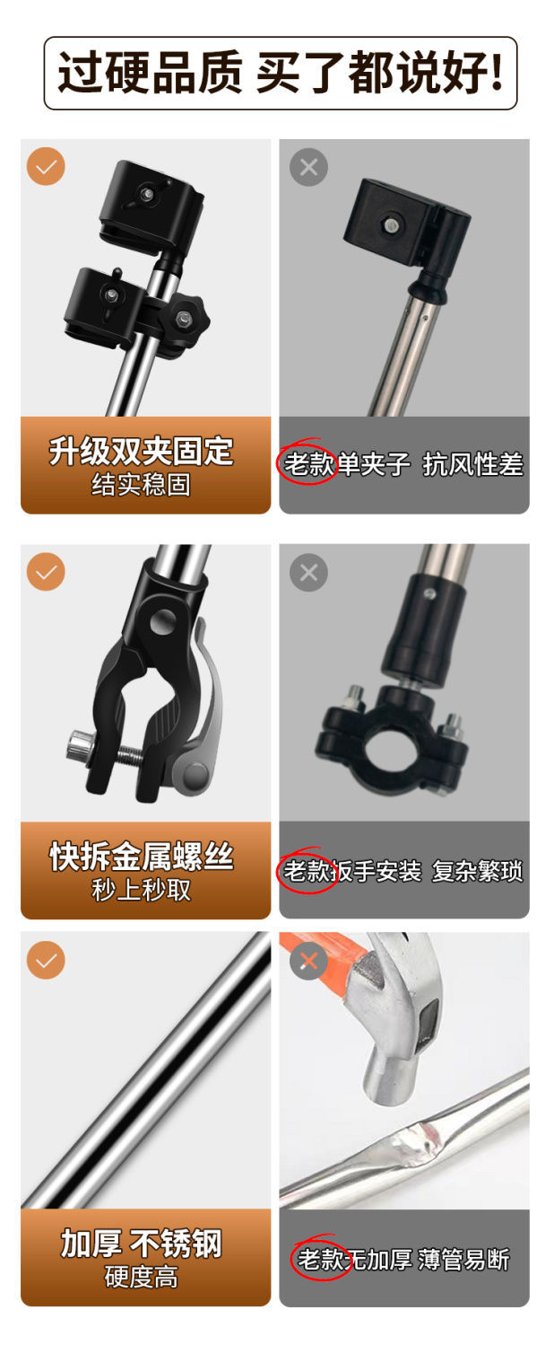 • 자전거 전기 자동차 우산 꽂이-2 클립 텔레스코픽 퀵 릴리스 스타일