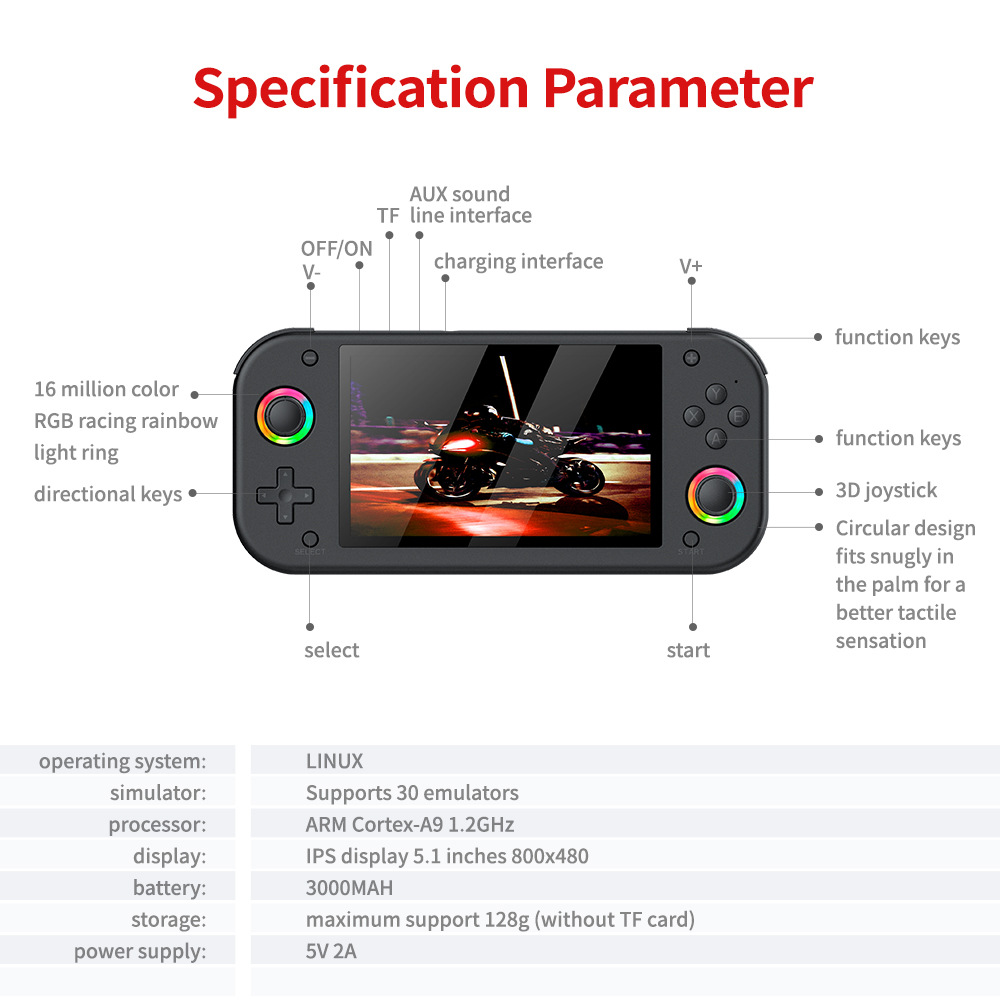 국경 간 M26 휴대용 게임 콘솔 5.1inch 대형 스크린 복고풍 향수 휴대용 아케이드 시뮬레이터 RGB 게임 휴대용 콘솔
