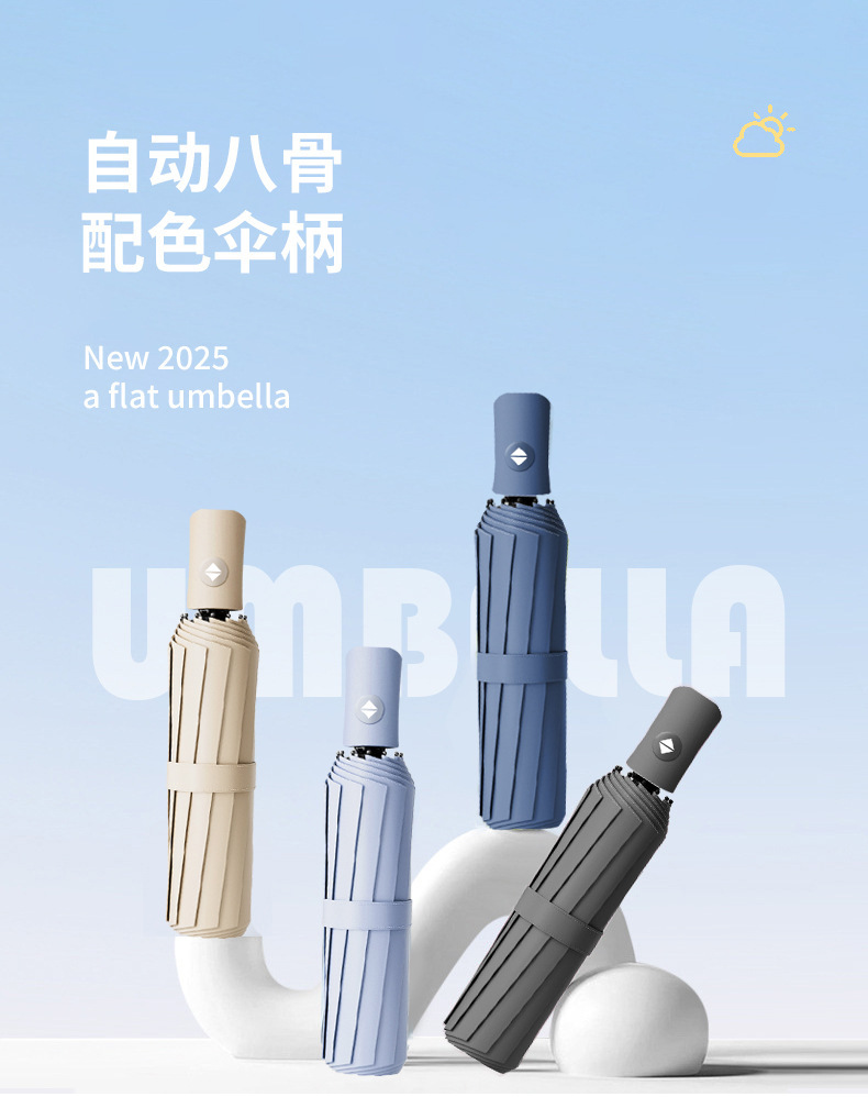 8본 이중골 전자동 접이식 우산, 원클릭 개폐, 70% off 우산, 비닐 파라솔, 비즈니스 선물 우산