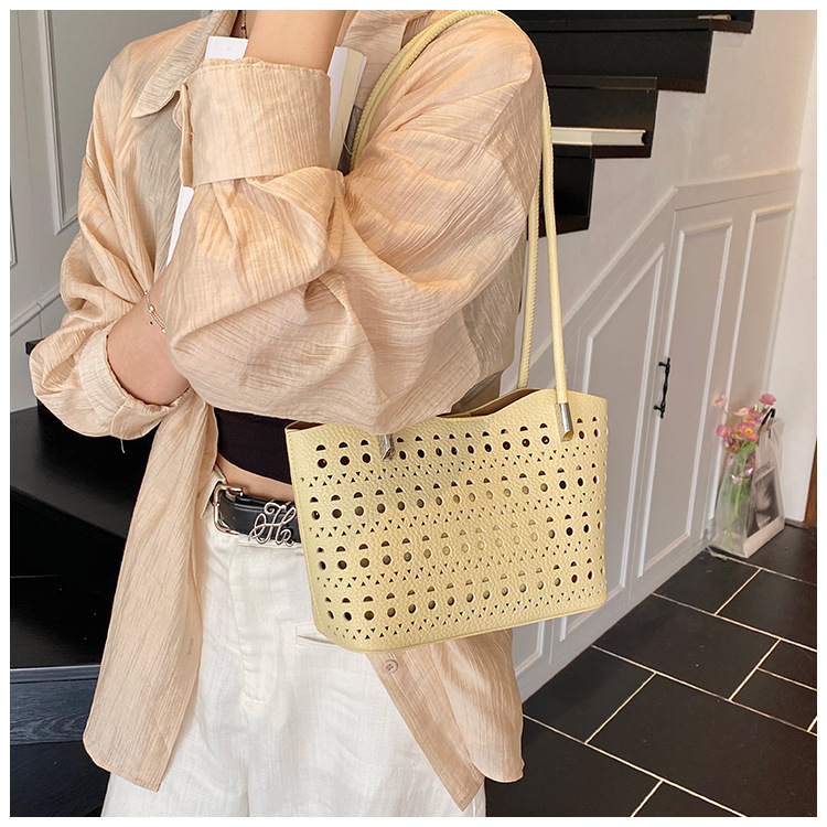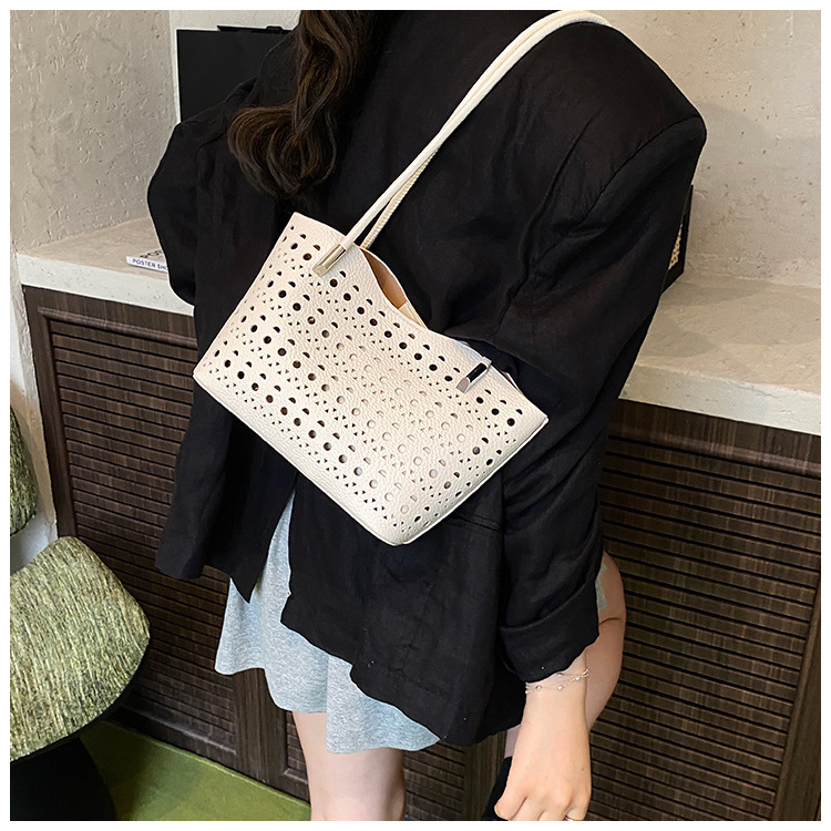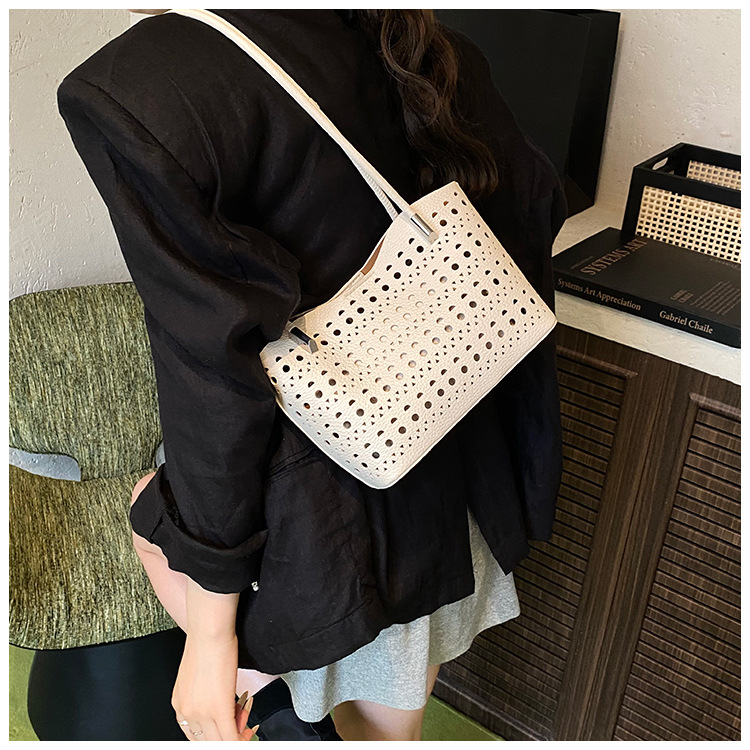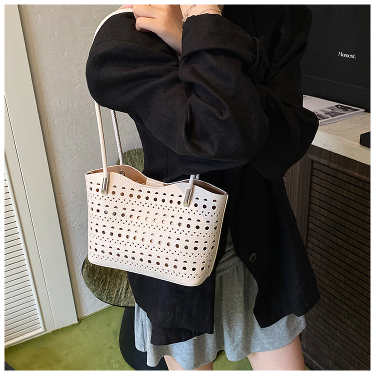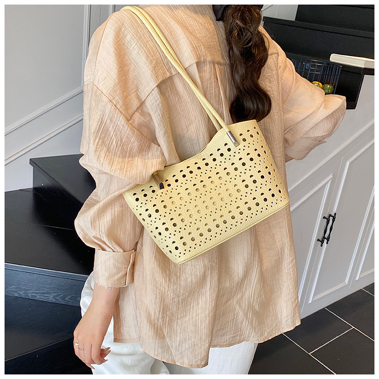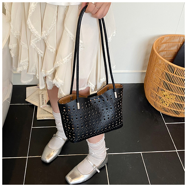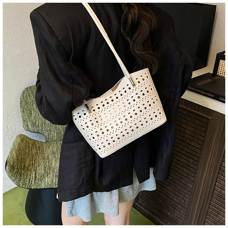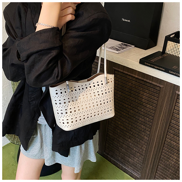 여성을위한 대용량 중공 가방 여름 2025 새로운 다목적 캐주얼 싱글 숄더 가방 작업 통근 토트 백