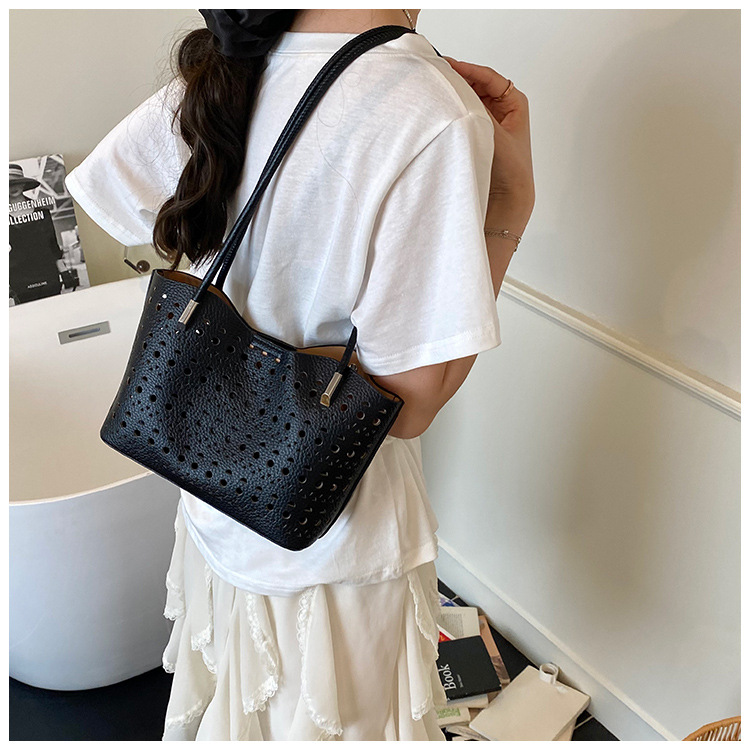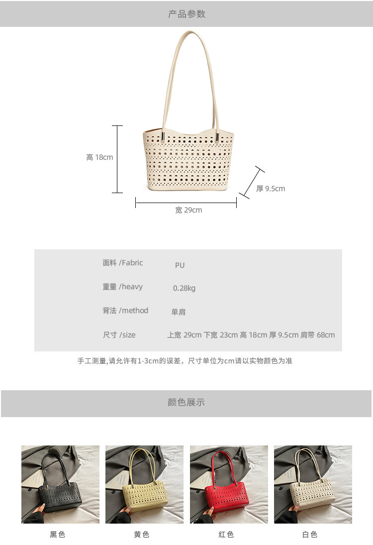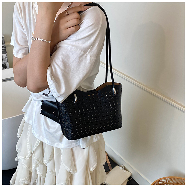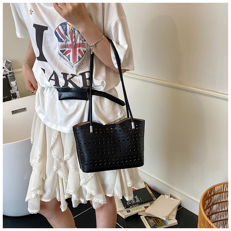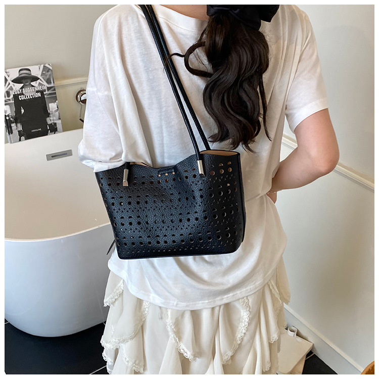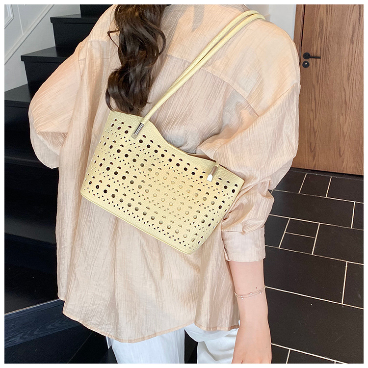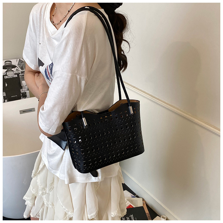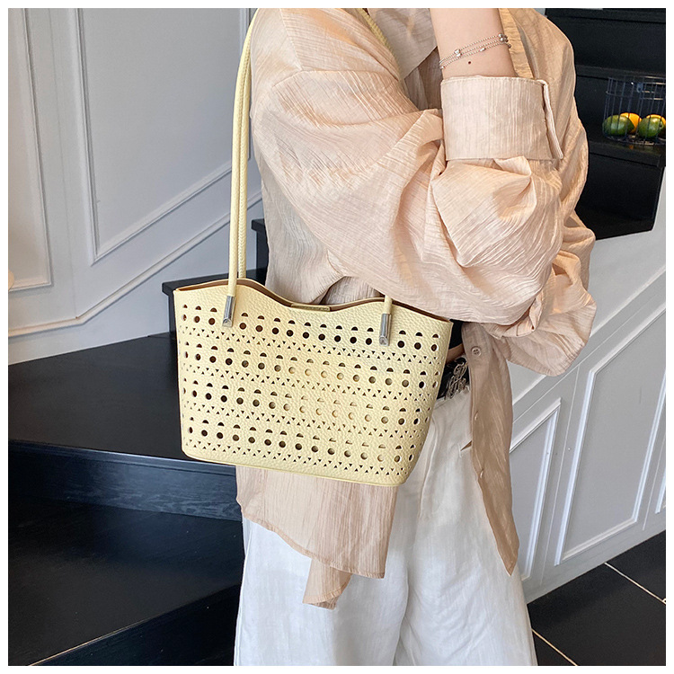 여성을위한 대용량 중공 가방 여름 2025 새로운 다목적 캐주얼 싱글 숄더 가방 작업 통근 토트 백