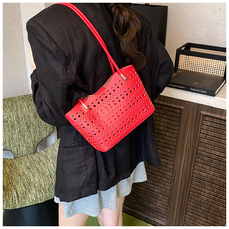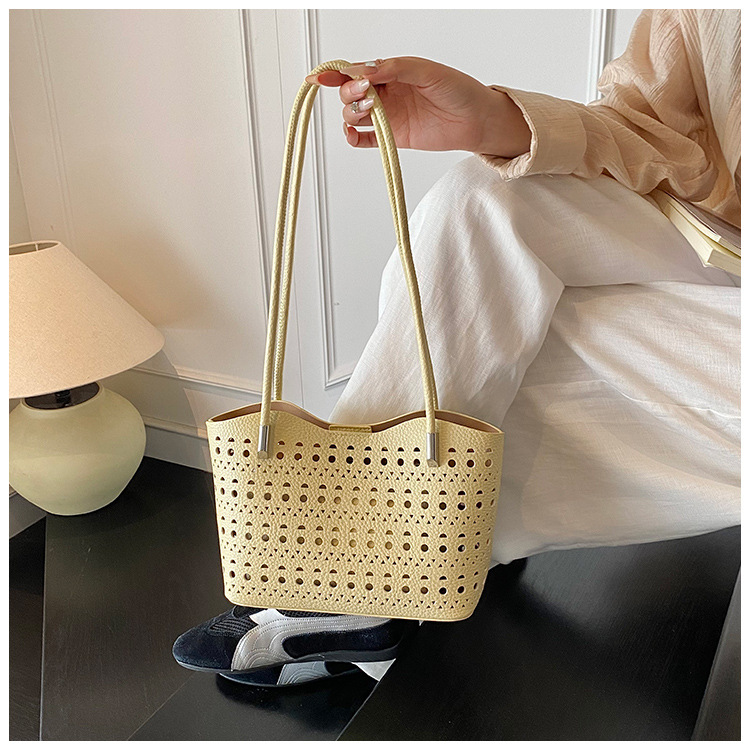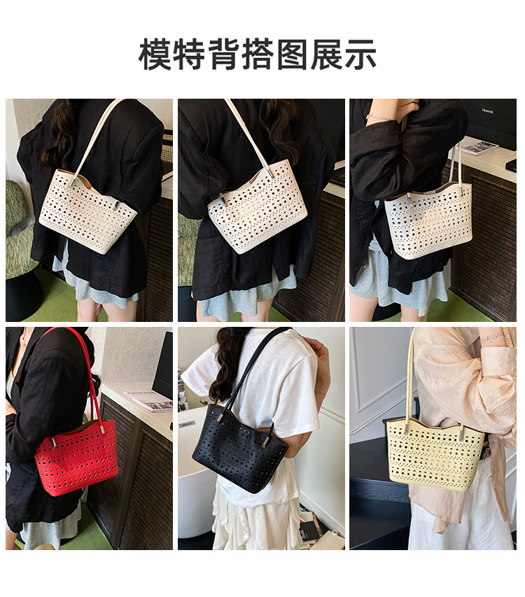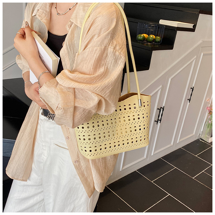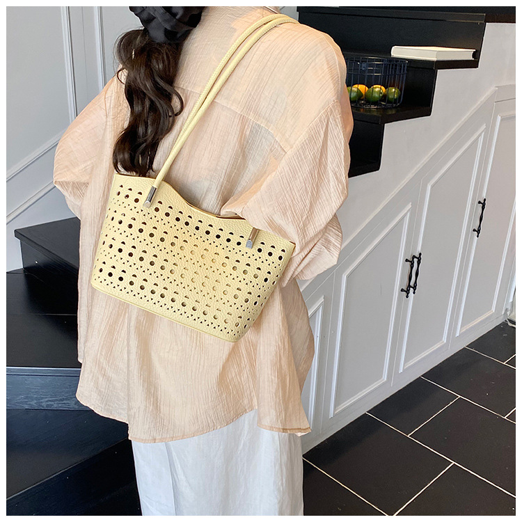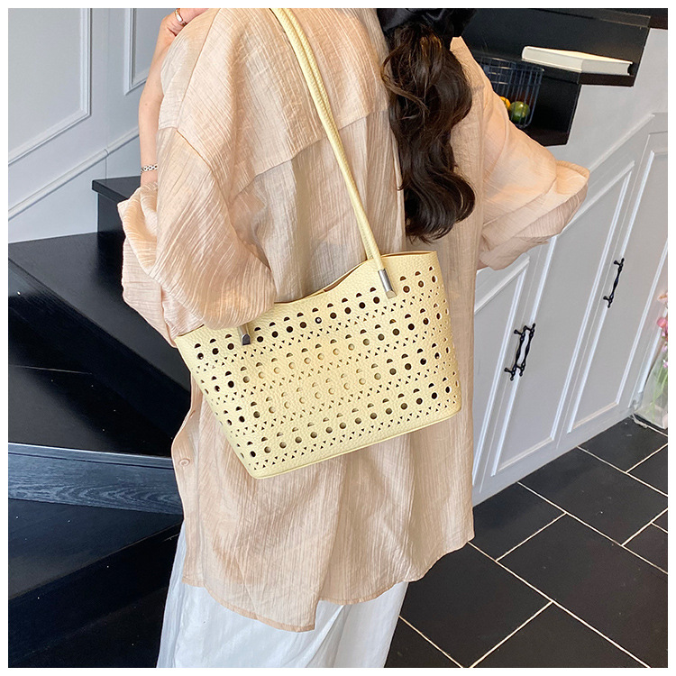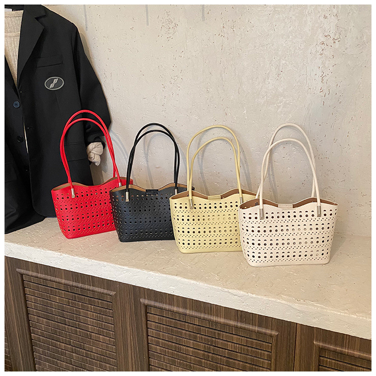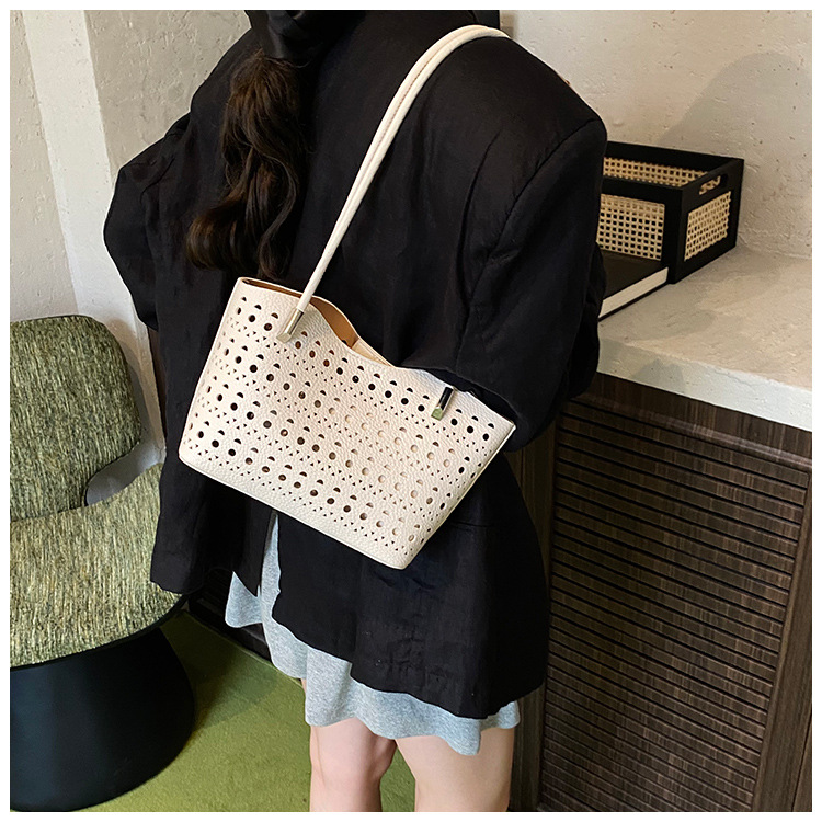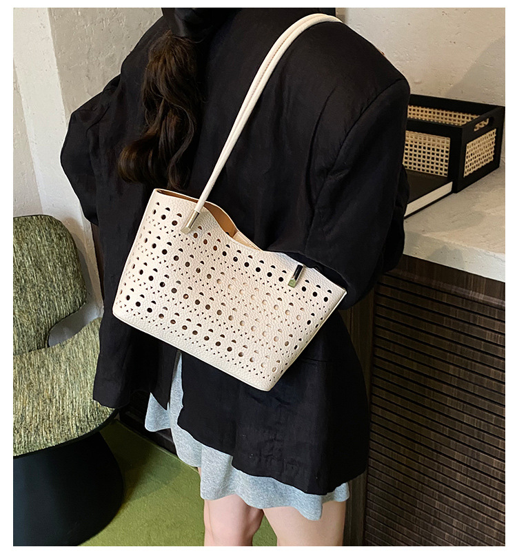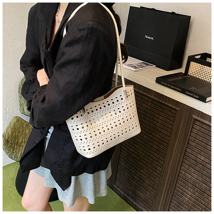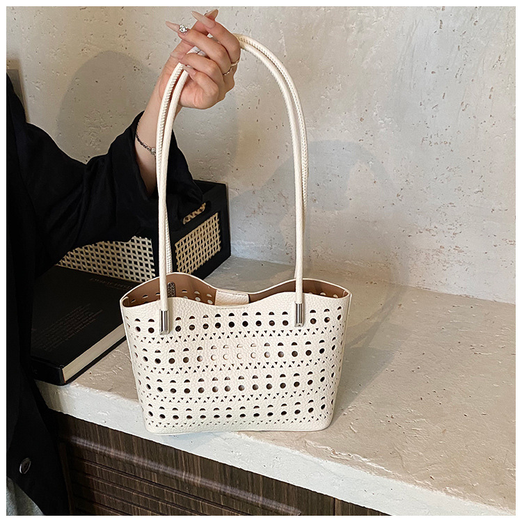 여성을위한 대용량 중공 가방 여름 2025 새로운 다목적 캐주얼 싱글 숄더 가방 작업 통근 토트 백스토어 가기