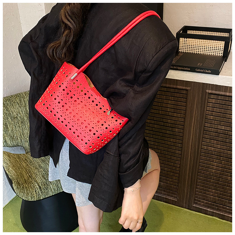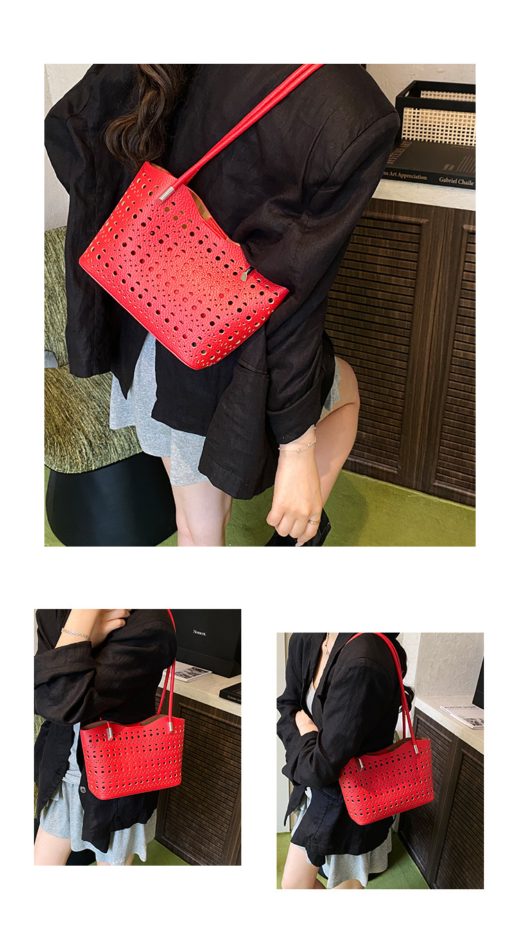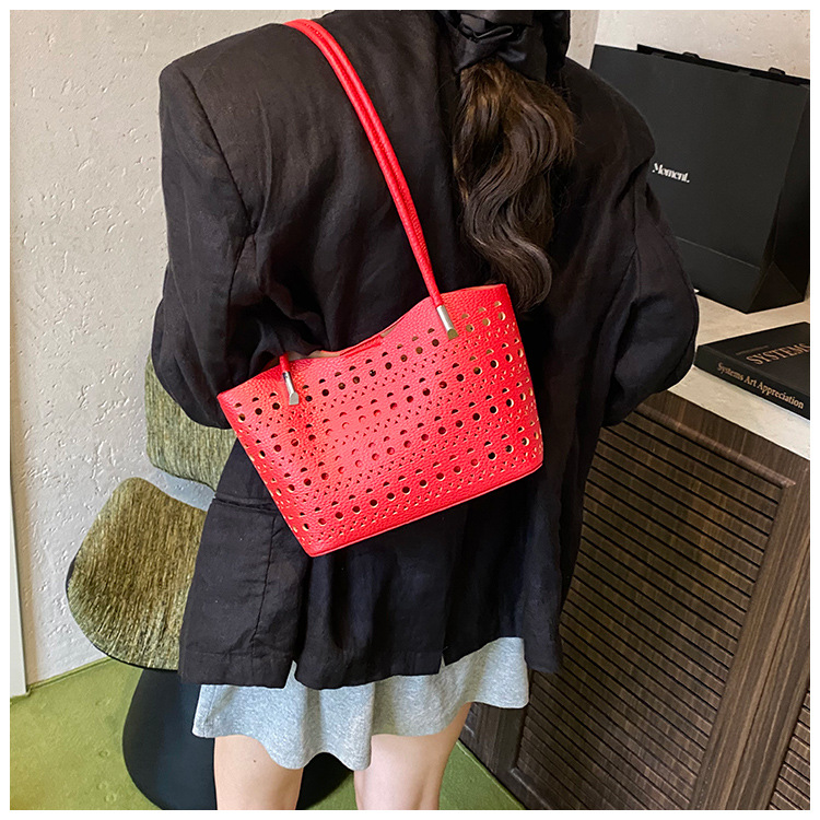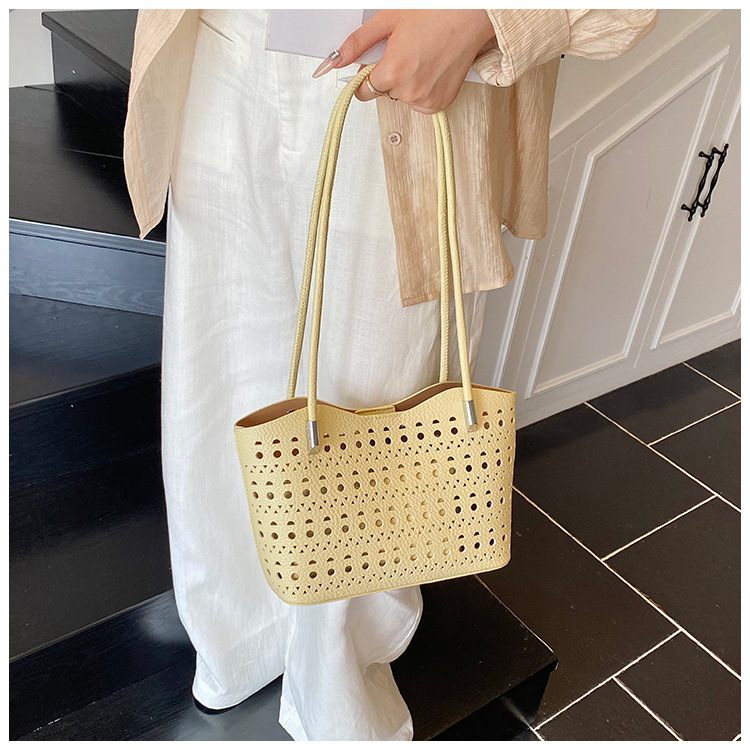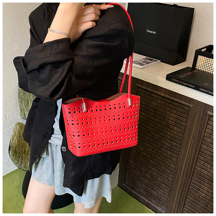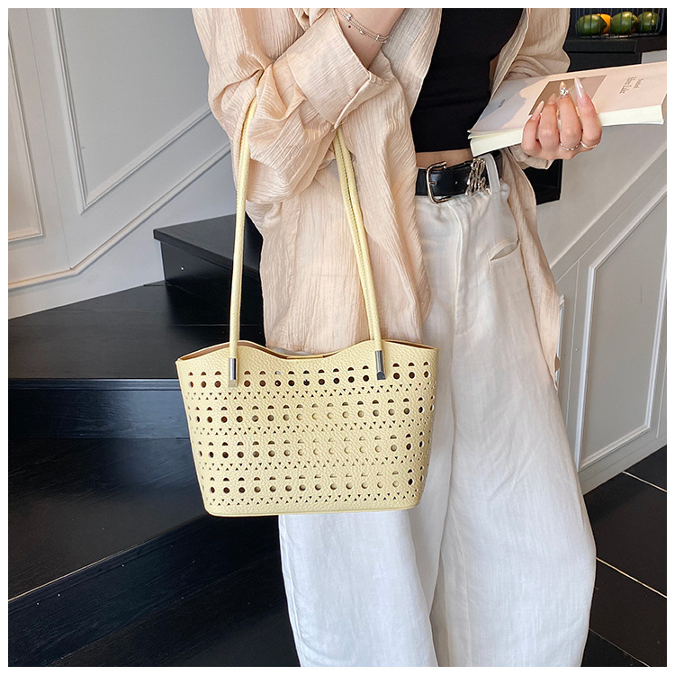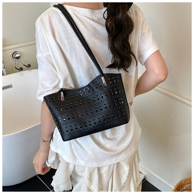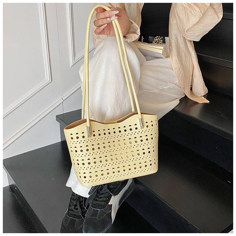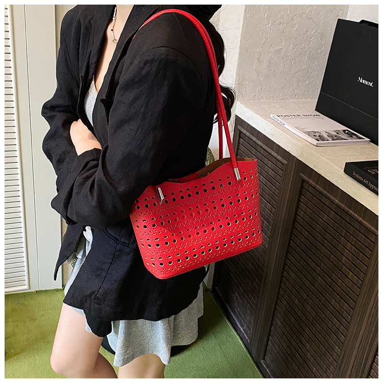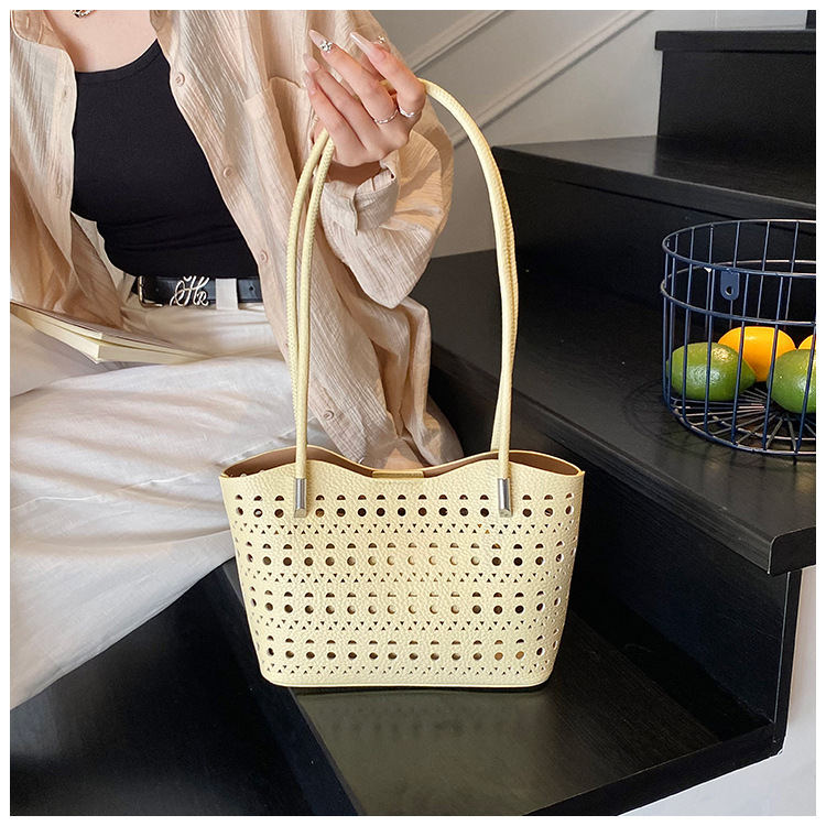 여성을위한 대용량 중공 가방 여름 2025 새로운 다목적 캐주얼 싱글 숄더 가방 작업 통근 토트 백스토어 가기