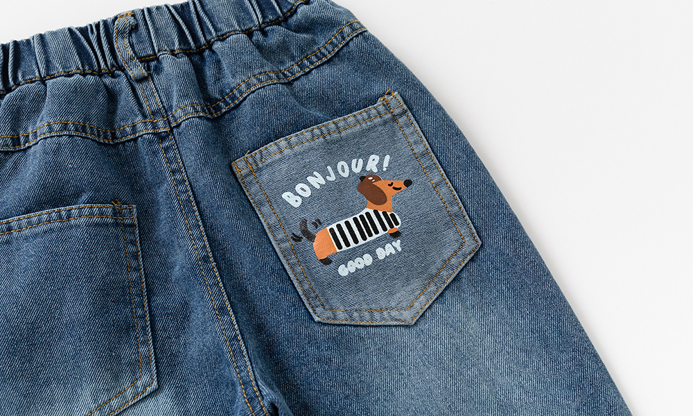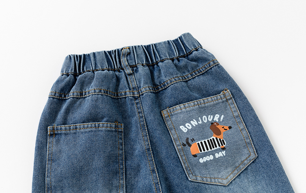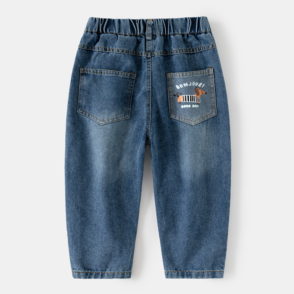 소년 청바지 2025 봄과 가을 새로운 어린이 바지 소년 아기 만화 단색 청바지 겉옷