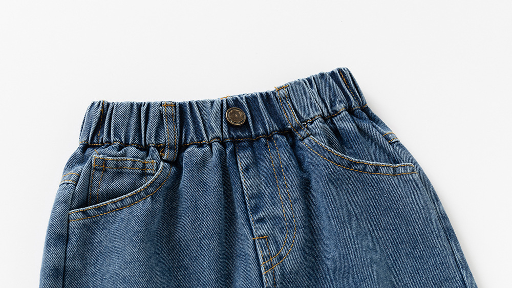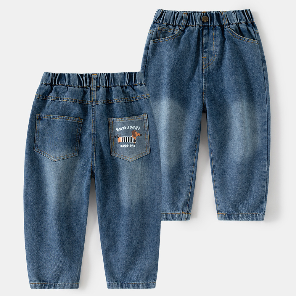 소년 청바지 2025 봄과 가을 새로운 어린이 바지 소년 아기 만화 단색 청바지 겉옷스토어 가기