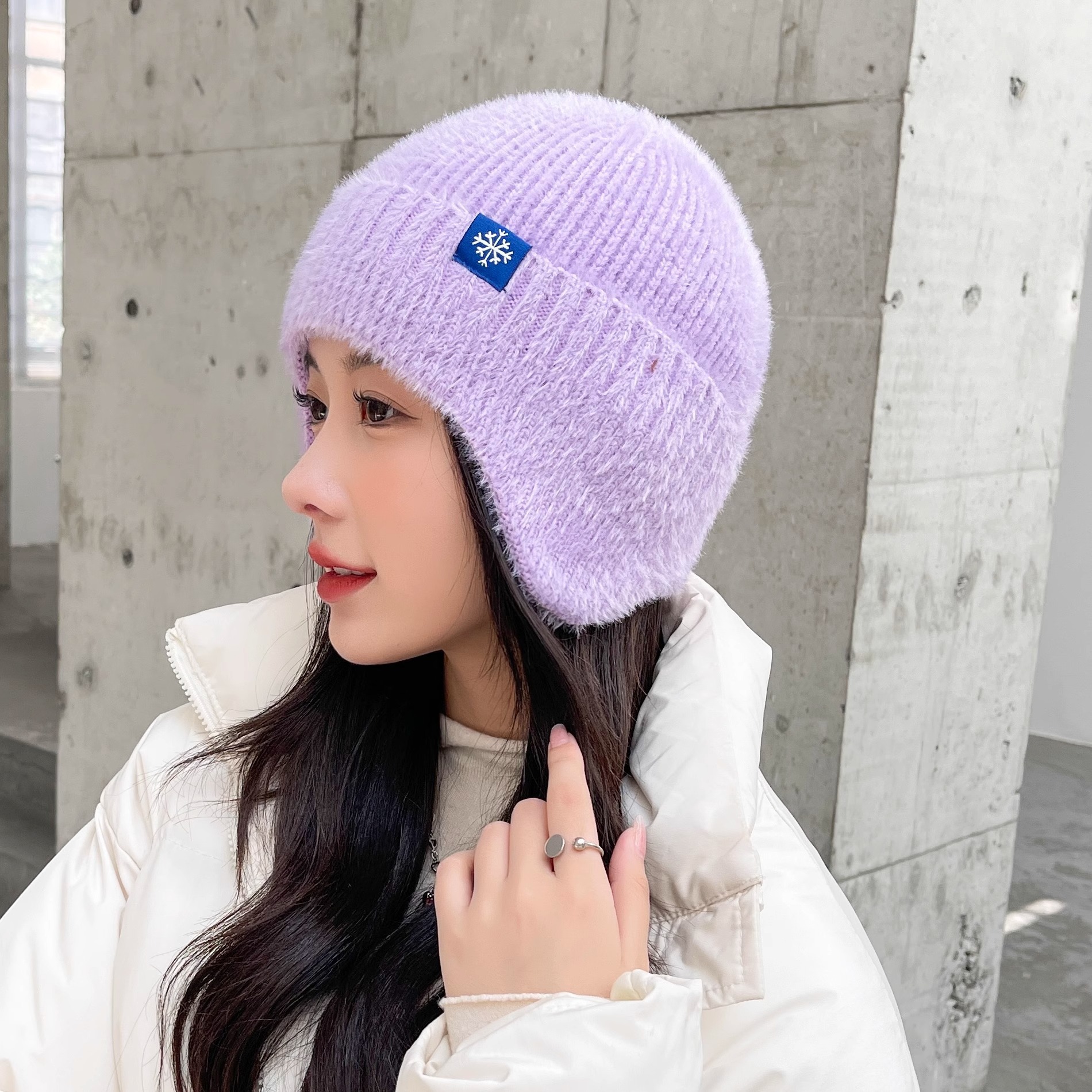 겨울 모자 플러스 벨벳 두꺼운 새로운 귀 보호 모직 모자 여성 야외 사이클링 방풍 따뜻한 모직 니트 모자